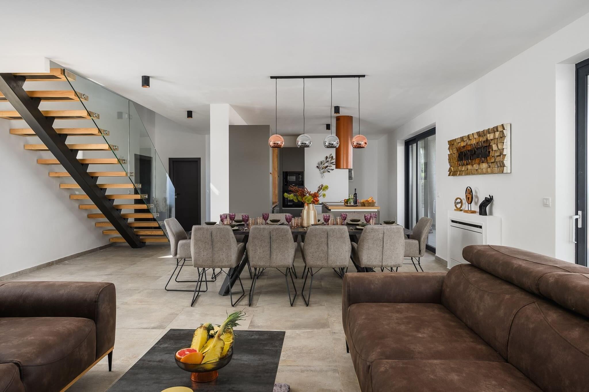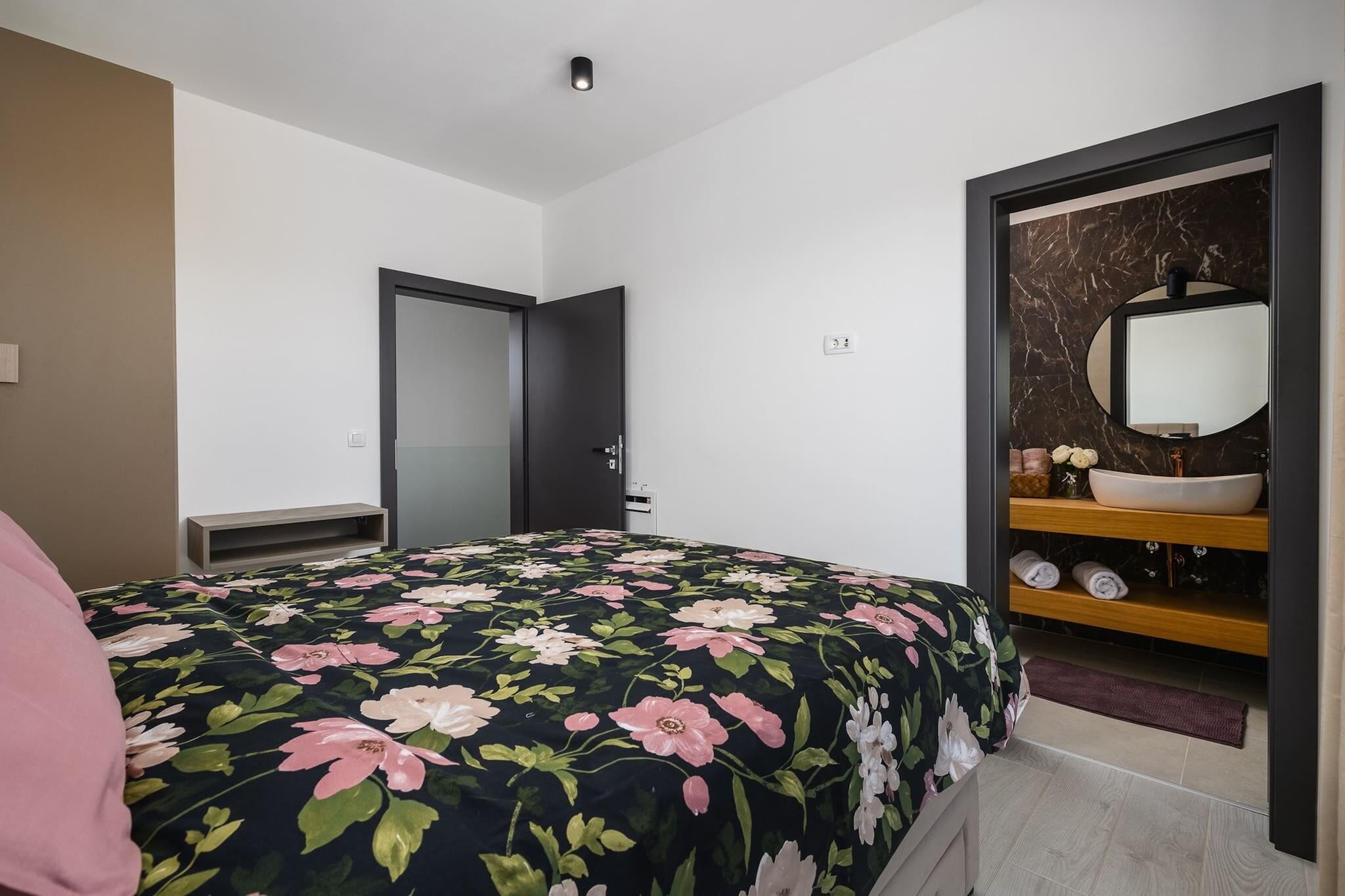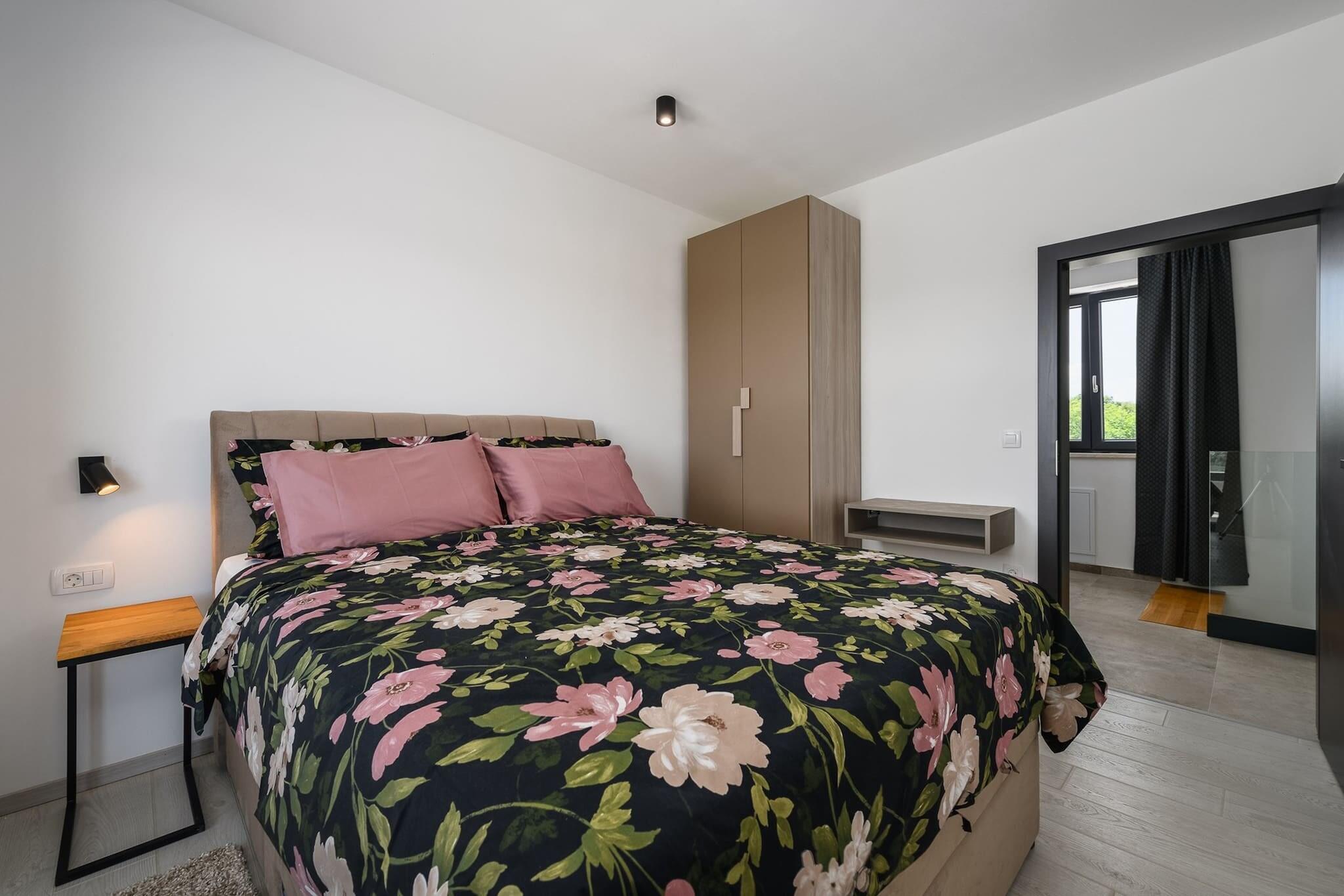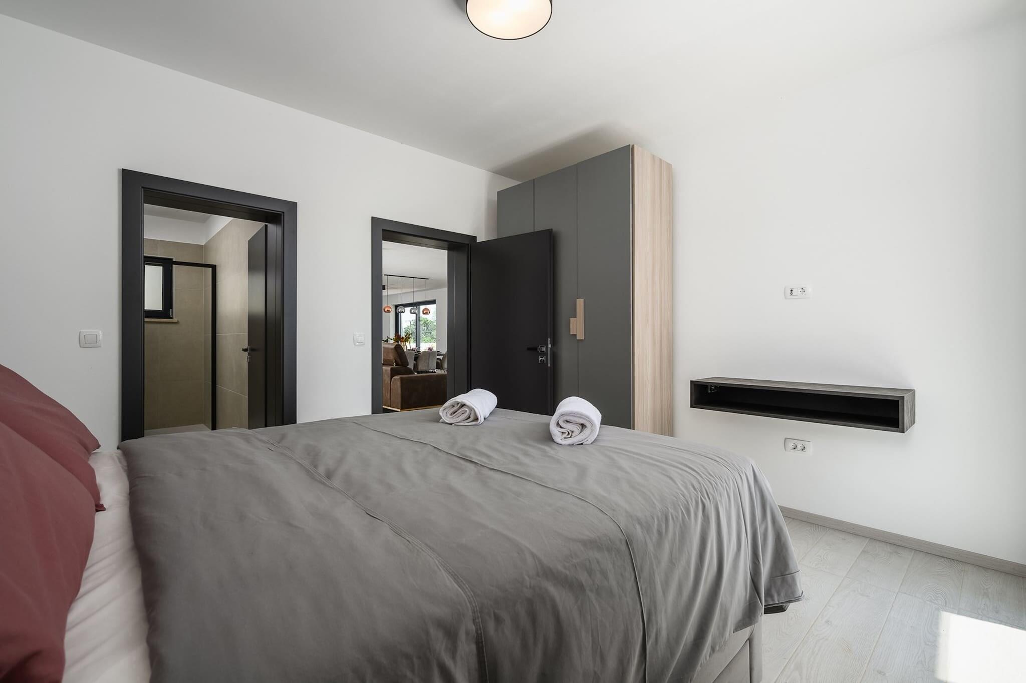 Denne moderne og luksuriøse villa er designet til familier og tilbyder 5 smukt møblerede soveværelser, hver med sit eget private badeværelse for ekstra komfort og privatliv. Den rummelige opholdsstue er problemfrit forbundet med køkkenet og spisestuen, hvilket skaber en perfekt ramme for familiesammenkomster. Hvert soveværelse er udstyret med aircondition og et internetaktiveret tv. Villaen har også en stor balkon, der strækker sig over hele øverste etage, tilgængelig fra hvert soveværelse. Til udendørs afslapning kan gæsterne nyde en 38 kvadratmeter opvarmet swimmingpool, en solterrasse med liggestole og en overdækket terrasse med havemøbler og et spisebord, ideel til alfresco-måltider. Beliggende kun en kort køretur fra Raša og Labin, er villaen perfekt beliggende for at udforske regionen. Labin, en middelalderby rig på historie, kultur og kunstgallerier, er kendt for sin minearv. Det nærliggende Underground City-projekt tilbyder et fascinerende kig på gamle miner omdannet til gallerier og museer. Rabac, kun 3 km væk, byder på smukke strande og en naturskøn vandresti, der forbinder den med Labin, som løber gennem en skov og forbi et vandfald, hvilket gør det til et fremragende valg for naturelskere. Villaen er udstyret med alle de nødvendige faciliteter for et behageligt ophold, herunder gratis Wi-Fi, aircondition og privat parkering. Der opkræves et skadesdepositum på 500 EUR ved ankomsten, som refunderes ved udtjekning, forudsat at der ikke opstår skader. Ejendommen er familieorienteret og ikke velegnet til ungdomsgrupper eller fester. Derudover kan der anmodes om en opvarmet pool mod et ekstra gebyr på 20 EUR per nat.