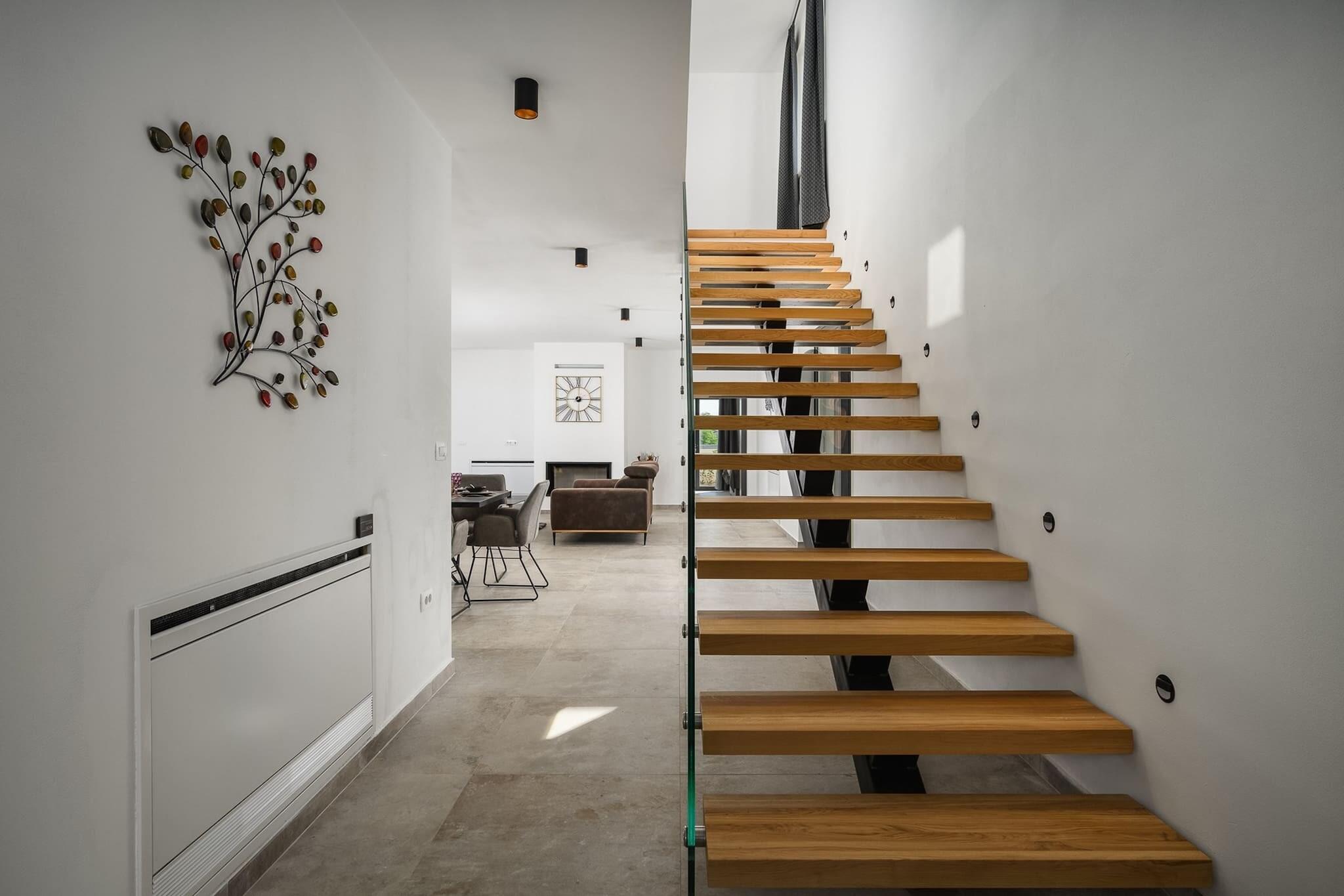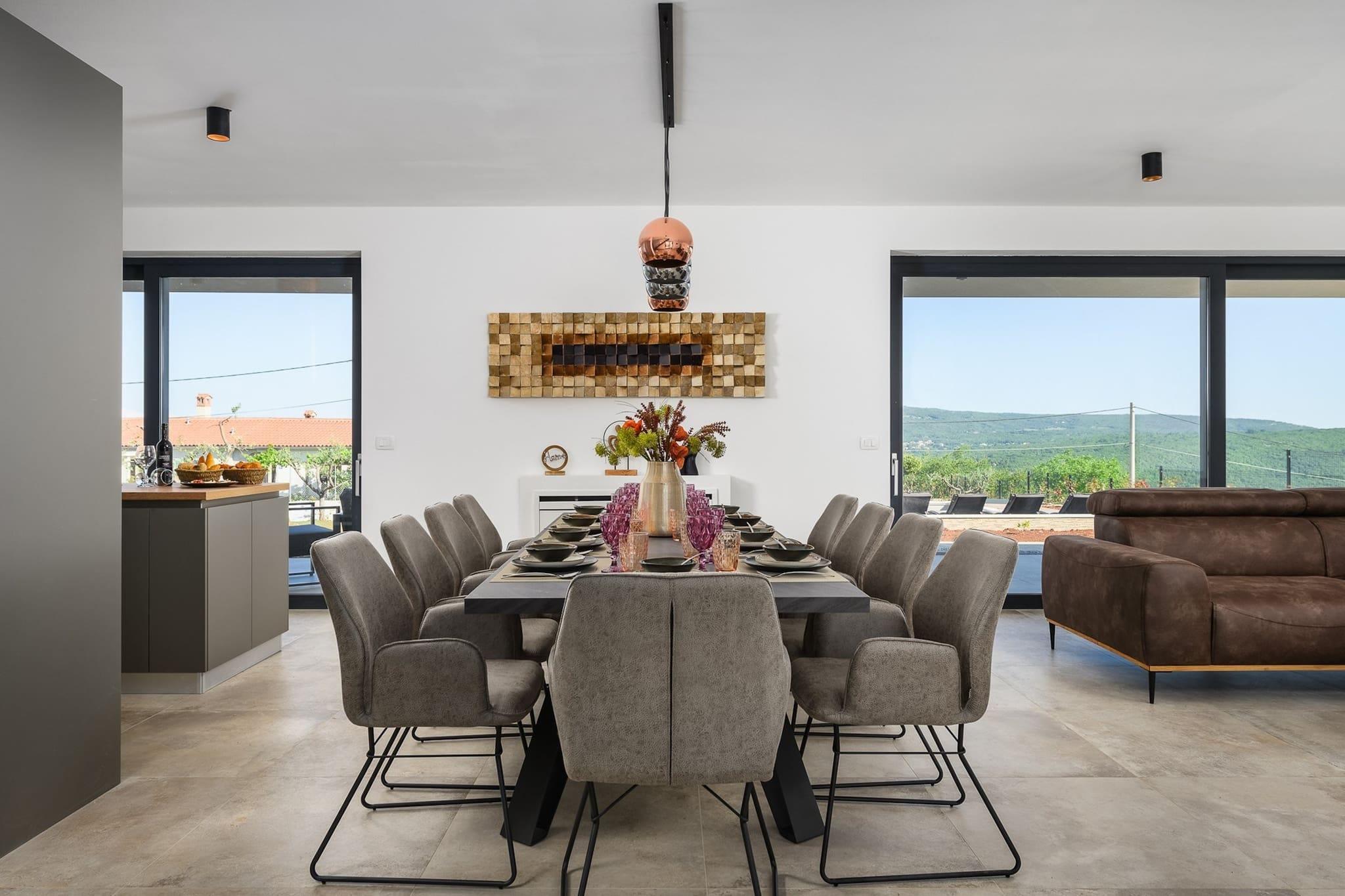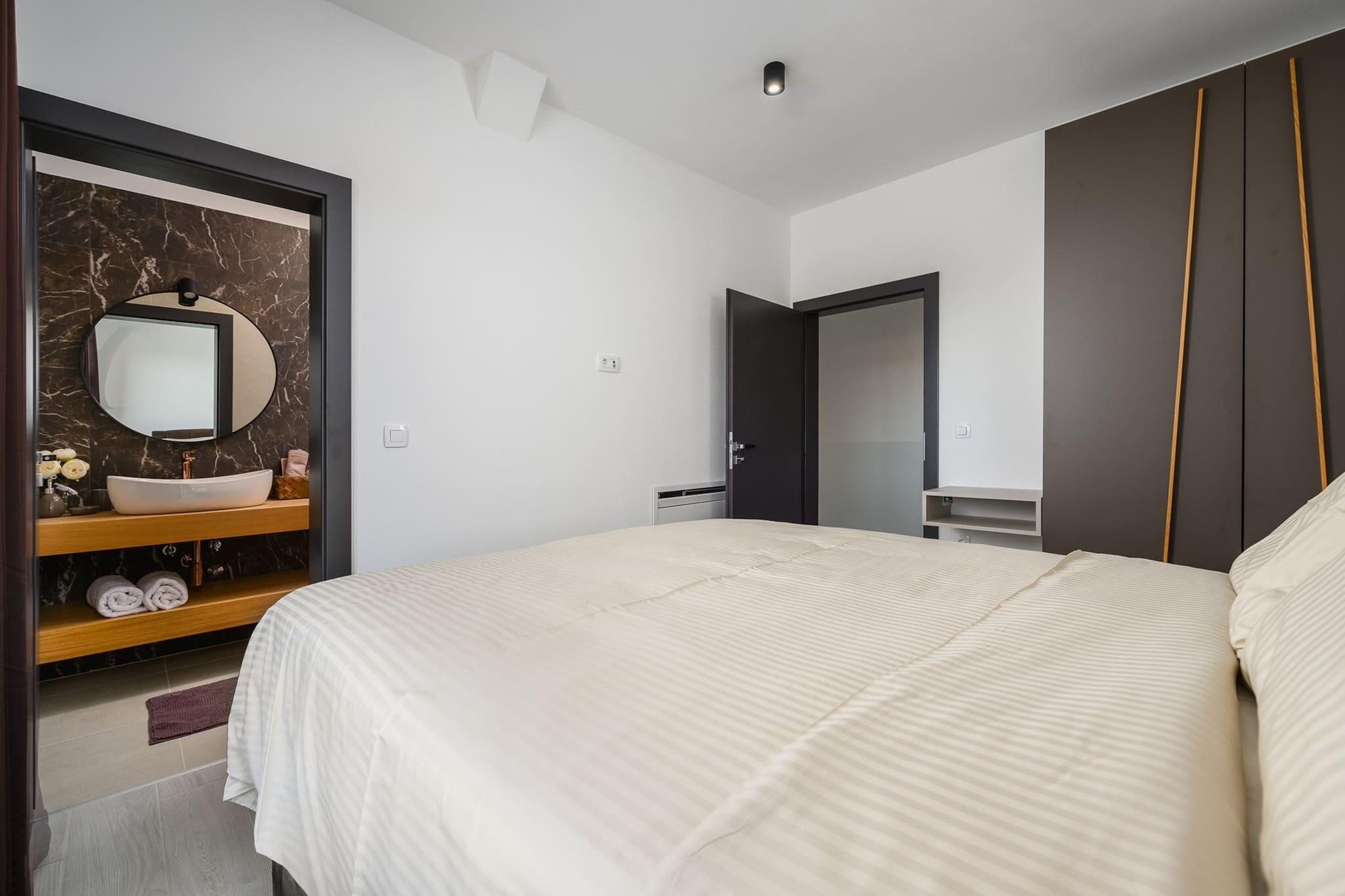 Denne moderne og luksuriøse villa er designet til familier og tilbyder 5 smukt møblerede soveværelser, hver med sit eget private badeværelse for ekstra komfort og privatliv. Den rummelige opholdsstue er problemfrit forbundet med køkkenet og spisestuen, hvilket skaber en perfekt ramme for familiesammenkomster. Hvert soveværelse er udstyret med aircondition og et internetaktiveret tv. Villaen har også en stor balkon, der strækker sig over hele øverste etage, tilgængelig fra hvert soveværelse. Til udendørs afslapning kan gæsterne nyde en 38 kvadratmeter opvarmet swimmingpool, en solterrasse med liggestole og en overdækket terrasse med havemøbler og et spisebord, ideel til alfresco-måltider. Beliggende kun en kort køretur fra Raša og Labin, er villaen perfekt beliggende for at udforske regionen. Labin, en middelalderby rig på historie, kultur og kunstgallerier, er kendt for sin minearv. Det nærliggende Underground City-projekt tilbyder et fascinerende kig på gamle miner omdannet til gallerier og museer. Rabac, kun 3 km væk, byder på smukke strande og en naturskøn vandresti, der forbinder den med Labin, som løber gennem en skov og forbi et vandfald, hvilket gør det til et fremragende valg for naturelskere. Villaen er udstyret med alle de nødvendige faciliteter for et behageligt ophold, herunder gratis Wi-Fi, aircondition og privat parkering. Der opkræves et skadesdepositum på 500 EUR ved ankomsten, som refunderes ved udtjekning, forudsat at der ikke opstår skader. Ejendommen er familieorienteret og ikke velegnet til ungdomsgrupper eller fester. Derudover kan der anmodes om en opvarmet pool mod et ekstra gebyr på 20 EUR per nat.