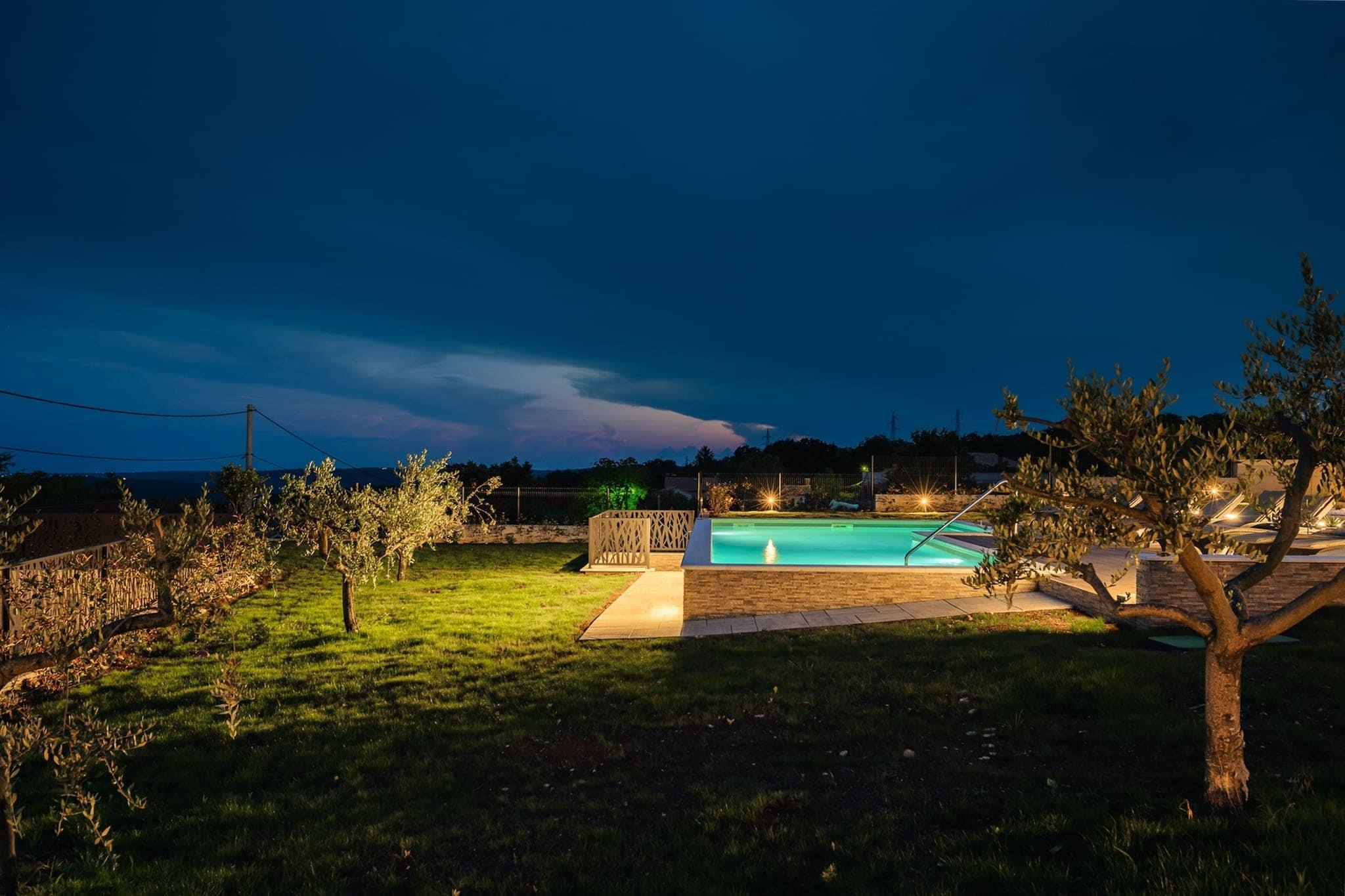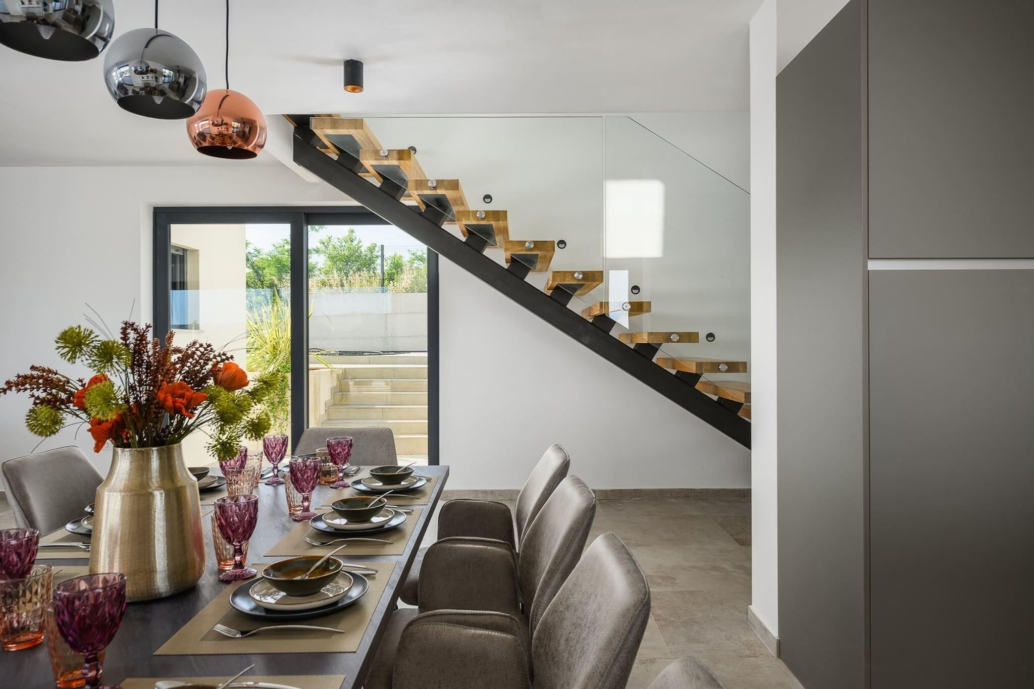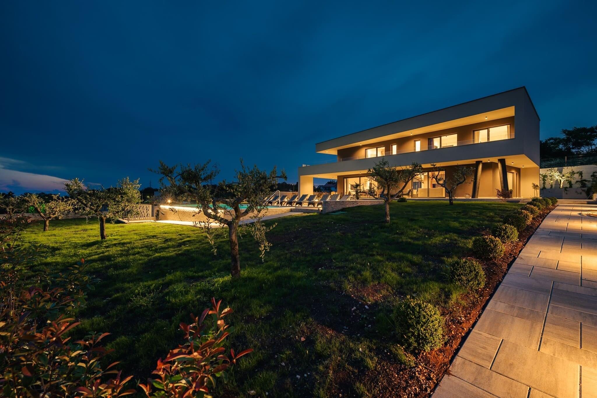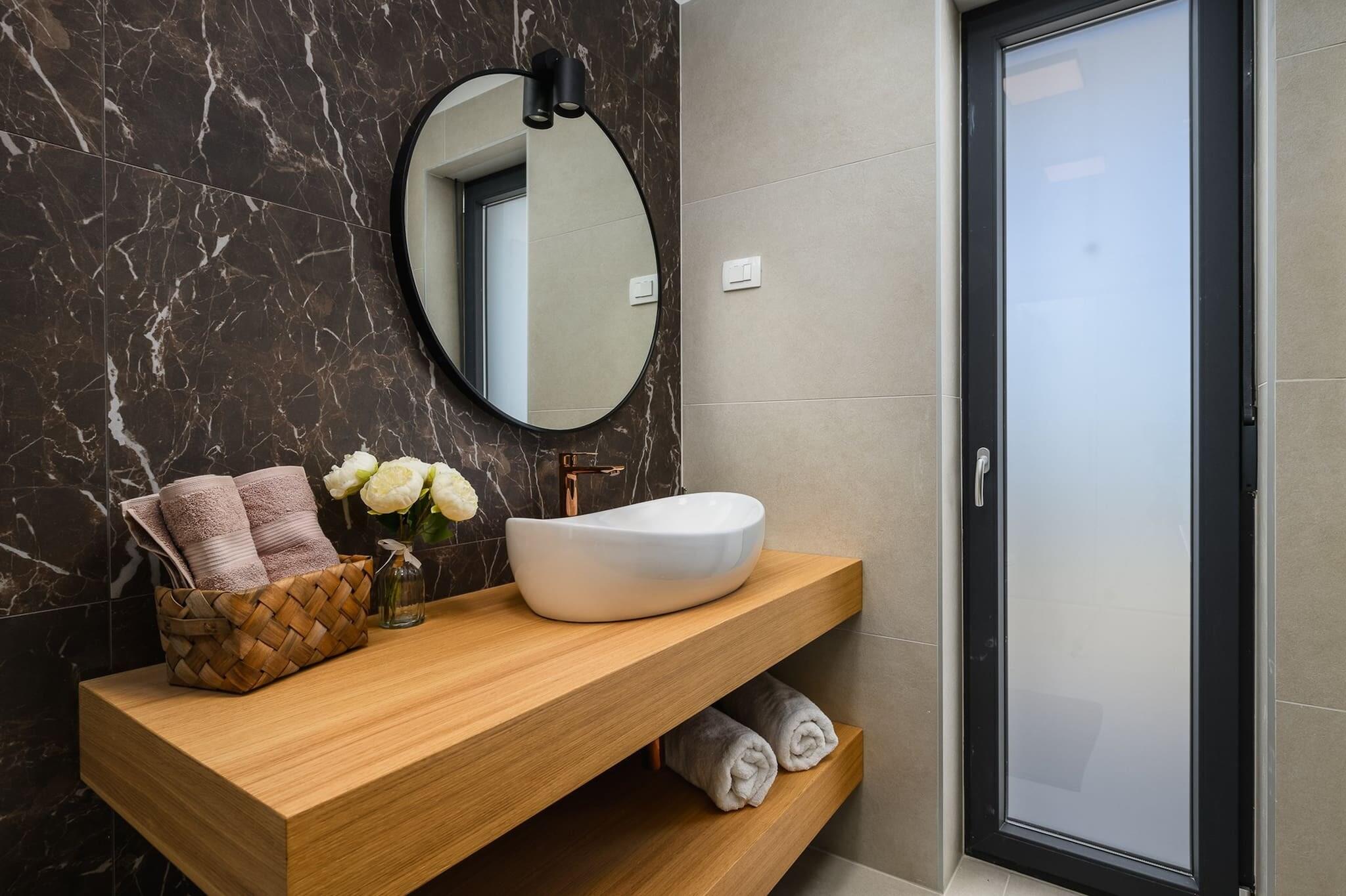 Denne moderne og luksuriøse villa er designet til familier og tilbyder 5 smukt møblerede soveværelser, hver med sit eget private badeværelse for ekstra komfort og privatliv. Den rummelige opholdsstue er problemfrit forbundet med køkkenet og spisestuen, hvilket skaber en perfekt ramme for familiesammenkomster. Hvert soveværelse er udstyret med aircondition og et internetaktiveret tv. Villaen har også en stor balkon, der strækker sig over hele øverste etage, tilgængelig fra hvert soveværelse. Til udendørs afslapning kan gæsterne nyde en 38 kvadratmeter opvarmet swimmingpool, en solterrasse med liggestole og en overdækket terrasse med havemøbler og et spisebord, ideel til alfresco-måltider. Beliggende kun en kort køretur fra Raša og Labin, er villaen perfekt beliggende for at udforske regionen. Labin, en middelalderby rig på historie, kultur og kunstgallerier, er kendt for sin minearv. Det nærliggende Underground City-projekt tilbyder et fascinerende kig på gamle miner omdannet til gallerier og museer. Rabac, kun 3 km væk, byder på smukke strande og en naturskøn vandresti, der forbinder den med Labin, som løber gennem en skov og forbi et vandfald, hvilket gør det til et fremragende valg for naturelskere. Villaen er udstyret med alle de nødvendige faciliteter for et behageligt ophold, herunder gratis Wi-Fi, aircondition og privat parkering. Der opkræves et skadesdepositum på 500 EUR ved ankomsten, som refunderes ved udtjekning, forudsat at der ikke opstår skader. Ejendommen er familieorienteret og ikke velegnet til ungdomsgrupper eller fester. Derudover kan der anmodes om en opvarmet pool mod et ekstra gebyr på 20 EUR per nat.