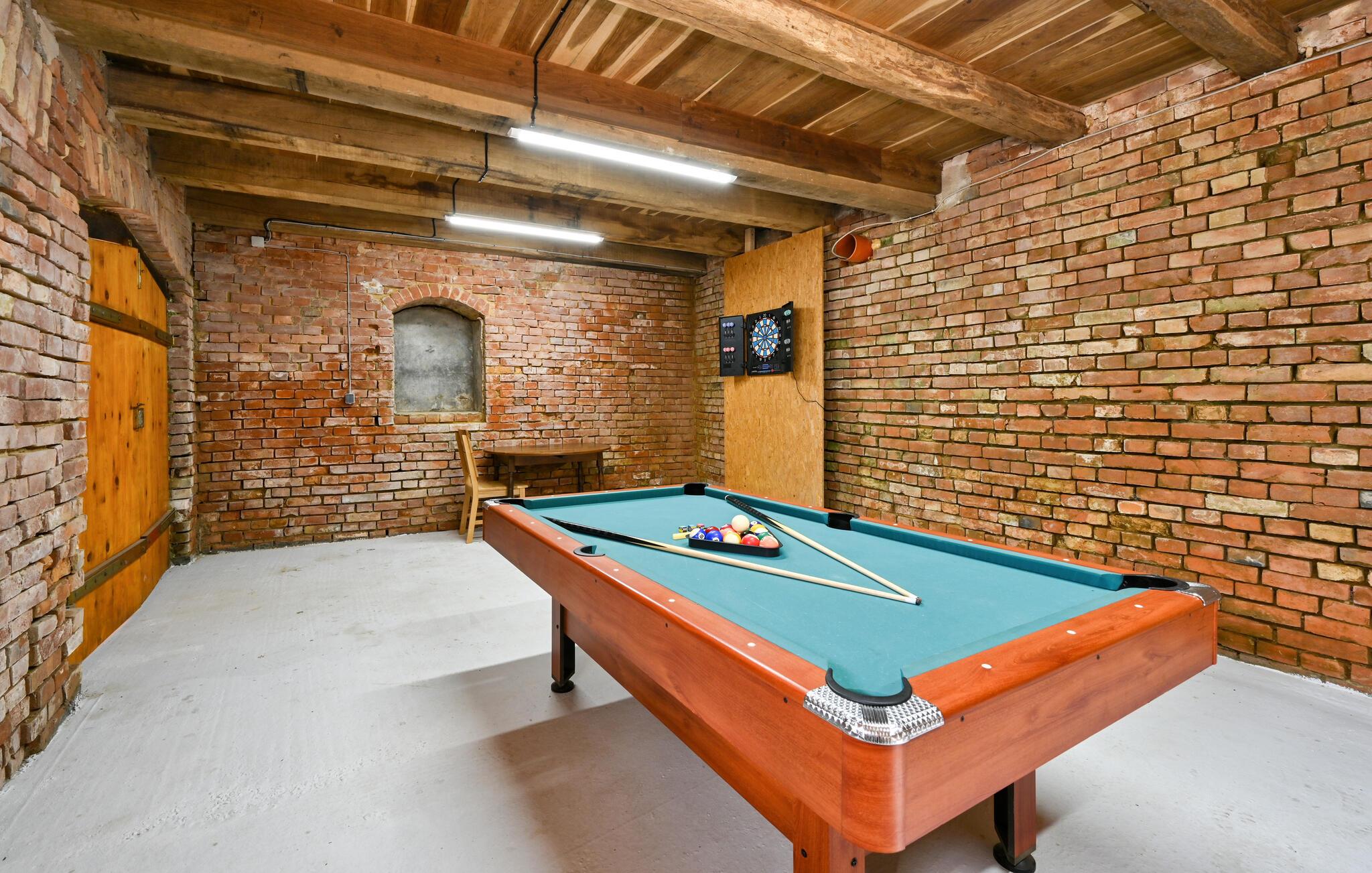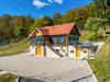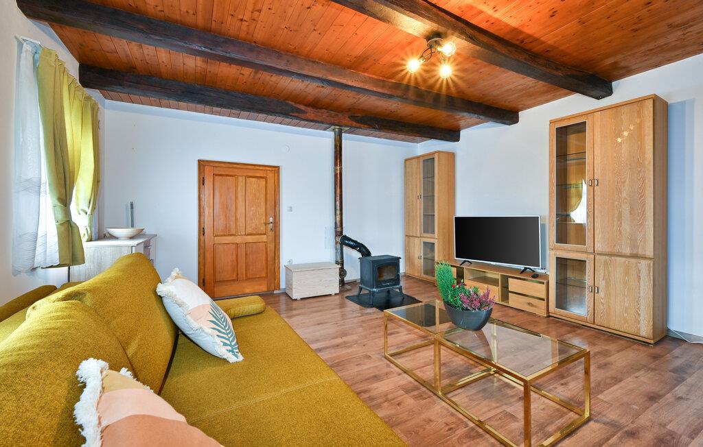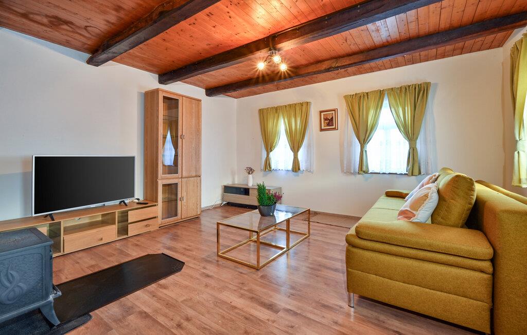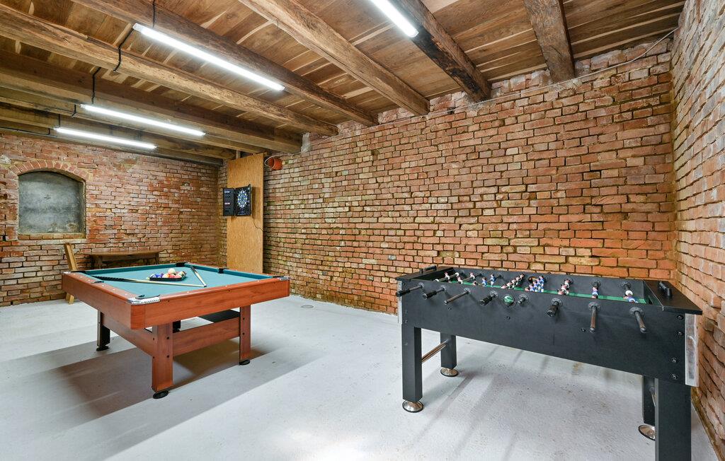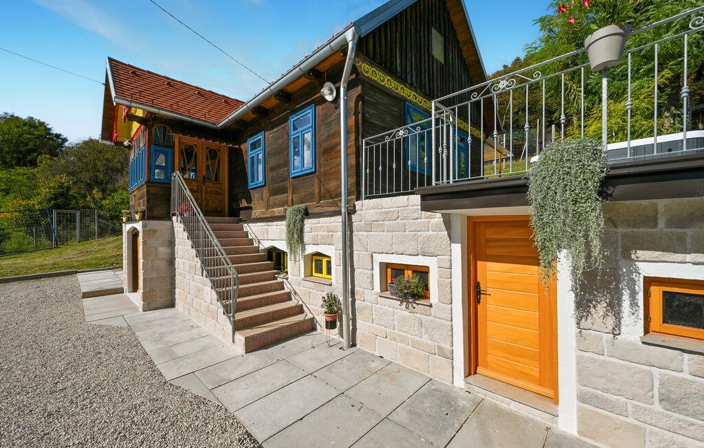 Dette traditionelle feriehus i Blaskovec byder på en varm og indbydende atmosfære med en stor vinduesfront, der fylder rummene med lys og giver en åben og rummelig fornemmelse. Indretningen kombinerer rustik charme med moderne komfort – perfekt til hyggelige stunder ved pejsen eller sjove aftener i aktivitetsrummet med billard og dart. På den store terrasse venter et spabad, ideelt til afslapning med udsigt til den smukke natur. Den nærliggende skov giver ro og er oplagt til skønne gåture.