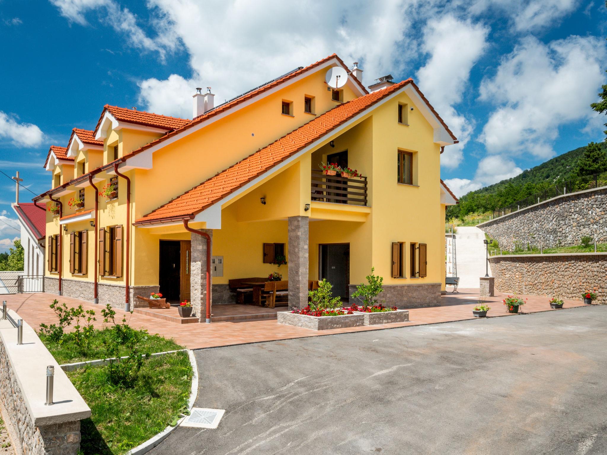 Single-family house "Oltari", 940 m a.s.l., 3 storeys. In the hamlet Oltari 14 km from the centre of Sveti Juraj, in a quiet, sunny, elevated position, 14 km from the sea, in the countryside. Private: property 630 m2, swimming pool angular (8 x 4 m, 33 m2, depth 120 - 150 cm, seasonal availability: 15.Jun. - 15.Sep.) with internal staircase. Outdoor shower, basketball, terrace (30 m2), garden furniture, barbecue. In the house: internet access, table football, washing machine, tumble dryer. Parking at the house on the premises. Shop 9 km, restaurant 9 km, bus stop 15.1 km, pebble beach 14 km, concrete beach 14 km. Nearby attractions: national parki Sjeverni Velebit 17 km. The house consists of 4 apartments rented as one unit. Available: darts.