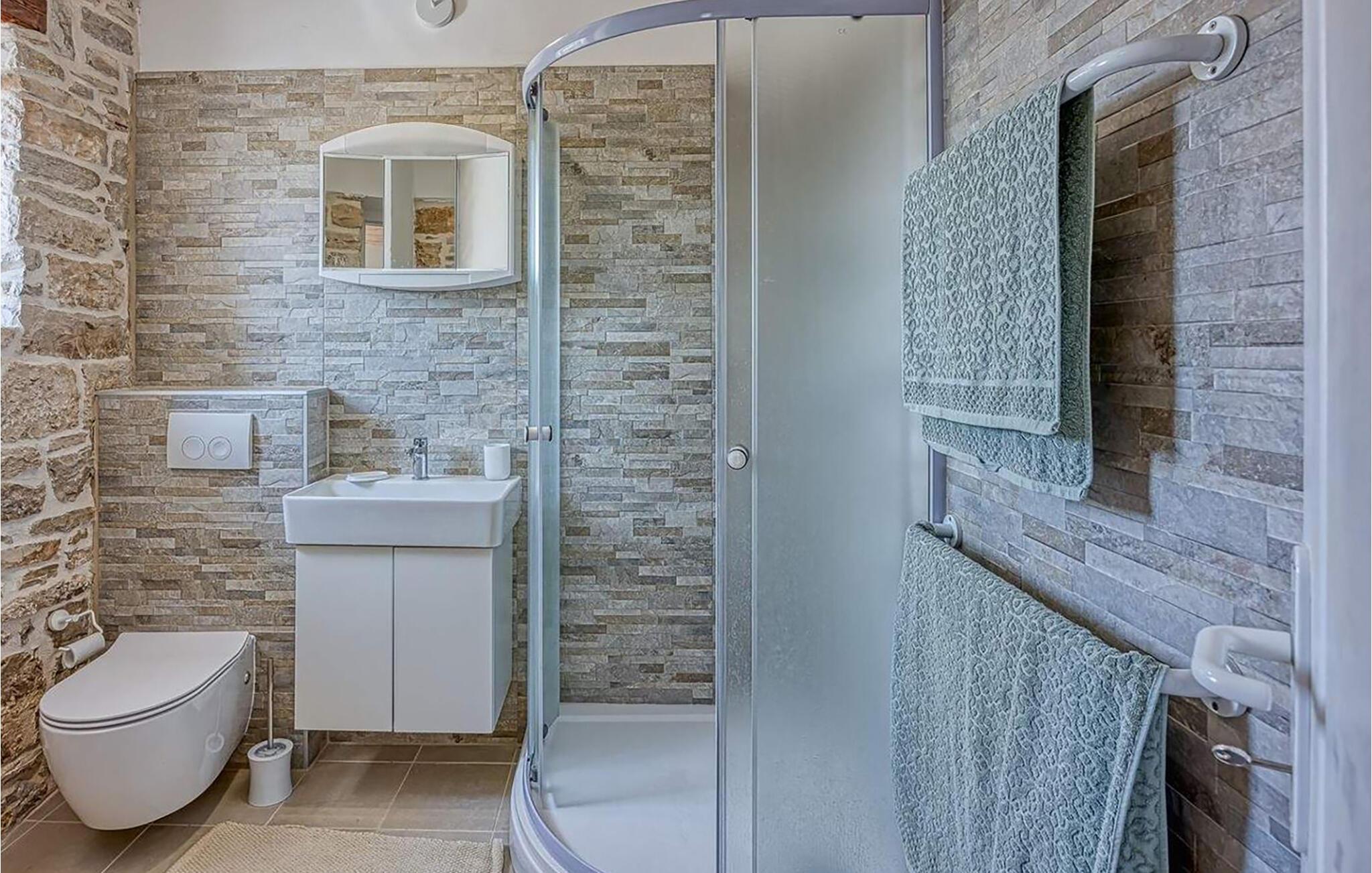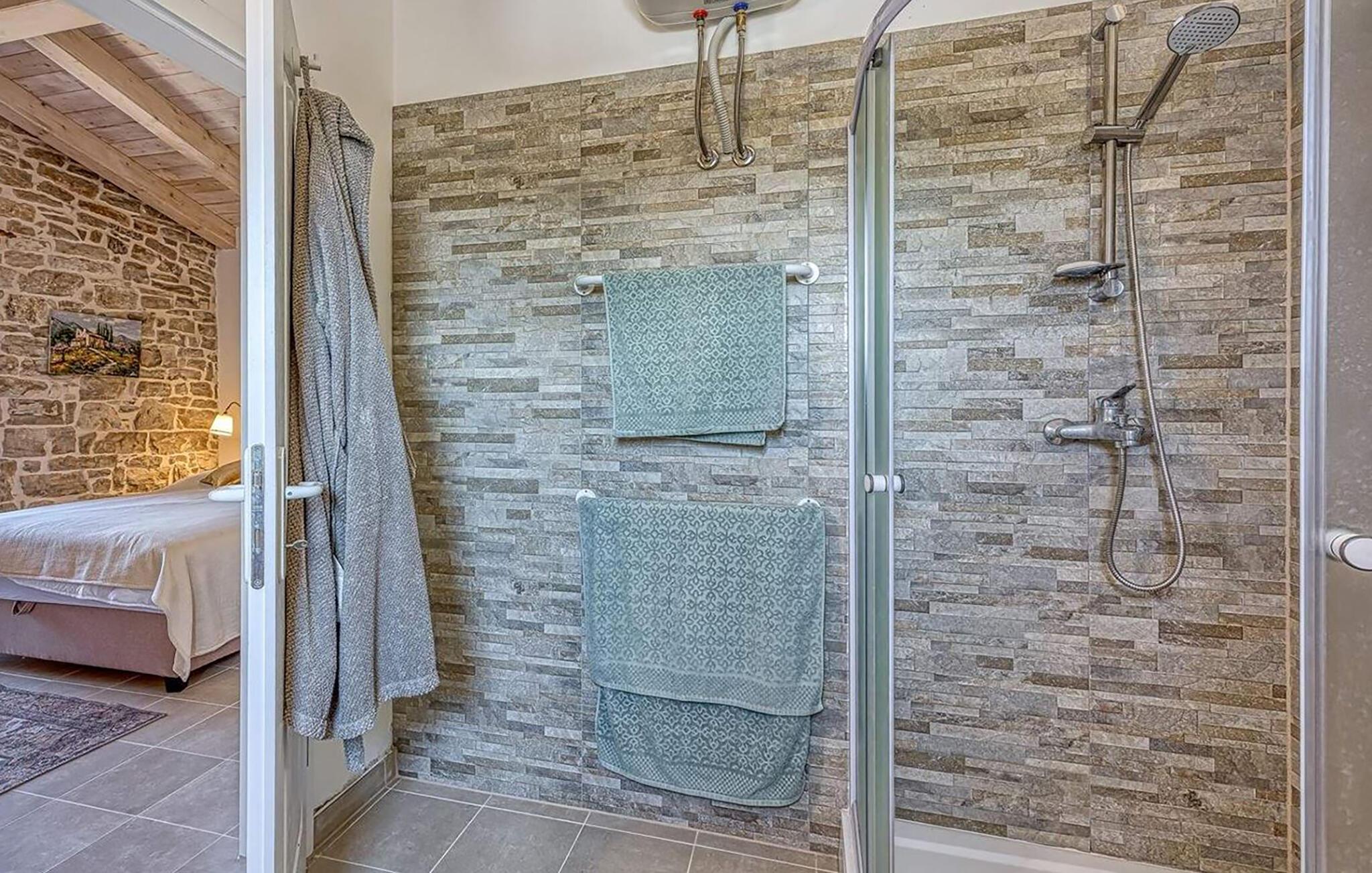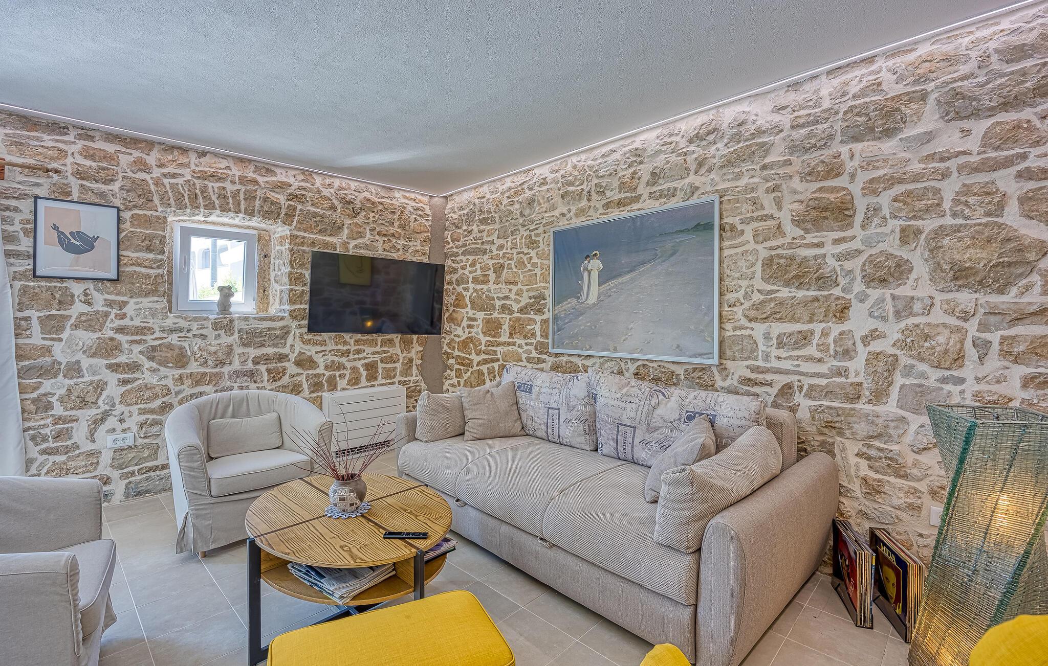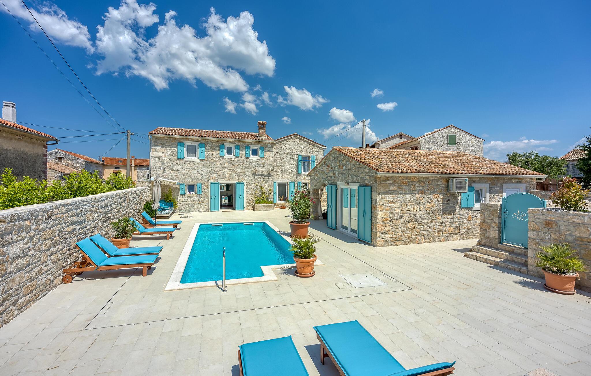 Nyd solrige dage i dette smukke feriehus med pool og læg hverdagen bag jer. Dette hyggelige og rummelige feriehus kan prale af et komfortabelt interiør og en vellykket blanding af rustikke naturstensvægge og moderne faciliteter. Tilbered middelhavsretter her og hyg jer på sofaen om aftenen. Det smukke udendørsområde er ideelt til timevis af solbadning og afslapning under den blå himmel. Forfrisk jer i poolen, når I har lyst, nyd den sommerlige atmosfære med farverige accenter, og tilbered lækre måltider i det indbydende sommerkøkken. Udforsk den charmerende gamle bydel i Porec med dens UNESCO-beskyttede Euphrasian-basilika, slentr gennem Rovinjs romantiske gyder, eller besøg det romerske amfiteater i Pula. Tag på udflugter til den nærliggende Brijuni Nationalpark, eller nyd vandreture og cykelture gennem det maleriske landskab. Prøv regionale specialiteter i traditionelle taverner, besøg vingårde og olivenolieproducenter, eller svøm i det krystalklare vand ved Adriaterhavskysten.