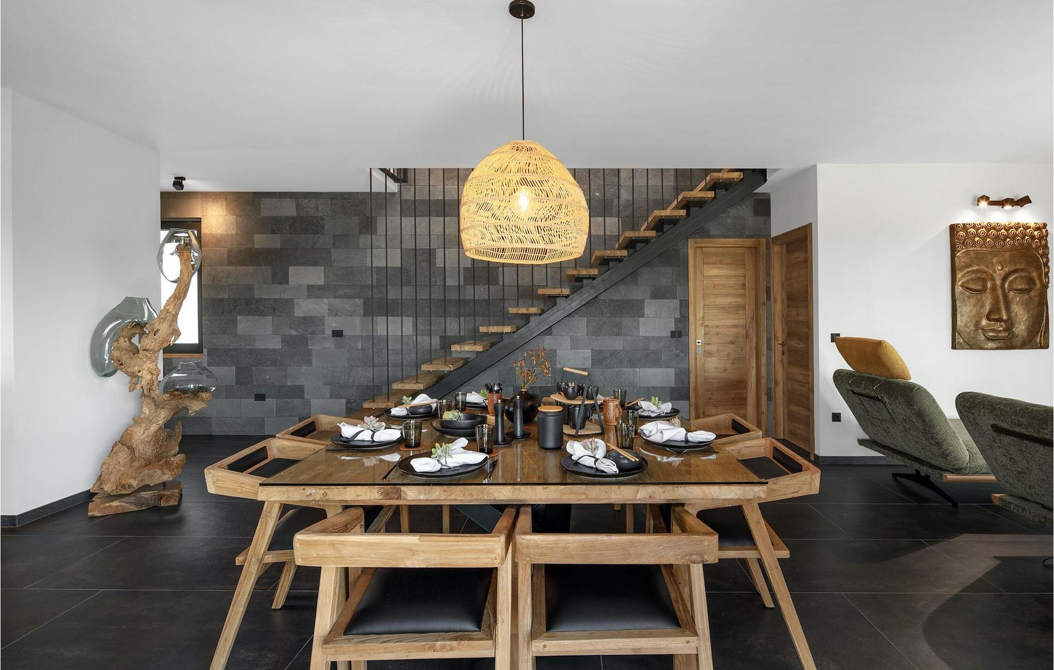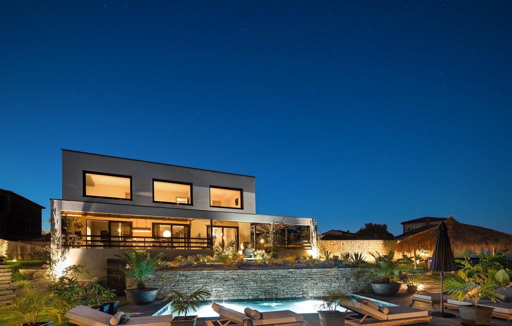 Villa Merapi er en blanding af moderne design, natur og spiritualitet. Den sorte vulkanske sten kendt for sine helbredende og afslappende egenskaber er blevet brugt i det moderne design af denne villa såvel som i pooldesignet. Håndlavede træmøbler pryder denne villa med naturlige elementer. Forskellige plantearter omgiver villaen og skaber en smuk oase til en afslappende ferie. Villaen er opdelt i stueetagen og første sal. I stueetagen er der et åbent rum med stue, køkken og spisestue, og på første sal er der tre soveværelser og to badeværelser, hvoraf det ene er eget badeværelse. Interiøret i denne smukke villa er dekoreret med en masse naturlige detaljer. Kombinationen af træ og sten giver denne villa et naturligt, men også moderne udtryk, der vil give dig en følelse af fred. Hvis du er en af dem, der ønsker at vågne op hver morgen med en smuk udsigt over naturen fra sengen, så er Villa Merapi det ideelle sted for dig. De store glasflader i soveværelserne giver et sted at sidde og ligge med en bog og nyde den smukke udsigt. Villaens smukt indrettede gårdhave med forskellige planter pryder villaen og skaber en lille oase. Forfrisk dig selv i den private pool med massagevandfald, og hvis du er en jacuzzi elsker, tilbyder villaen en udendørs jacuzzi under et bambuspavillon. For ekstra stemning er der en stor gynge til to personer, hvor man kan nyde en forfriskende drink og se stjernerne på himlen. Dyk ned i et eksotisk sted midt i Istrien med idylliske omgivelser, slap af og slap af fra hverdagens stress i Villa Merapi. Udover en smuk stemning med et moderne interiør ligger Villa Merapi i idylliske omgivelser med en smuk landskabshave. Beliggende i landsbyen Sv. Lovrec, villa Merapi ligger 15 km fra havet, hvor der er fine stenstrande nær byen Porec. Besøg den berømte Limfjord kun 30 minutters kørsel væk og udforsk dette vidunderlige naturområde. Restauranter og caféer ligger i Sveti Lovrec, 200 m fra villaen. Skal du købe dagligvarer, ligger lokale butikker kun 500 m fra villaen, så de er let tilgængelige til fods. Den idylliske beliggenhed af Villa Merapi vil glæde enhver besøgende. Book denne fantastiske villa og nyd de betagende omgivelser i Istrien.