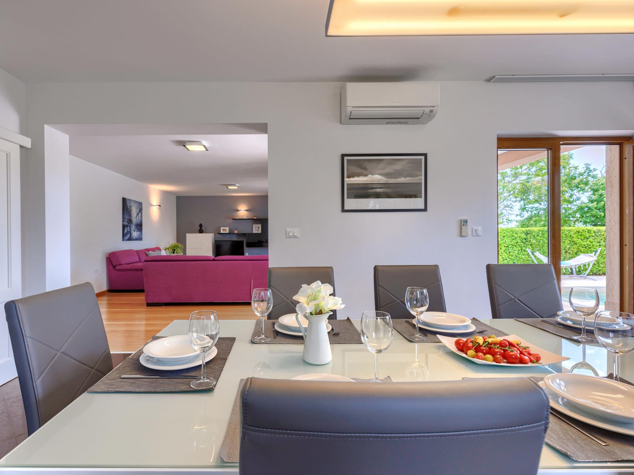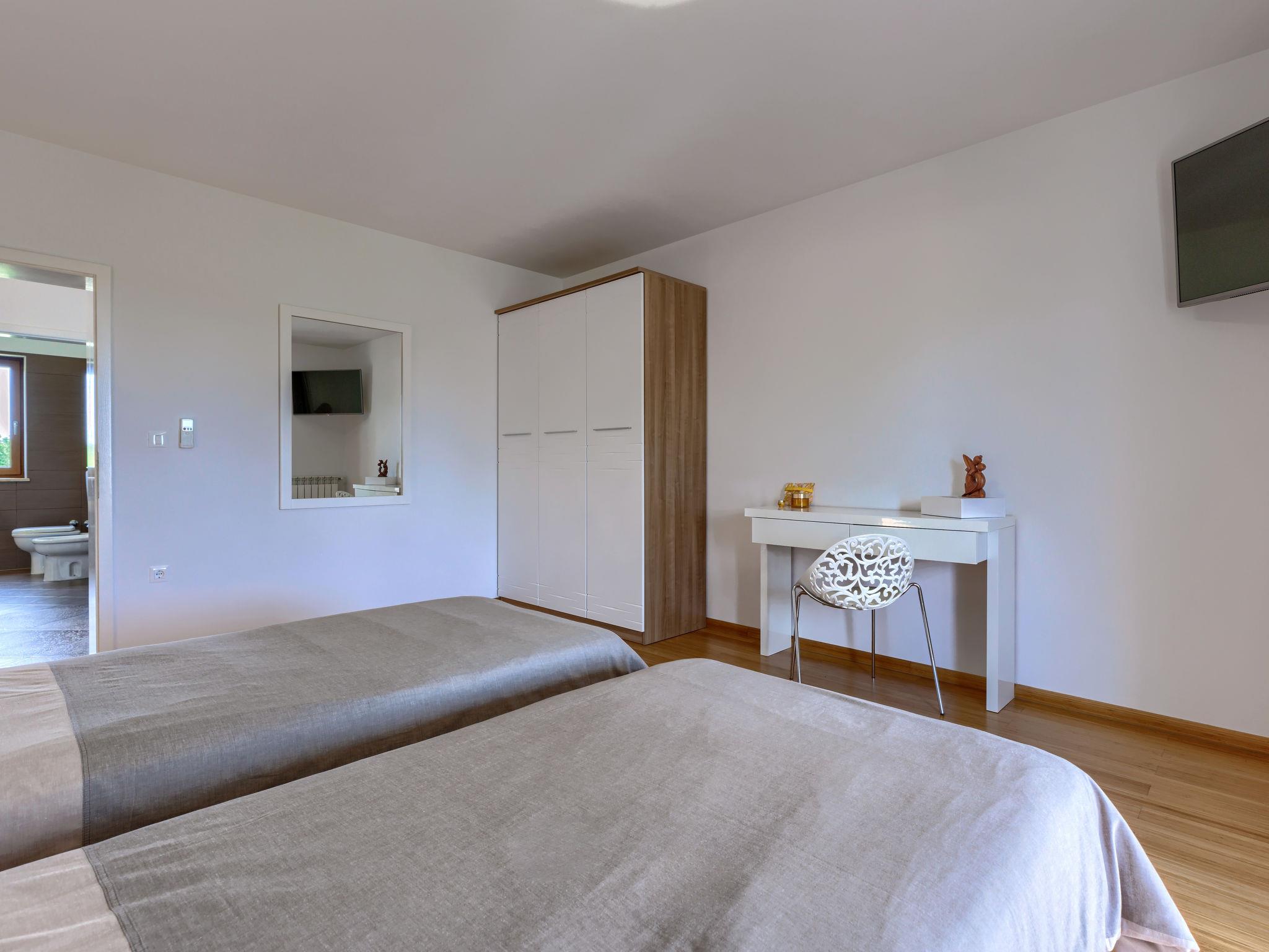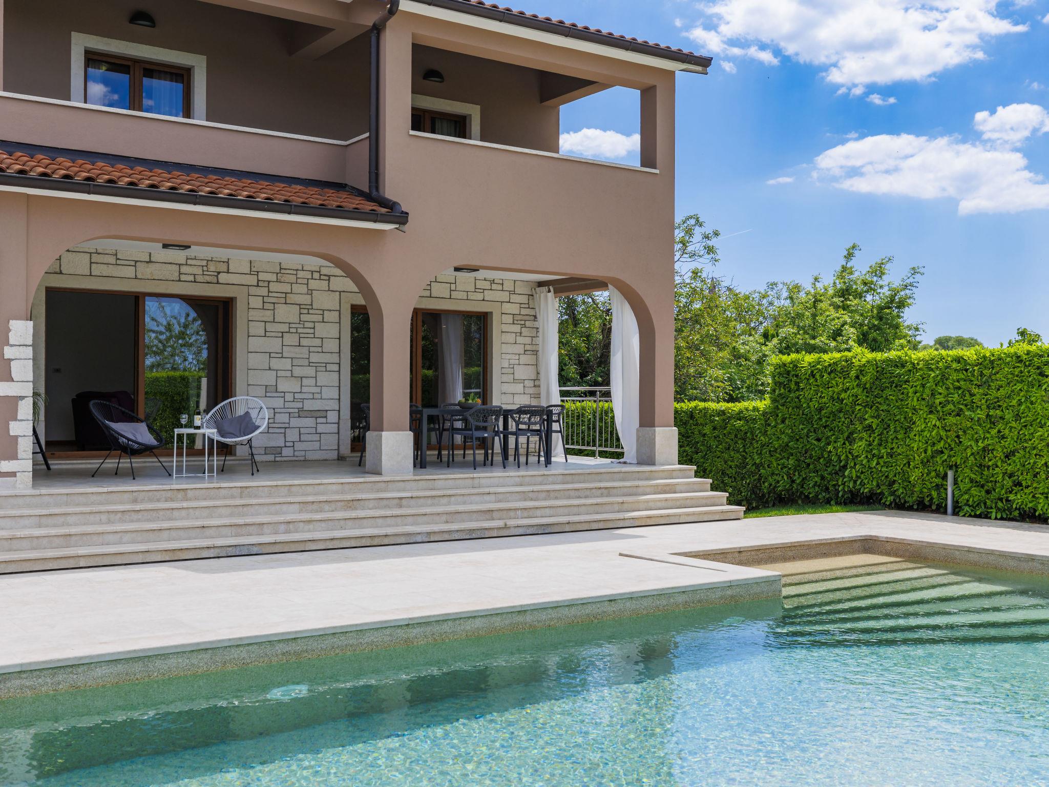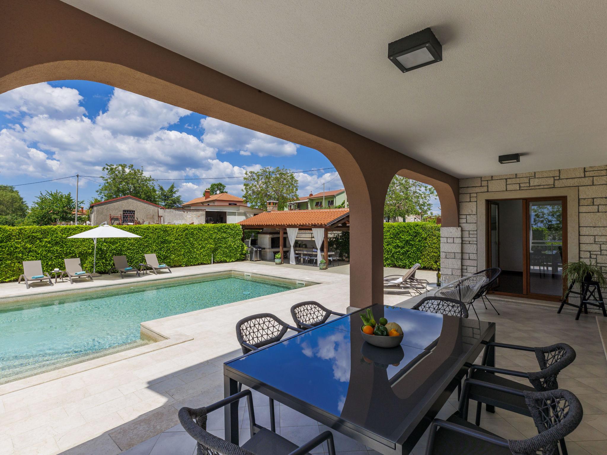 Child friendly, beautiful, comfortable villa "Anastasia", 2 storeys. 6 km from the centre of Žminj, 13 km from the centre of Pazin, in a sunny position, 27 km from the sea, 27 km from the beach, in the countryside. Private: property 1'800 m2 (fenced), beautiful garden with lawn 200 m2, swimming pool (10 x 6 m, depth 140 cm, seasonal availability: 27.Apr. - 26.Oct.) with internal staircase. Outdoor shower, basketball, terrace, garden furniture, barbecue, children's playground. In the house: internet access, table football, washing machine, tumble dryer. Parking at the house on the premises. Shop 500 m, supermarket 6 km, restaurant 1 km, café 400 m, bus stop 6.9 km, railway station 1 km, pebble beach 27 km. Riding stable 7 km, walking paths from the house 1 km, cycle lane 1 km. Available: darts.