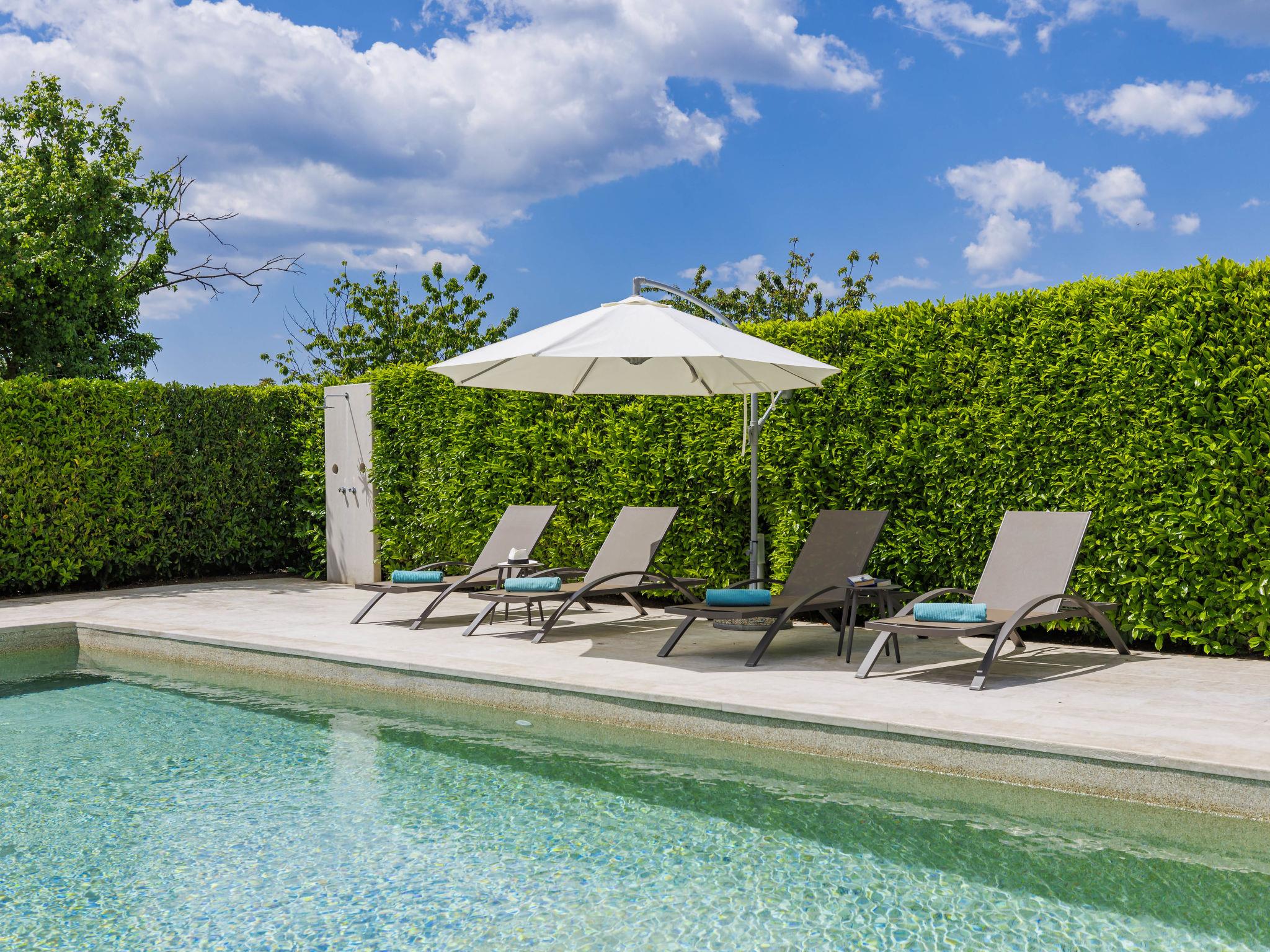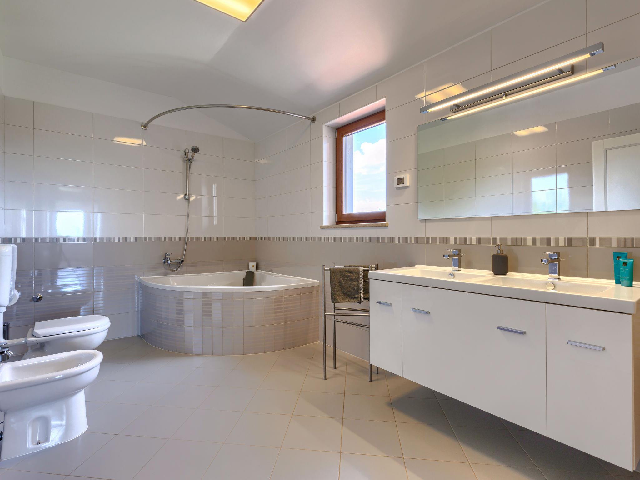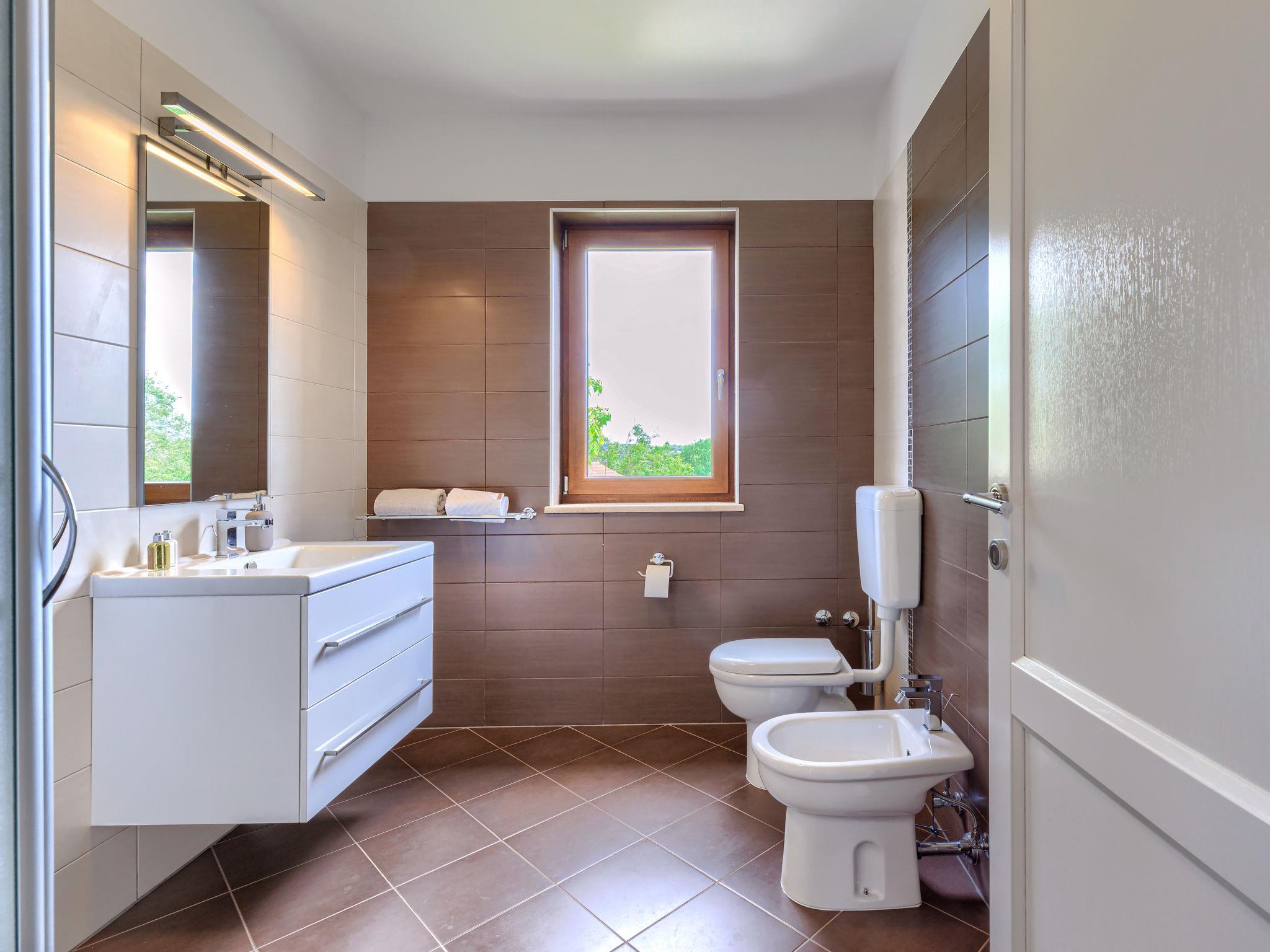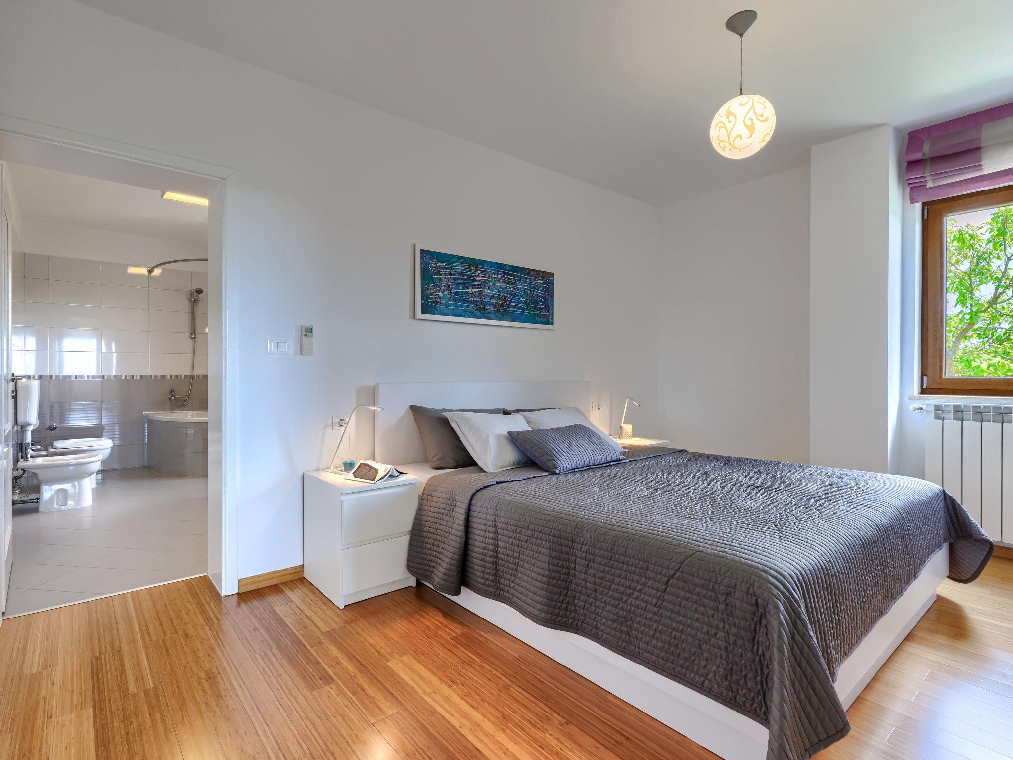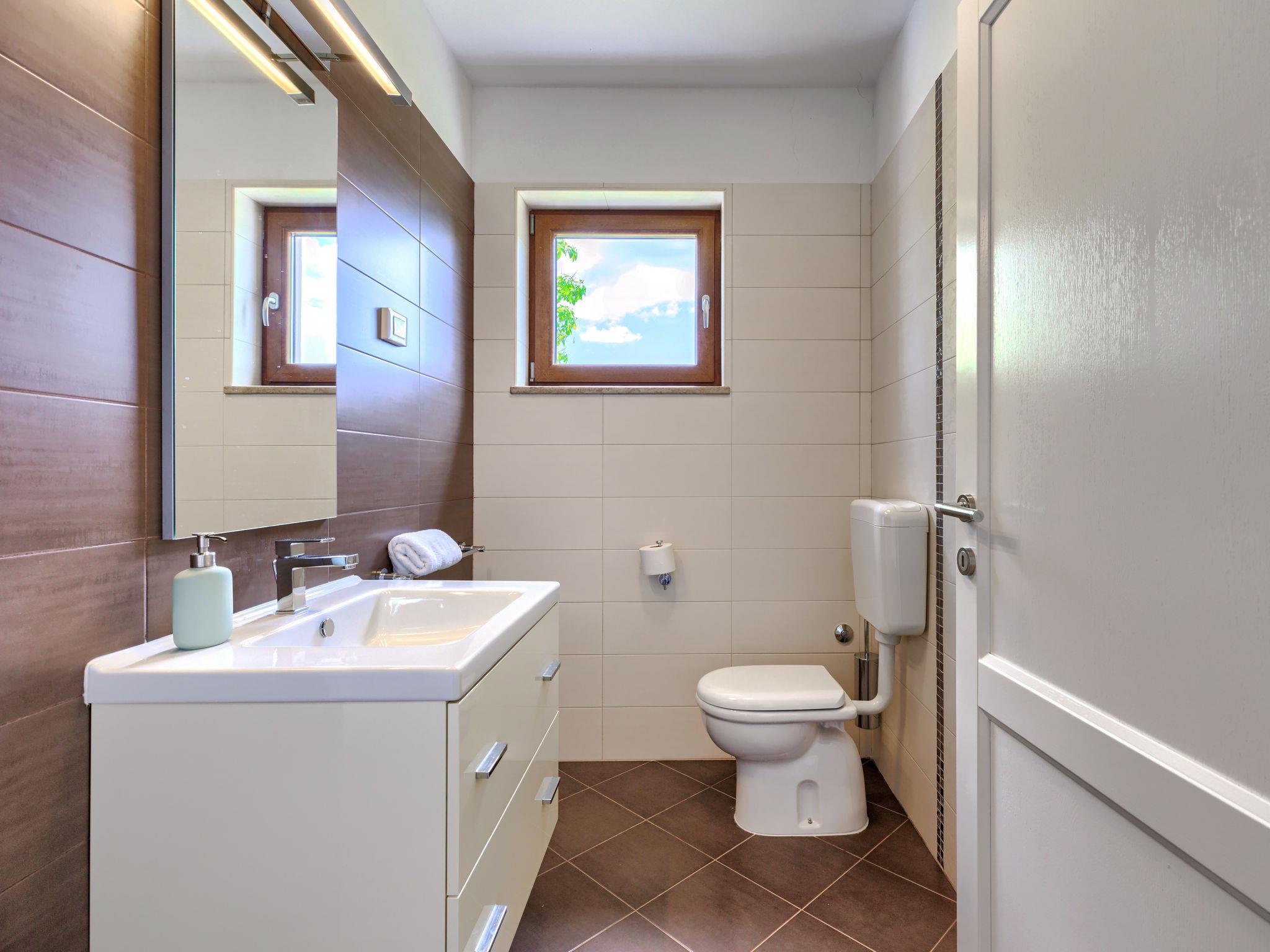 Child friendly, beautiful, comfortable villa "Anastasia", 2 storeys. 6 km from the centre of Žminj, 13 km from the centre of Pazin, in a sunny position, 27 km from the sea, 27 km from the beach, in the countryside. Private: property 1'800 m2 (fenced), beautiful garden with lawn 200 m2, swimming pool (10 x 6 m, depth 140 cm, seasonal availability: 27.Apr. - 26.Oct.) with internal staircase. Outdoor shower, basketball, terrace, garden furniture, barbecue, children's playground. In the house: internet access, table football, washing machine, tumble dryer. Parking at the house on the premises. Shop 500 m, supermarket 6 km, restaurant 1 km, café 400 m, bus stop 6.9 km, railway station 1 km, pebble beach 27 km. Riding stable 7 km, walking paths from the house 1 km, cycle lane 1 km. Available: darts.