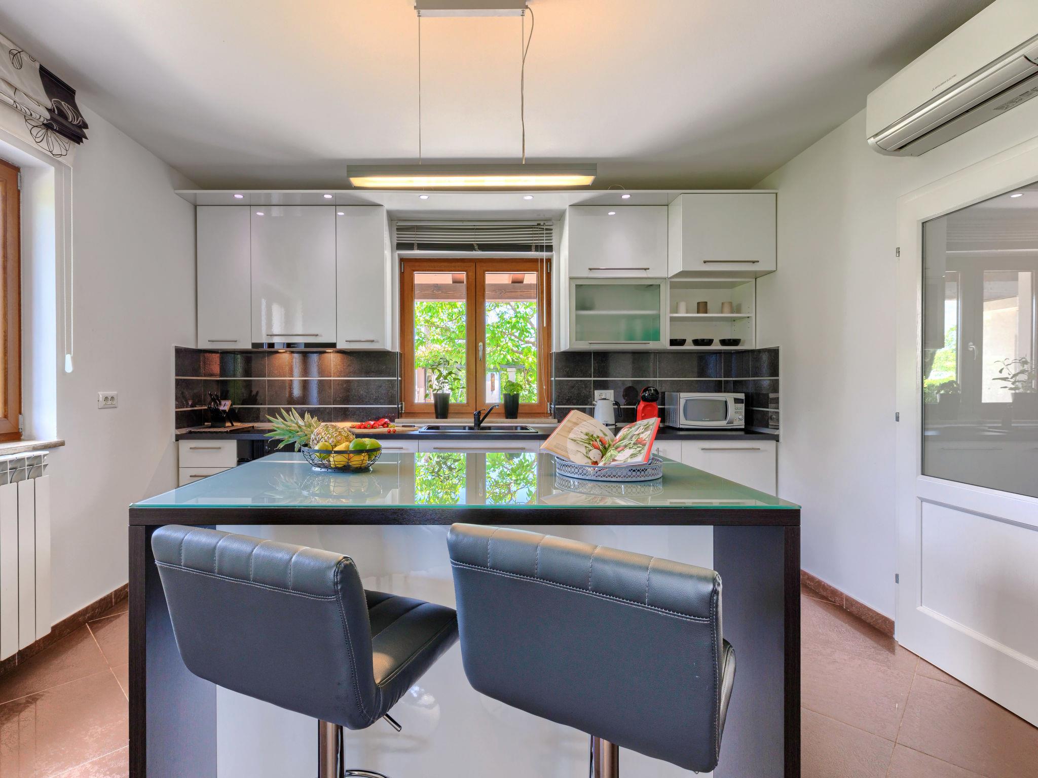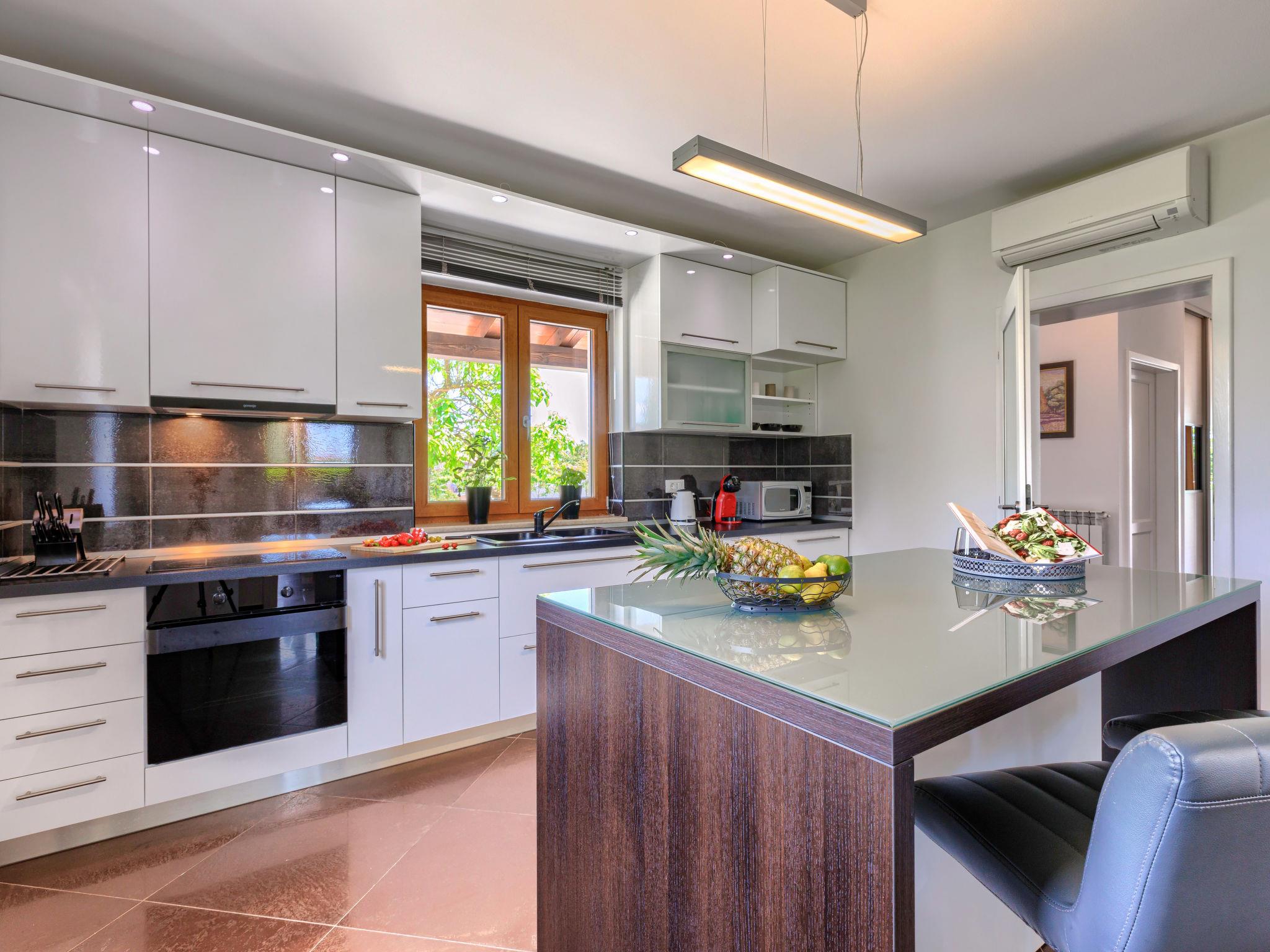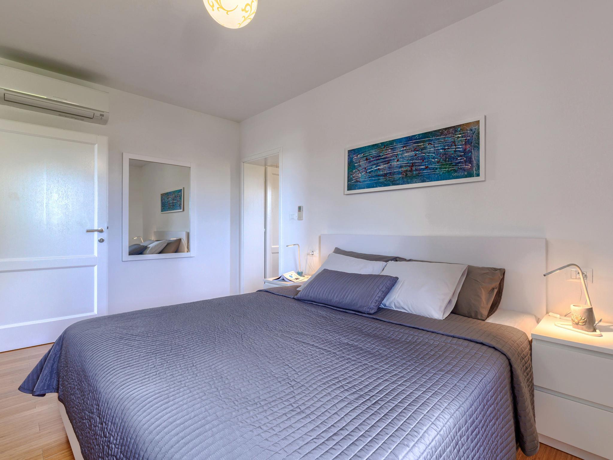 4-room villa 230 m2 on 2 levels. Large living/dining room 90 m2 with satellite TV, flat screen, DVD and air conditioning. Exit to the terrace, to the swimming pool. Kitchen (oven, dishwasher, 4 ceramic glass hob hotplates, microwave, freezer, electric coffee machine) with air conditioning. Sep. WC. Upper floor: 1 room with 2 beds (90 cm, length 200 cm), satellite TV and air conditioning. Exit to the terrace. 1 room with 1 french bed (180 cm, length 200 cm), bath/WC, satellite TV and air conditioning. Exit to the terrace. 1 room with 1 french bed (180 cm, length 200 cm), bath/WC, satellite TV and air conditioning. Shower/WC. Terrace 30 m2, roofed terrace 15 m2, roofed. Terrace furniture, deck chairs. View of the swimming pool. Facilities: safe, baby cot. Internet (WiFi, free). Garage (2 cars). UP/I-335-03/12-01/43