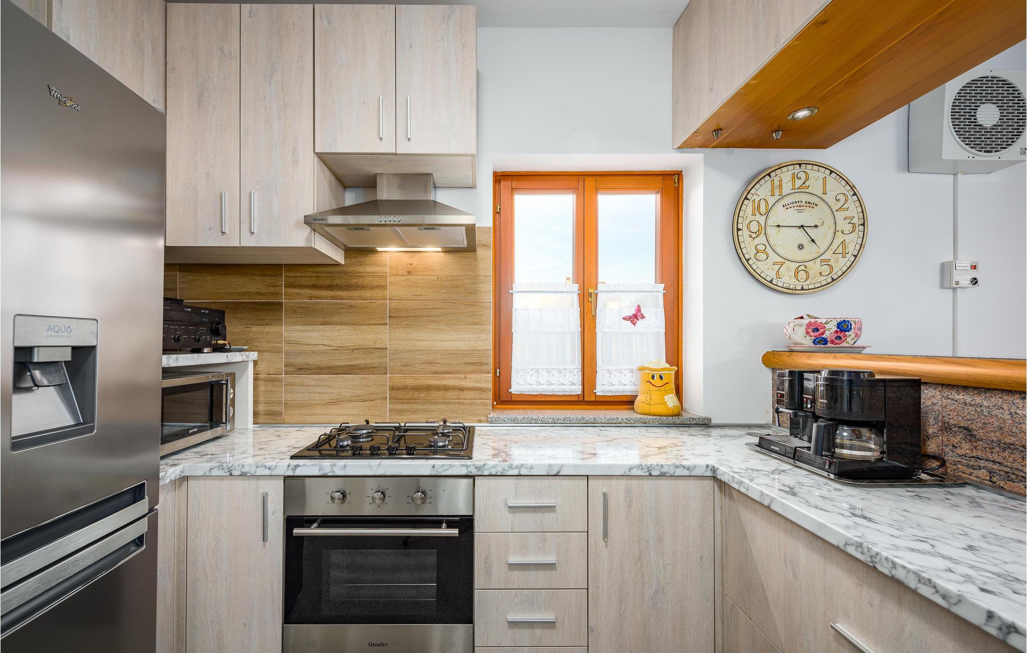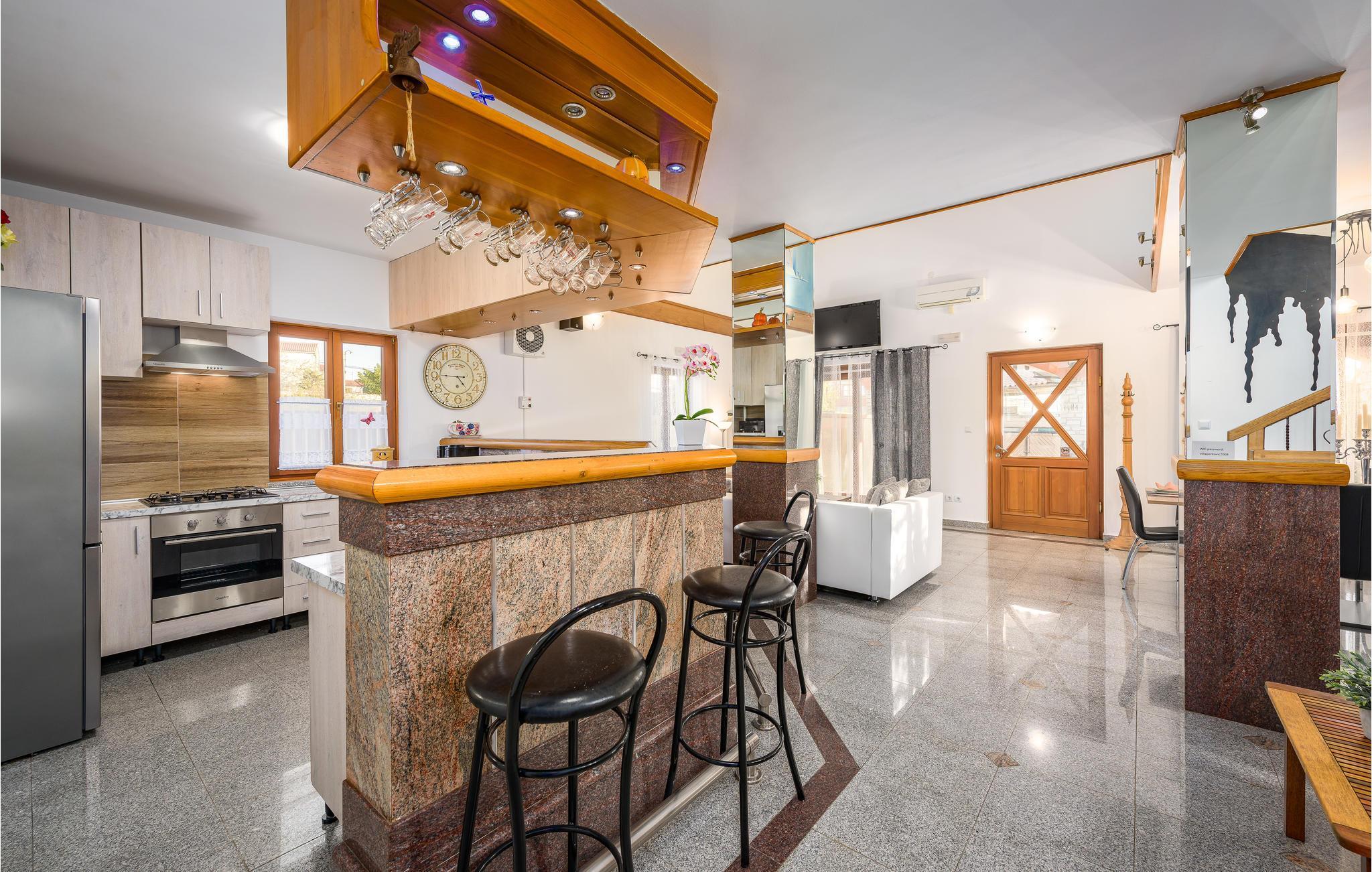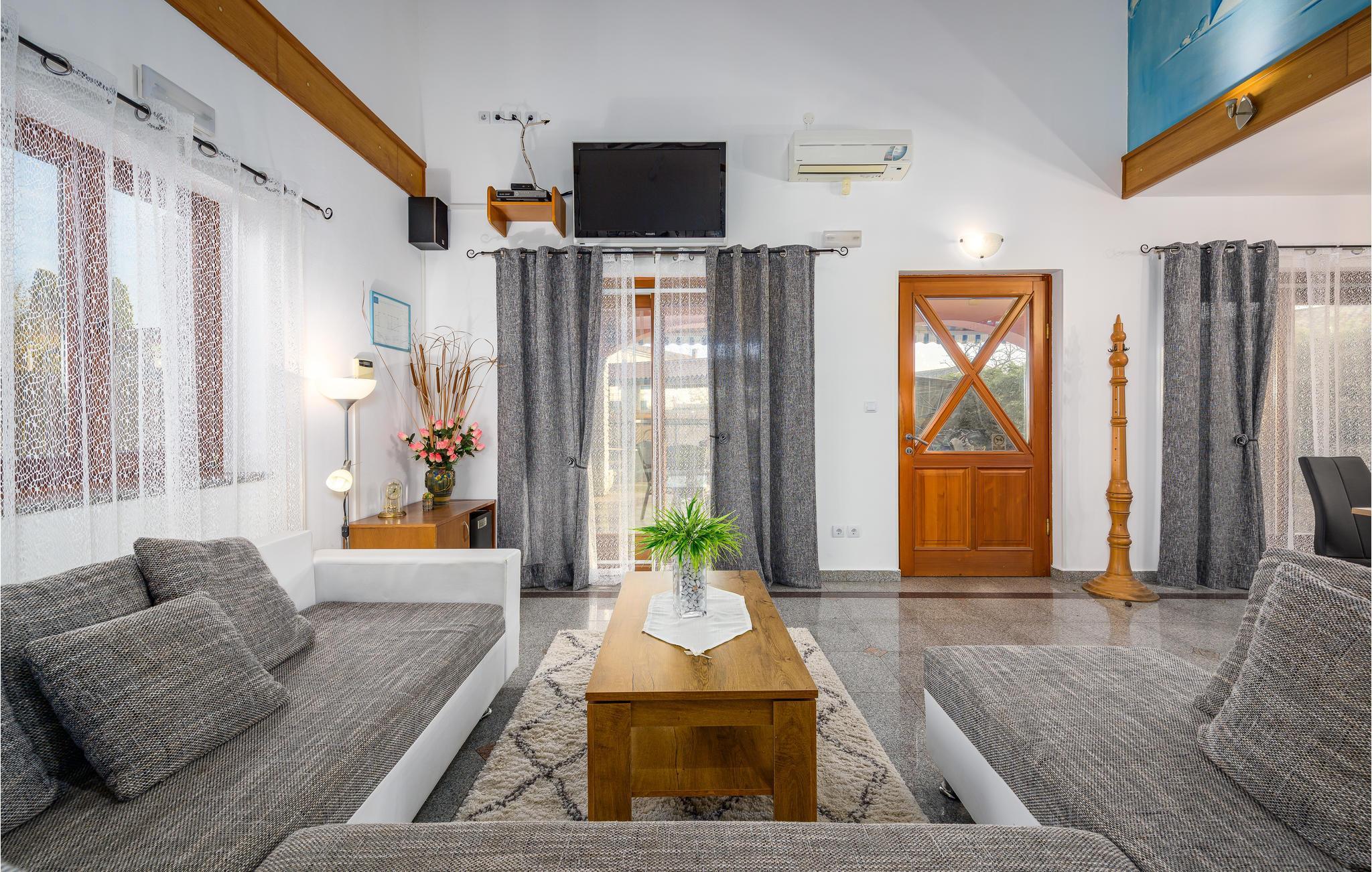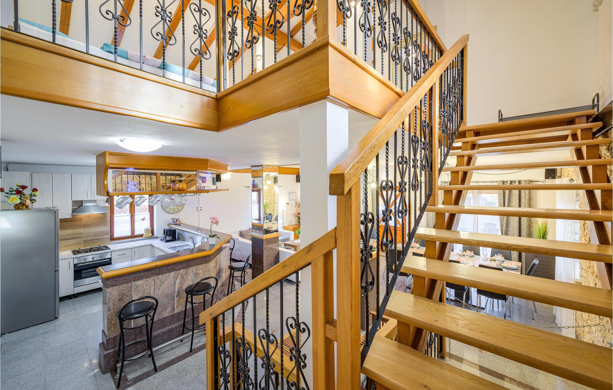 Dette indbydende hus er perfekt til en afslappende ferie. Den åbne stue med træ- og naturstenselementer skaber en afslappet atmosfære, hvor I hurtigt vil føle jer hjemme. Slap af på sofaen med en kop kaffe eller spil dart eller bordfodbold med børnene. Hvis I har lyst til lidt motion, kan I bruge fitnessudstyret.