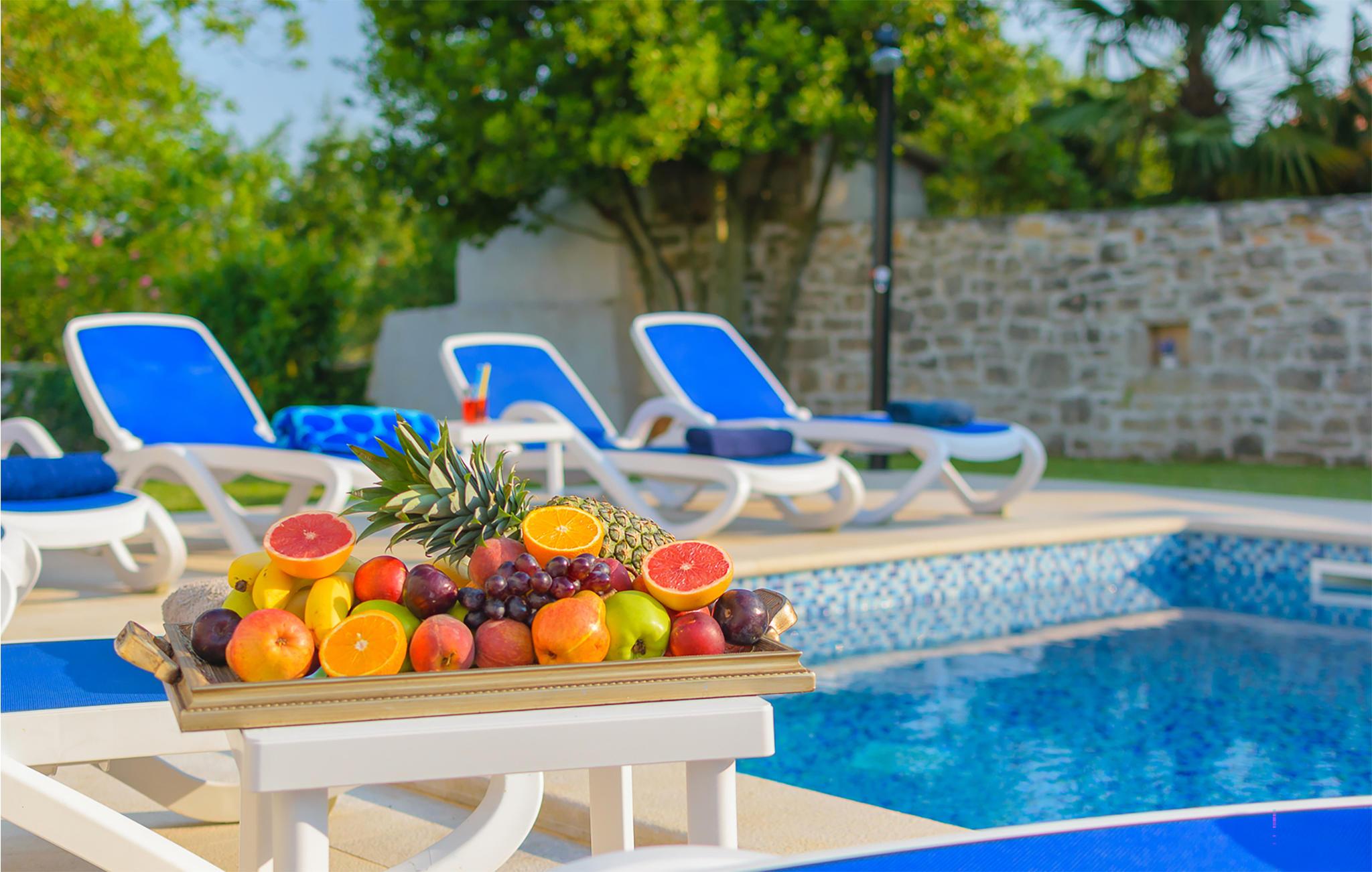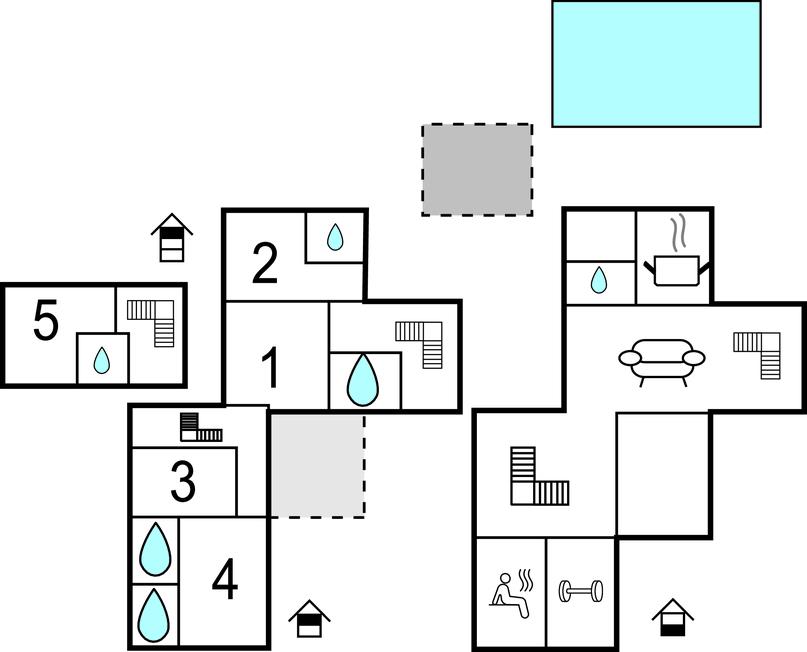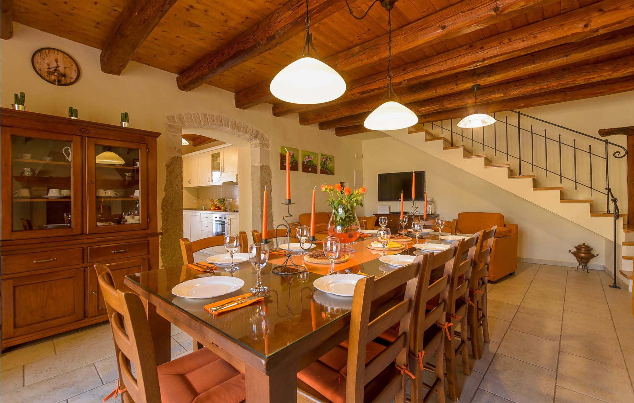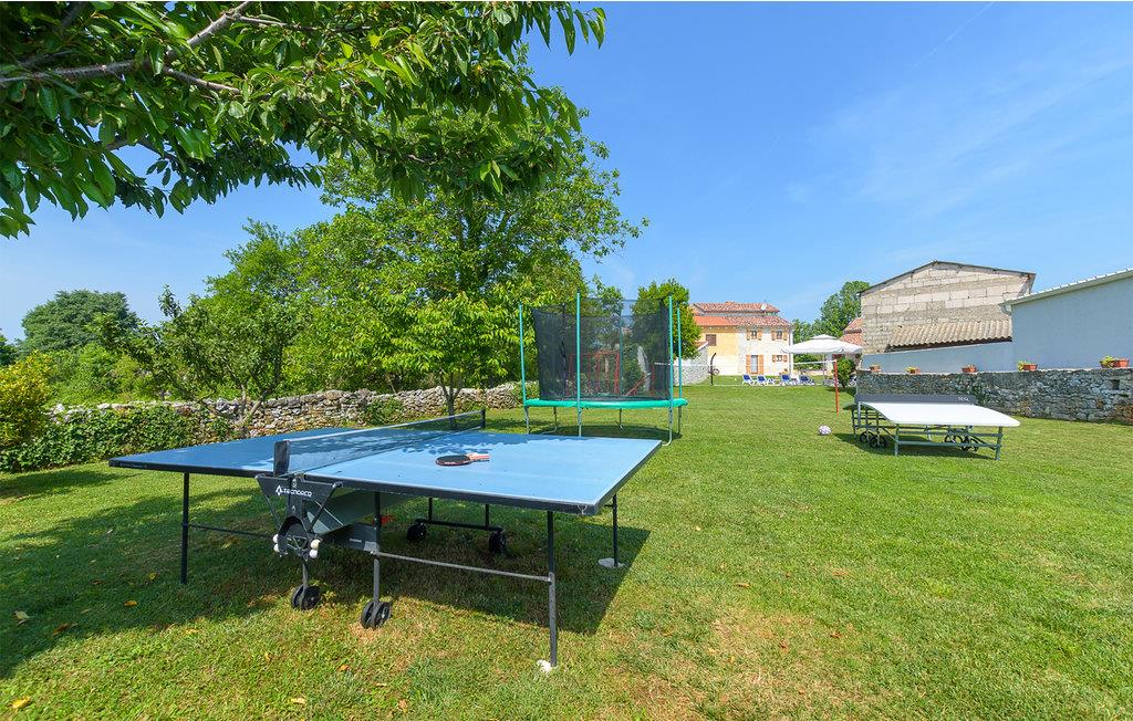Gulvene er forbundet med indvendige trapper. Huset har 5 soveværelser, 5 badeværelser, køkken og stue. I dette hus har du til en afslappende og vellykket ferie. Blandt andet finder du fitnessudstyr, en sauna og en vinkælder. Du kan slappe af på en stor overdækket terrasse ved siden af ??poolen, mens børnene leger. Ejendommen og parkeringspladserne er helt indhegnet.