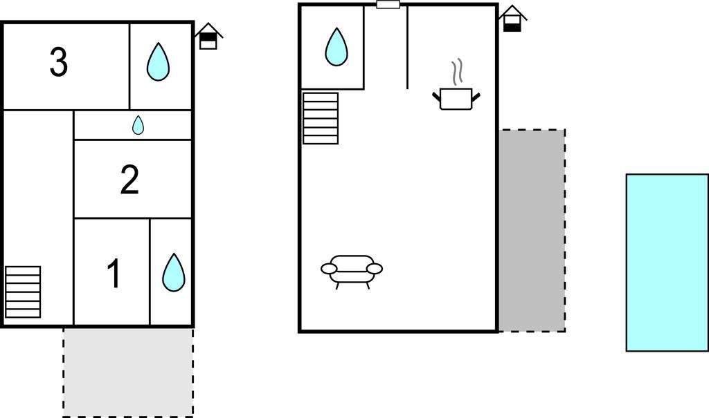 Opholdsstue/køkken - 2 Sovepladser. (Sofa, madras eller lignende).