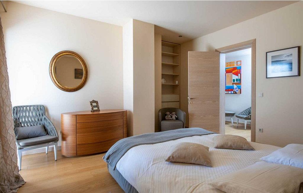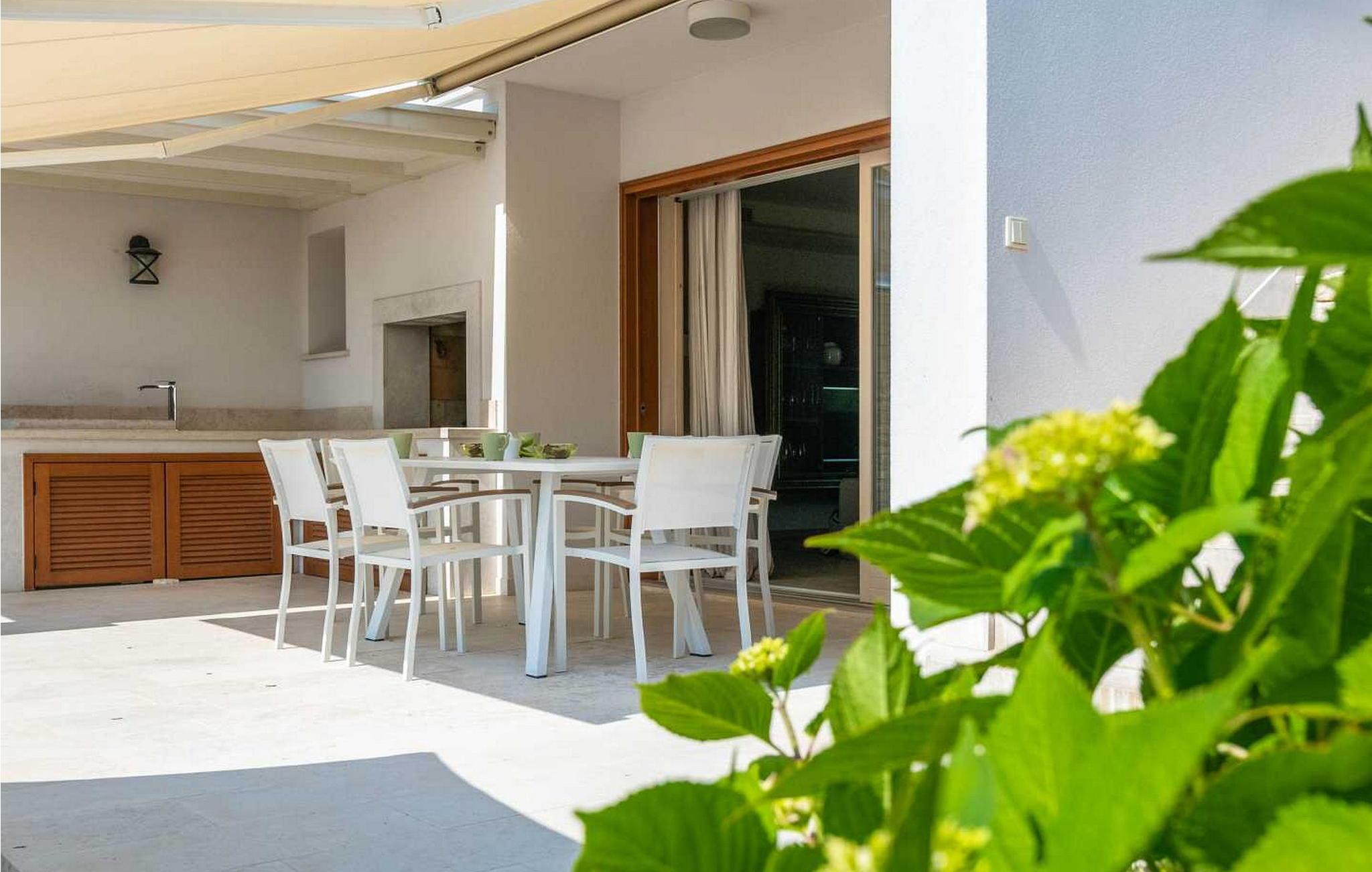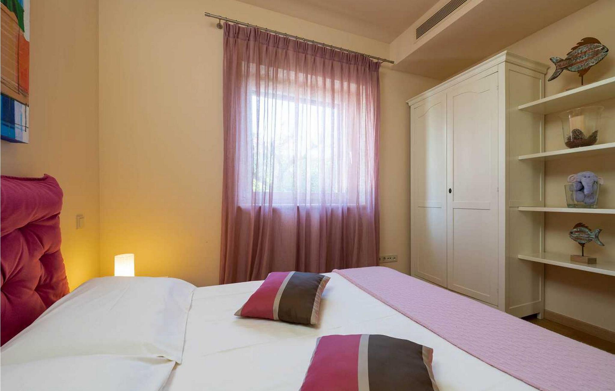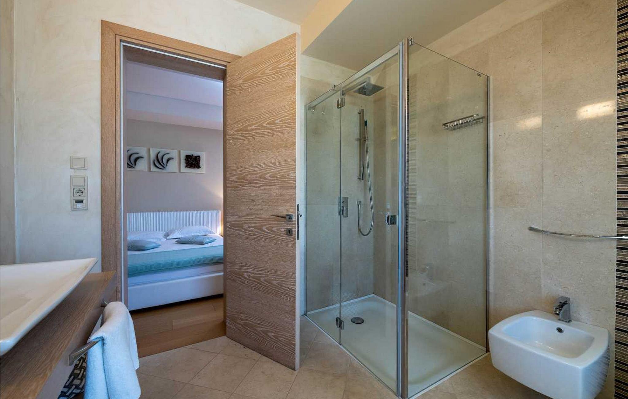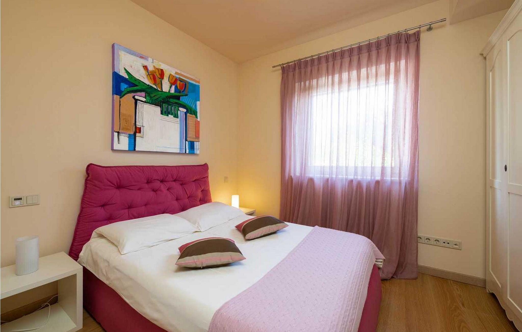 Denne moderne og rigt udstyrede villa med pool ligger i Vabriga, ca. 10 km fra Porec og 1 km fra havet. Beliggende på egen indhegnet gård på 700 kvm, tilbyder villaen sine gæster en velholdt græsplæne, 35 kvm stor privat swimmingpool, overdækket terrasse med siddesæt, udekøkken, én parkeringsplads og garage til én bil. Bygget i 2012, tilbyder Villa Allegra et højt niveau af komfort med møbler af højere kvalitet og interiør møbleret med materialer af høj kvalitet, fra stenbelagt gulv og trapper, gennem badeværelser udstyret med førsteklasses designerfaciliteter til udvendigt træværk af mahogni, alt i dette luksuriøse hjem er underordnet sine gæsters nydelse. Udover dette har villaen også et sofistikeret varme- og kølesystem, som muliggør præcis justering af temperaturen i hvert af rummene, samt intensiteten af gulvvarmen i de koldere perioder af året. Huset er forbundet med et andet identisk hus, men takket være den grønne indhegnede have har gæsterne i villaen Allegra fuldstændig privatliv sikret. Villa med swimmingpool til 6 gæster på cirka 169 kvm fordelt på to etager. I stueetagen er der en rummelig opholdsstue med fuldt udstyret køkken, spisebord og stue med pejs med udgang til haven med swimmingpool, terrasse og udekøkken, et soveværelse med dobbeltseng, bad/toilet. På første sal er der to soveværelser med dobbeltsenge og terrasse, et med bad/toilet og et med bad/toilet med spabad og separat brus. BEMÆRK: Gæster har gratis adgang til feriestedet Lanterna under deres ophold. Bemærk venligst, at denne ejendom ikke accepterer ungdomsgrupper eller polterabends. En ungdomsgruppe på denne ejendom er en gruppe bestående af personer på 26 år eller derunder. Book ikke denne ejendom, hvis du er en ungdomsgruppe eller et polterabend, da din reservation vil blive afvist efter booking, hvilket kan omfatte ved ankomst til ejendommen eller under dit ophold, og du vil ikke blive refunderet.