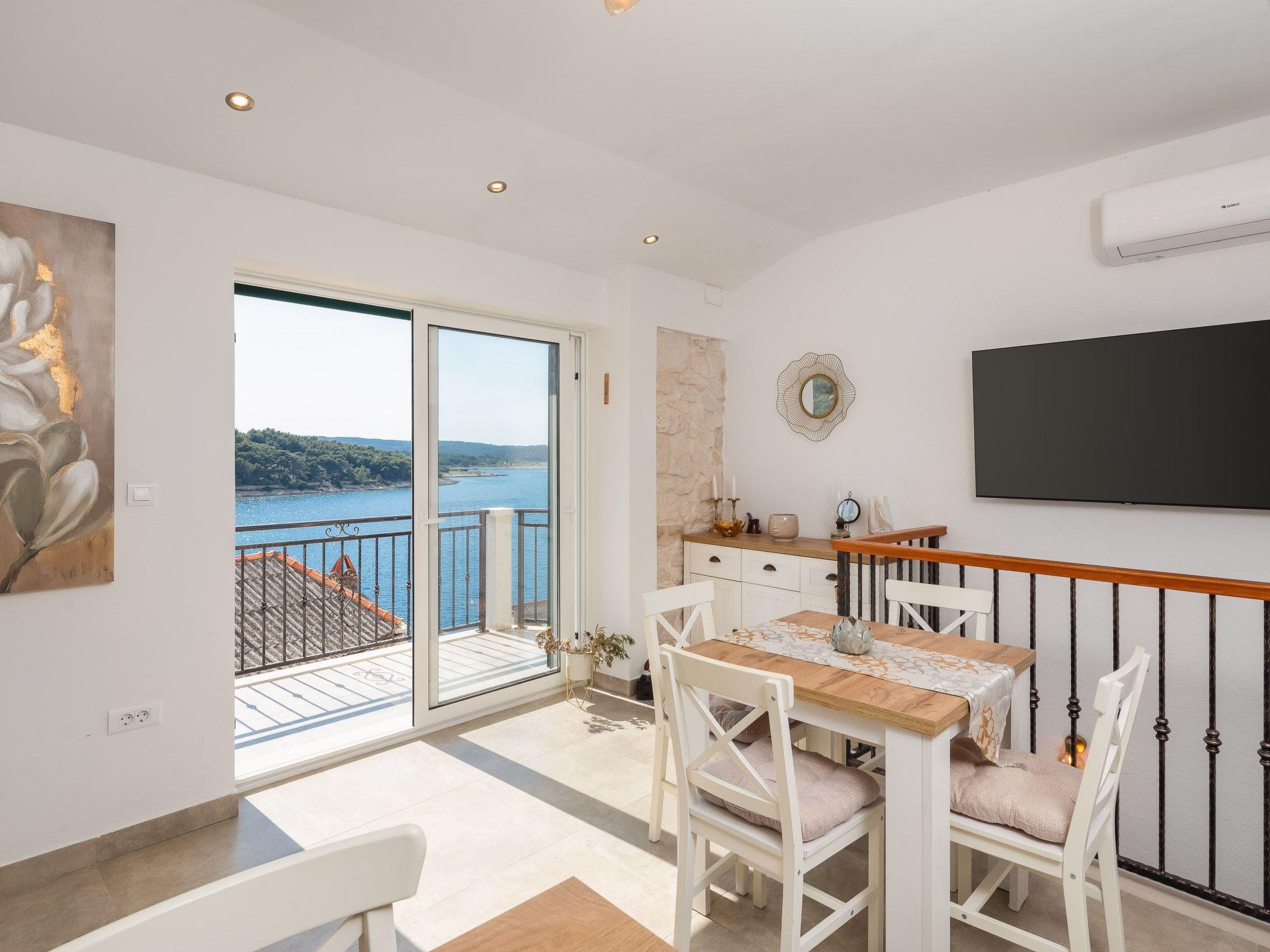 This charming holiday home can accommodate two people. It features a bedroom with a spacious double bed, a kitchen, a living room, a bathroom with a shower, and a balcony with sea views. The bedroom and bathroom are located on the ground floor. The living room and kitchen are on the first floor. The living room has a sofa, a TV, and air conditioning. The kitchen is equipped with an oven, a dishwasher, a stove, a refrigerator, a microwave, an electric kettle, a coffee maker, and all necessary kitchen utensils. The balcony offers fantastic sea views!