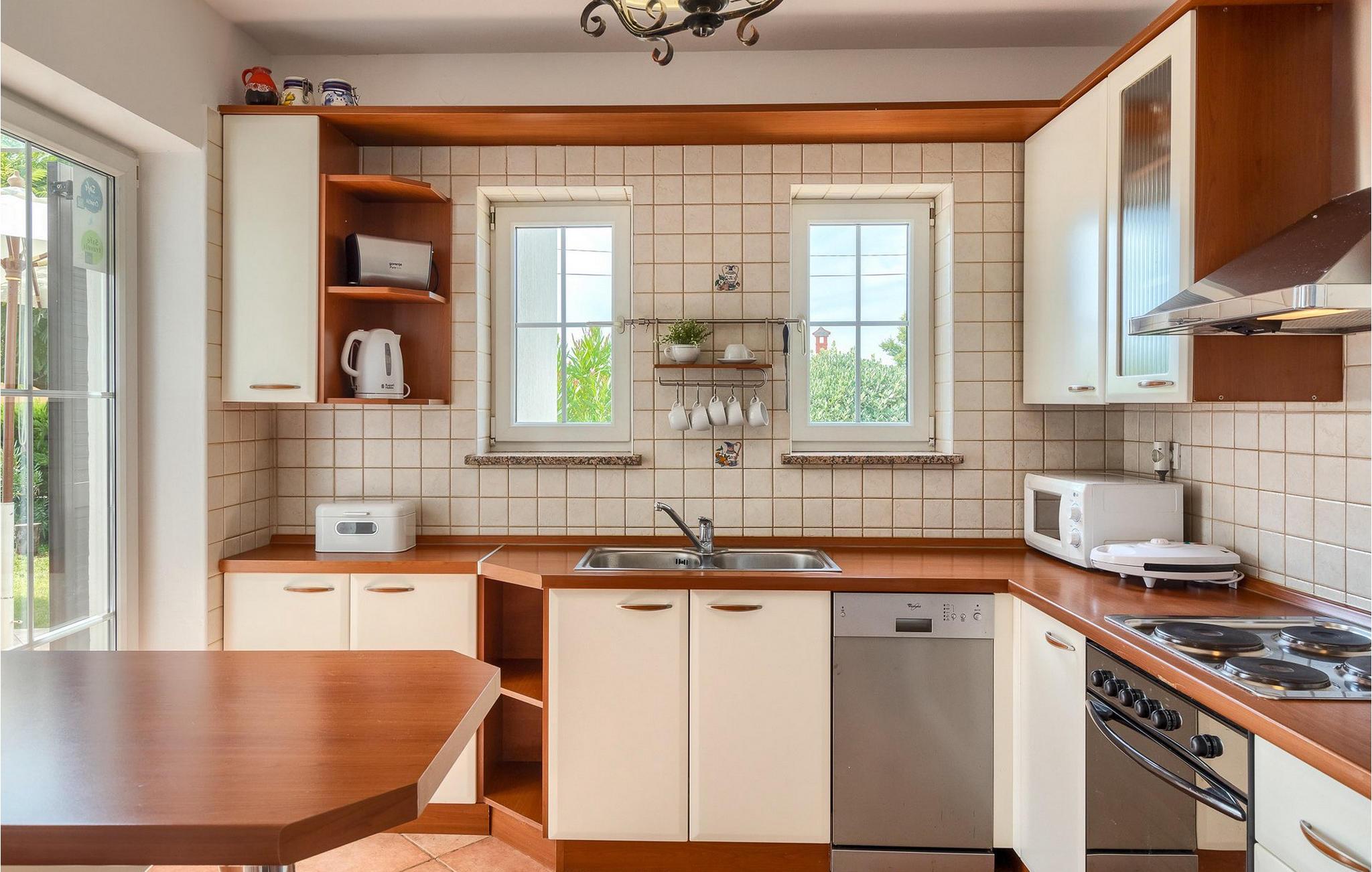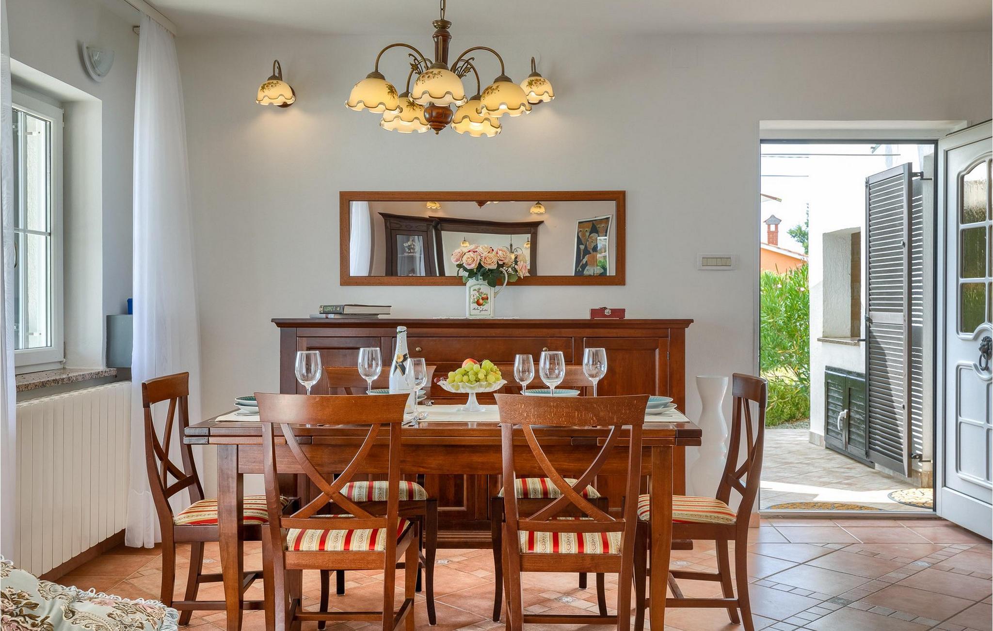 Selvom villaen ligger kun 5 kilometer fra stranden, er det højst sandsynligt, at du vil tilbringe det meste af din ferie i villaens fantastiske udendørs område. Prøv swimmingpoolen, tag dækning i skyggen af en af parasollerne bagefter, tag en skive vandmelon og forkæl dig selv med et glas kold drik for at køle dig ned på varme sommerdage. Dine børn kan lege på legepladsen, mens du læner dig tilbage og slapper af i den udendørs spiseplads. De eventyrlystne vil opdage, at de 4 cykler til deres rådighed i villaen er det bedste middel til at udforske området omkring villaen. Villaen er beliggende i en lille landsby nær turist-hotspottet Porec. Dens beliggenhed nær havet vil begejstre alle strandgæster, da den dejlige strand Spadici samt et velkendt turiststed Zelena Laguna i Porec kun er en kort køretur fra villaen. Porec byder på et udvalg af sten- og stenstrande, og det smukke turkise Adriaterhav vil helt sikkert efterlade dig forpustet! Hvis du er mere interesseret i historie og kultur, kan du gå en tur gennem dets historiske centrum og besøge Euphrasian-basilikaen, et UNESCO-verdensarvssted. Istrien er også kendt for sine gode trafikforbindelser, så du nemt kan nå alle andre populære turistdestinationer som Novigrad, Umag eller Pula i bil. For dem, der søger en aktiv ferie, er der en vidunderlig grus-cykelrute kaldet Parenzana i nærheden. Stien strækker sig langs sporet af en tidligere jernbane fra Porec til Trieste, og at køre på den er helt sikkert den bedste måde at lære Istrien at kende på to hjul!