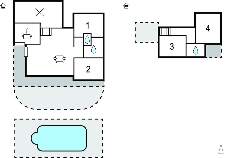 To soveværelser er placeret i stueetagen, det ene udstyret med en dobbeltseng og det andet udstyret med to enkeltsenge. De to andre soveværelser ligger på øverste etage, begge med dobbeltseng. Et badeværelse med bruser er placeret på hver etage. Glem alt om dine hverdagsbekymringer og stress og tillad dig selv endelig at få en god nats søvn.