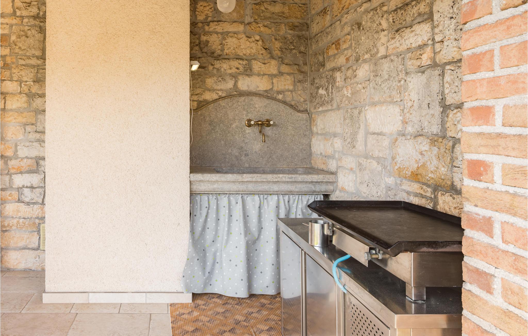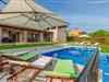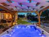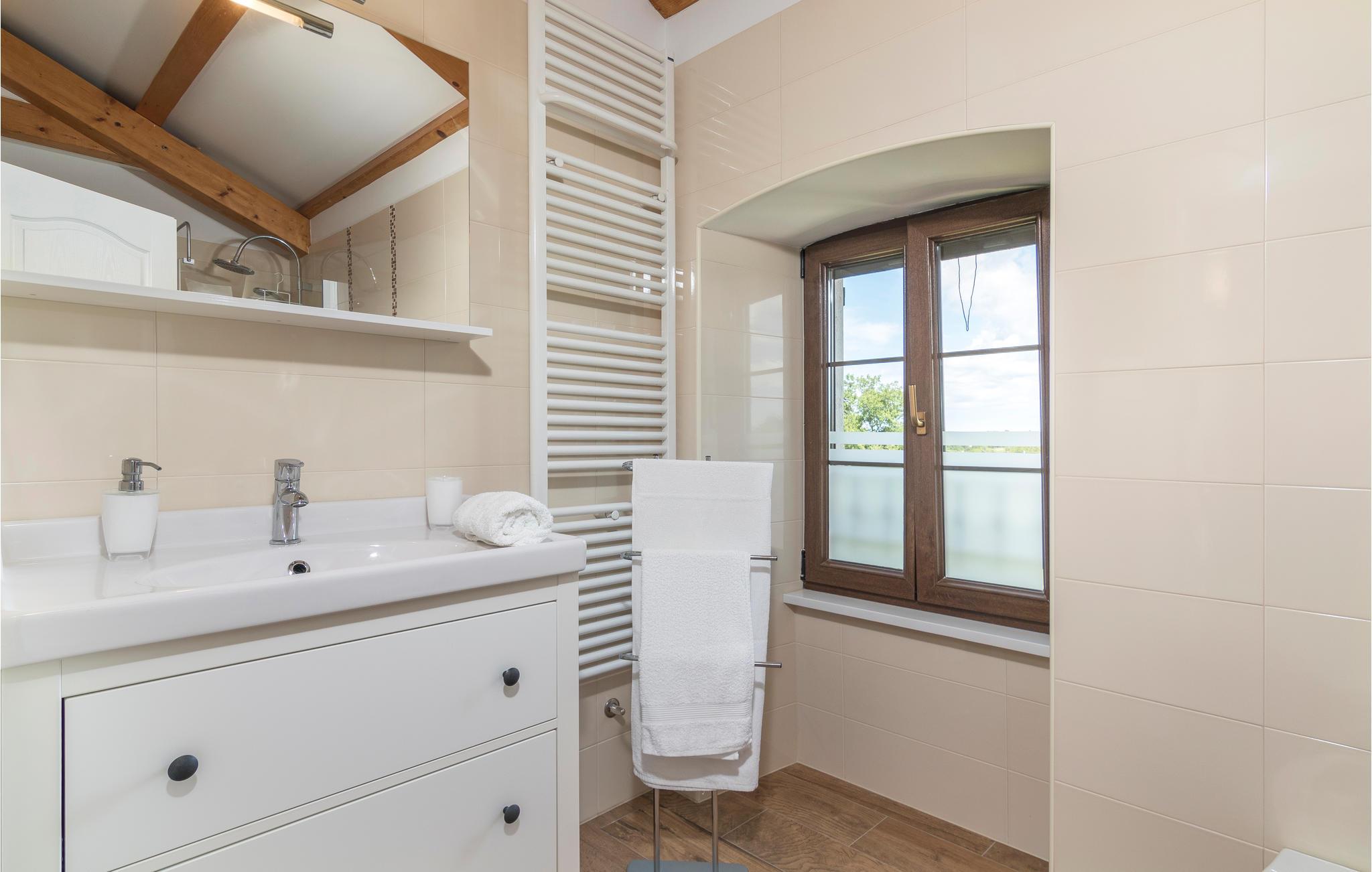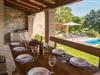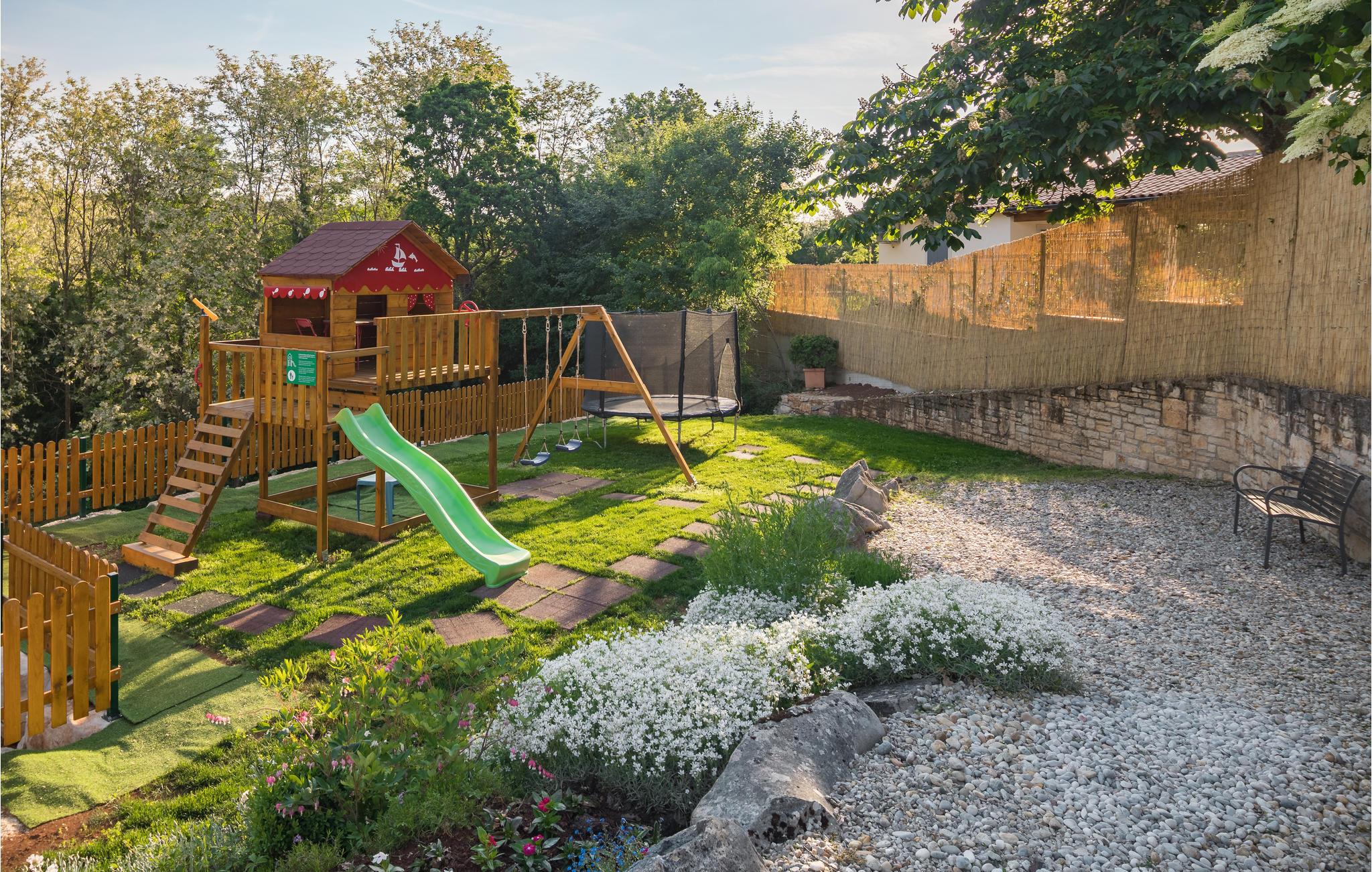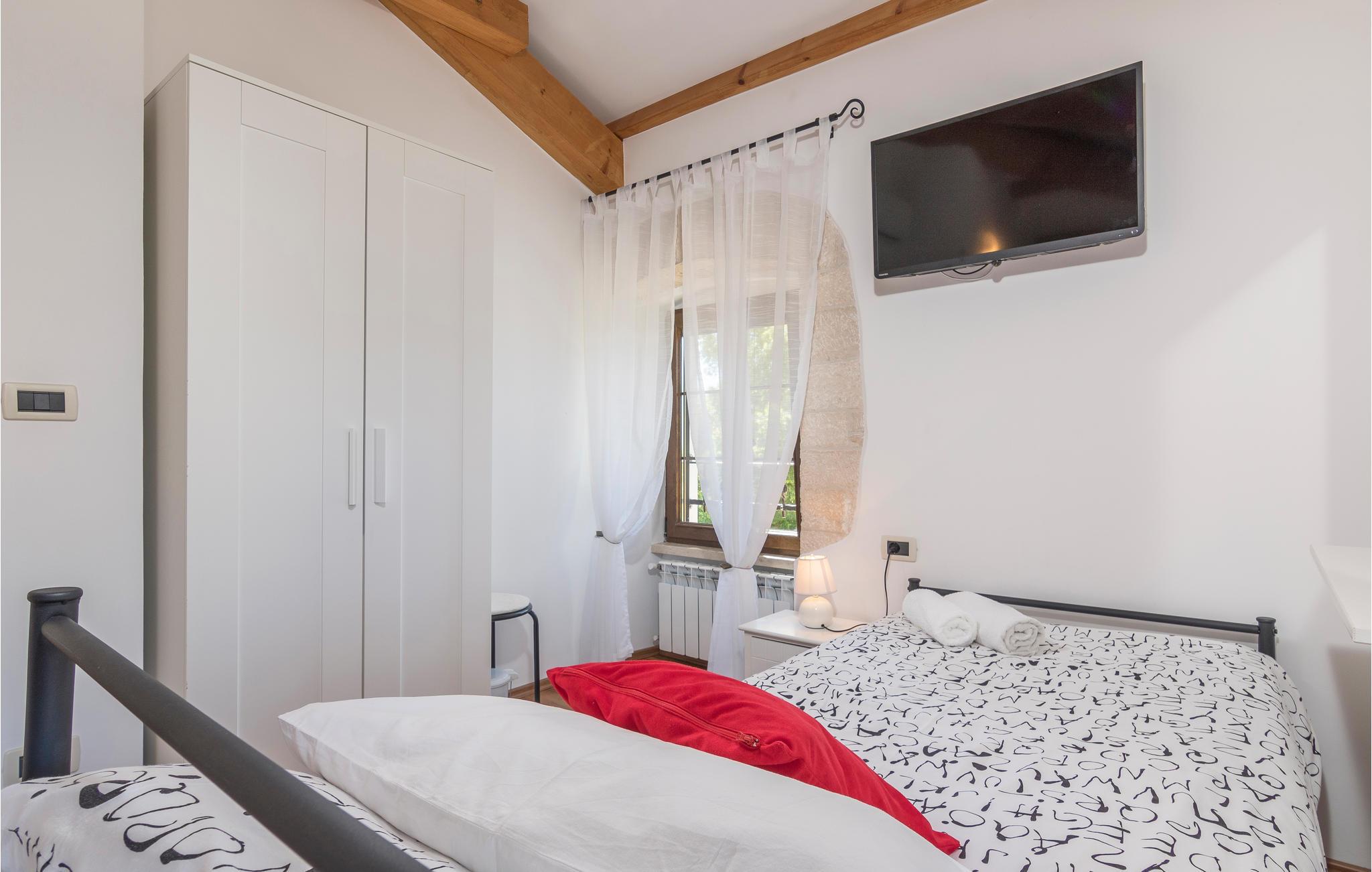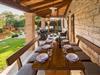 Dette skønne feriehus er gennemrenoveret med bevarelse af husets helt originale og unikke stil. Huset er både komfortabelt og har en skøn atmosfære. I stueplan er der et køkken med spisehjørne, et stort opholdsrum med kamin og et aktivitetsrum med billardbord. Indre trapper fører op til første sal med soveværelser og et legerum med PlayStation. Grunden er delt i to. Den mindste del er en overdækket parkeringsplads, mens dens største del er anlagt i flere planer, med pool og en stor overdækket terrasse. Til denne del af haven er der adgang fra stuen. Der er femten minutter i bil til Porec.
