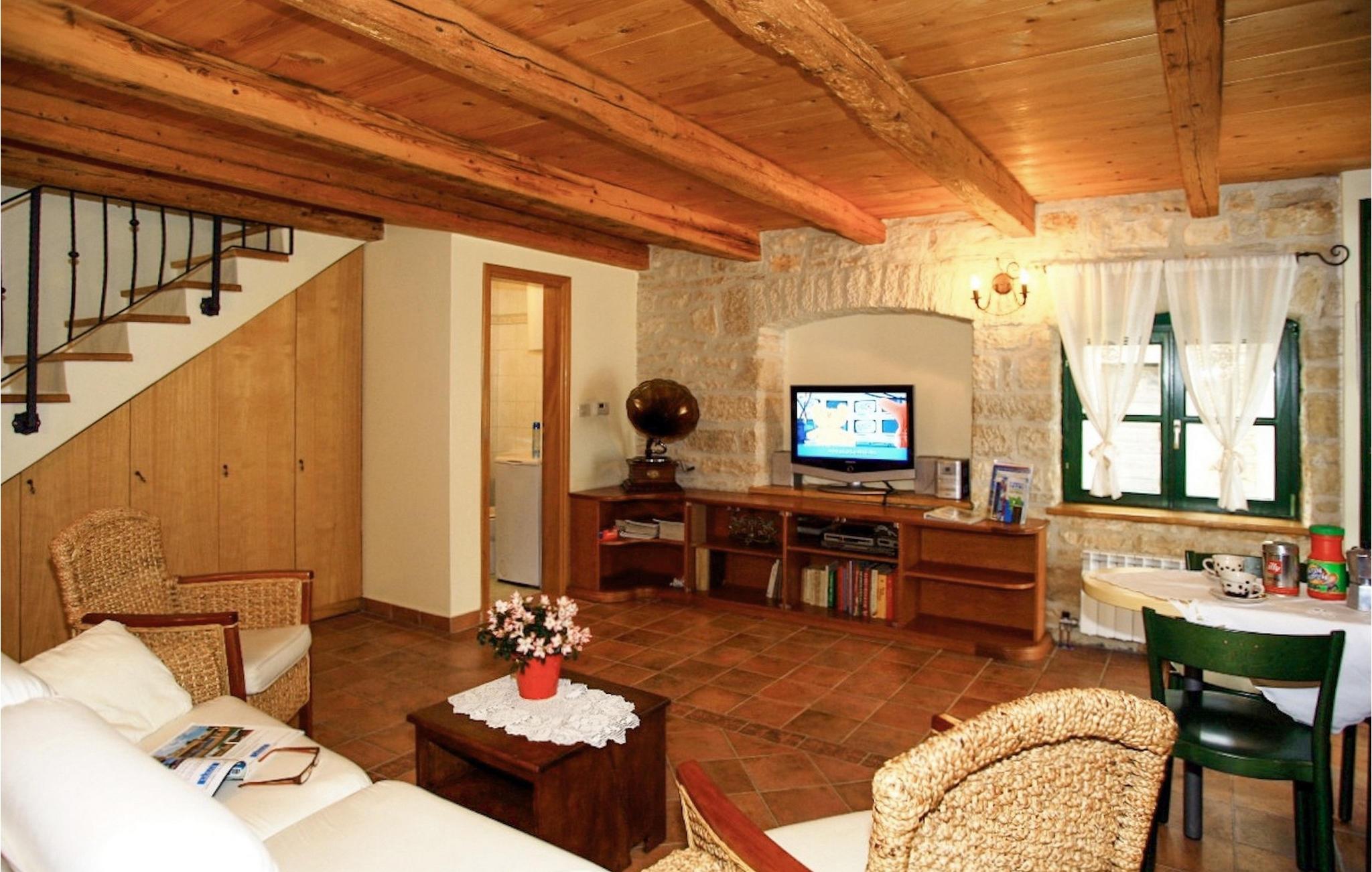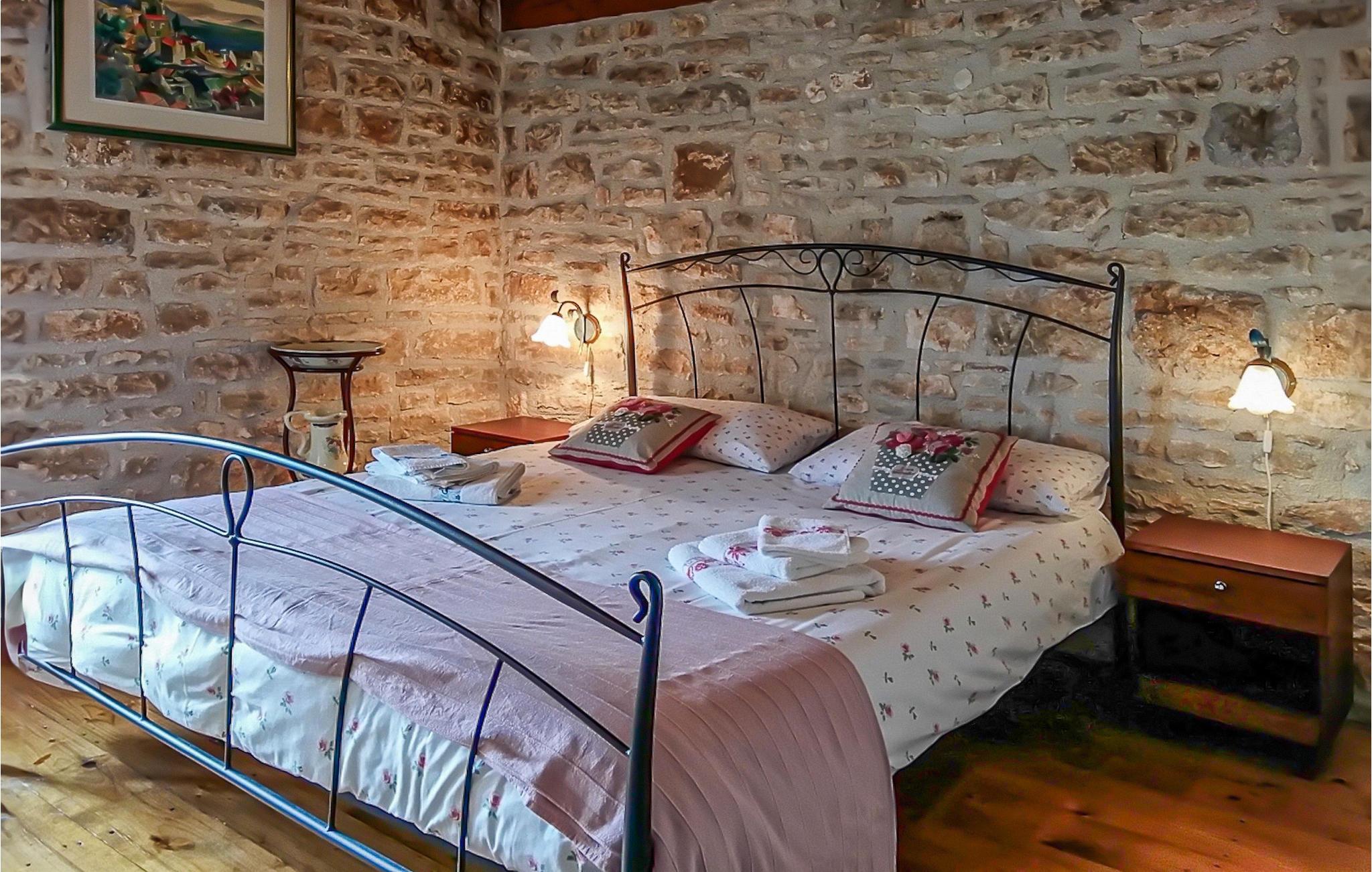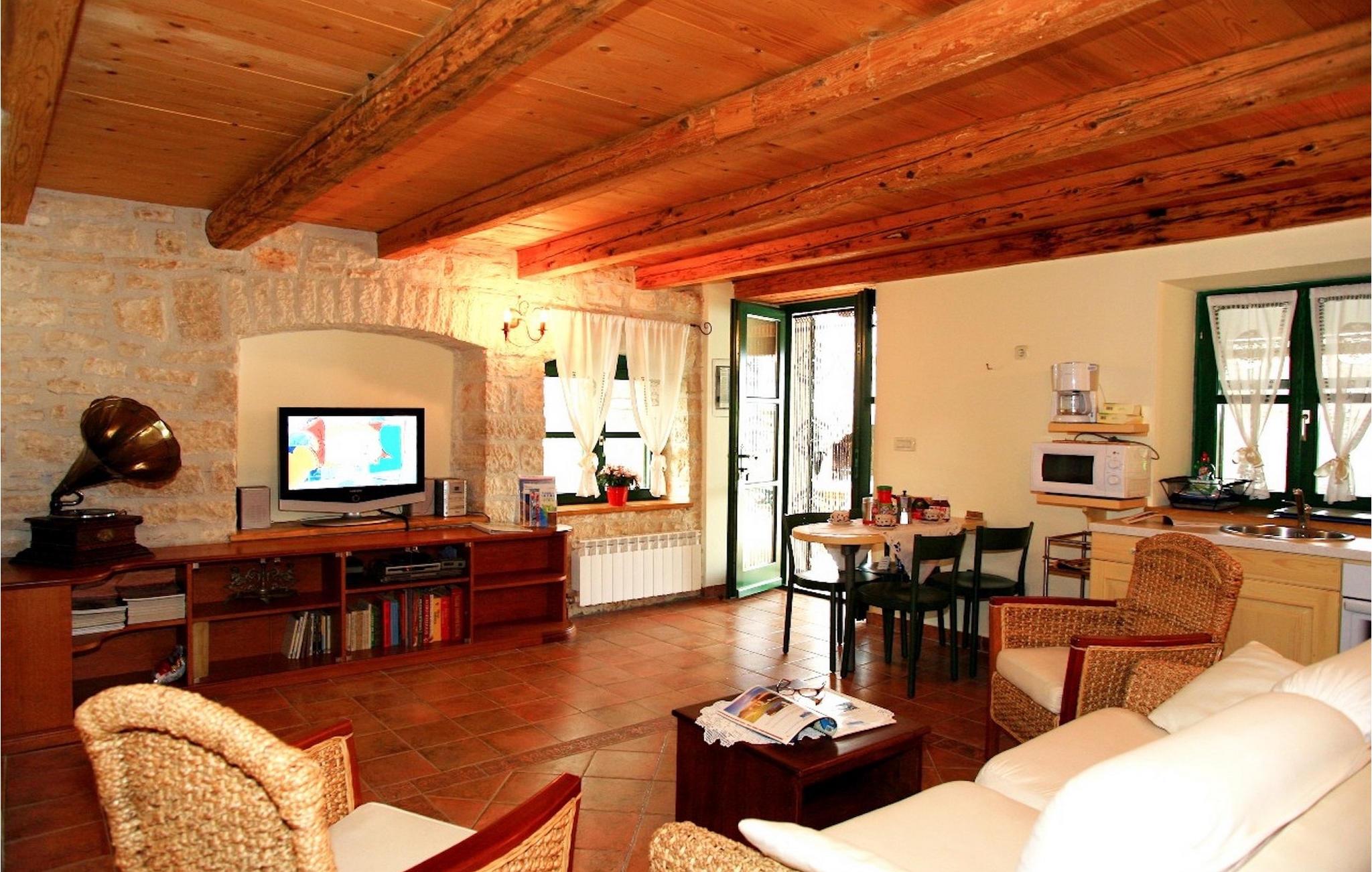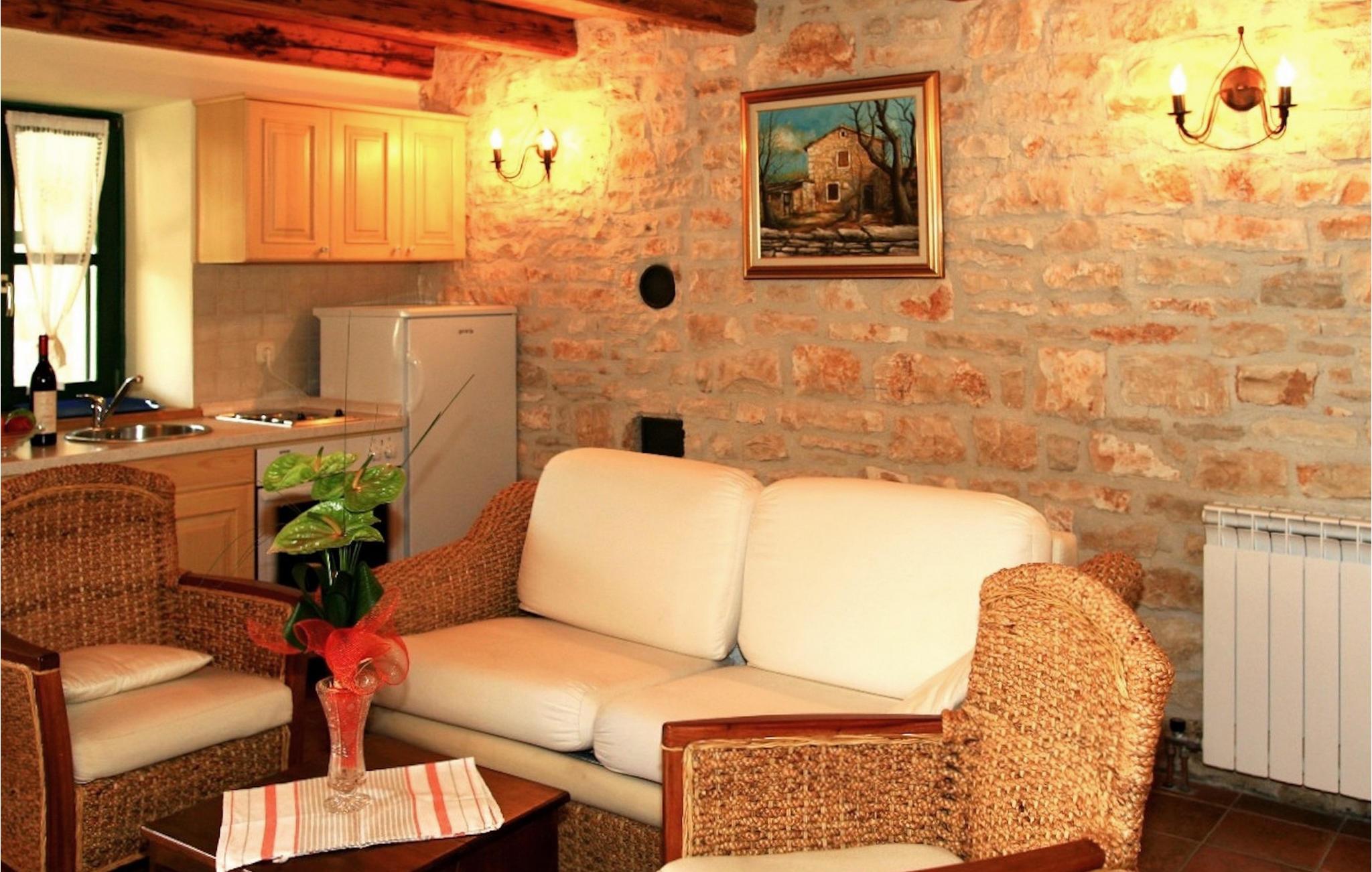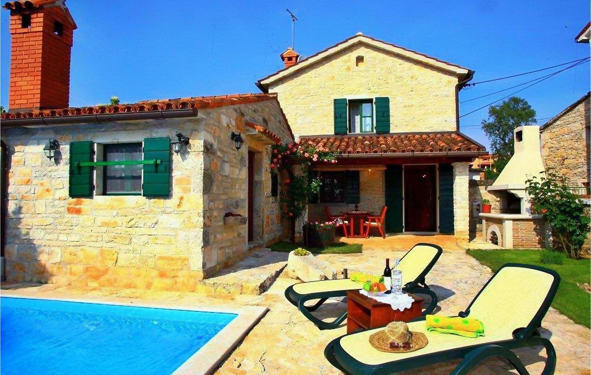 Villa Bassi er beliggende i en stille landsby i det centrale Istrien, men kun en kort køretur fra turistkystbyerne. Det kan rumme op til 3 voksne og 1 barn, hvilket gør det ideelt for familier. Ejendommen er fuldt indhegnet og tilbyder en privat pool med liggestole, som inviterer dig til at slappe af. En udendørs spiseplads og grill er også tilgængelig, hvor du kan tilberede lækre måltider og vise dine madlavningsevner. Stueetagen af villaen består af en åben planløsning med et fuldt udstyret køkken og spiseplads samt et toilet og en taverna med pejs. På første sal er der to hyggelige soveværelser og et badeværelse. Et soveværelse har en dobbeltseng, mens et soveværelse har en større enkeltseng. I stuen er også en sovesofa velegnet til et lille barn. Villaen har 2 klimaanlæg, internetadgang og en parkeringsplads til 2 biler. Lad dig fortrylle af den istriske charme ved Villa Bassi og nyd en fredelig og afslappende ferie.Villa Bassi ligger i den rolige landsby Jakovici i det centrale Istrien, som er det perfekte tilflugtssted fra stressende hverdag såvel som fra de overfyldte turistbyer. Kystbyerne såsom Porec og Rovinj er kun en kort køretur væk. Der vil du finde et udvalg af caféer, barer og restauranter. Smag på lækker middelhavskøkken, som tilbydes i restauranterne. Slap af på de smukke strande og dyk ned i det krystalklare vand. "Kunstnernes by" Groznjan ligger på en bakke og byder på en fantastisk udsigt over det idylliske landskab. Der arrangeres adskillige film- og musikfestivaler. Oplev det smukke istriske landskab ved at vandre eller cykle. Vi anbefaler også at besøge de middelalderlige bakketopbyer Motovun og Groznjan. Besøg amfiteatret i Pula eller nationalparken Brijuni. Istrien byder virkelig på alt, hvad man kan ønske sig til en spændende, men samtidig afslappende ferie.