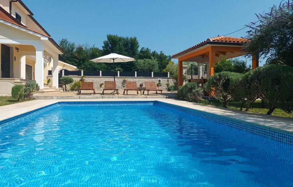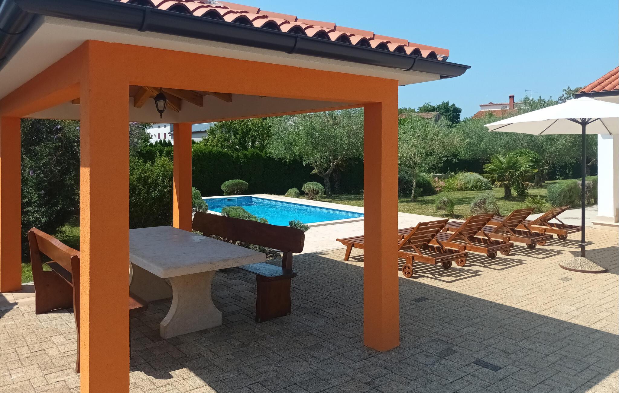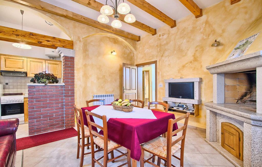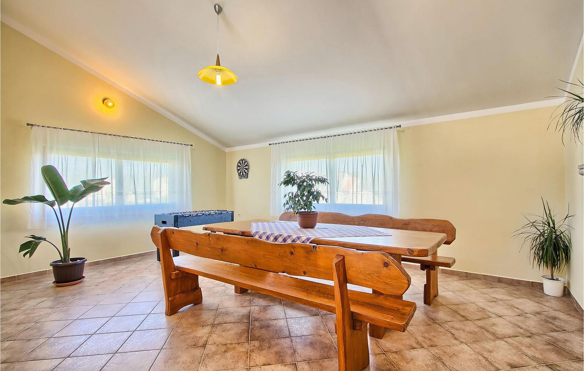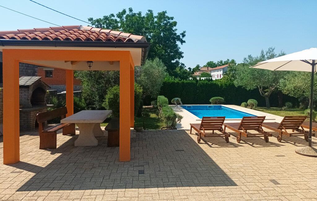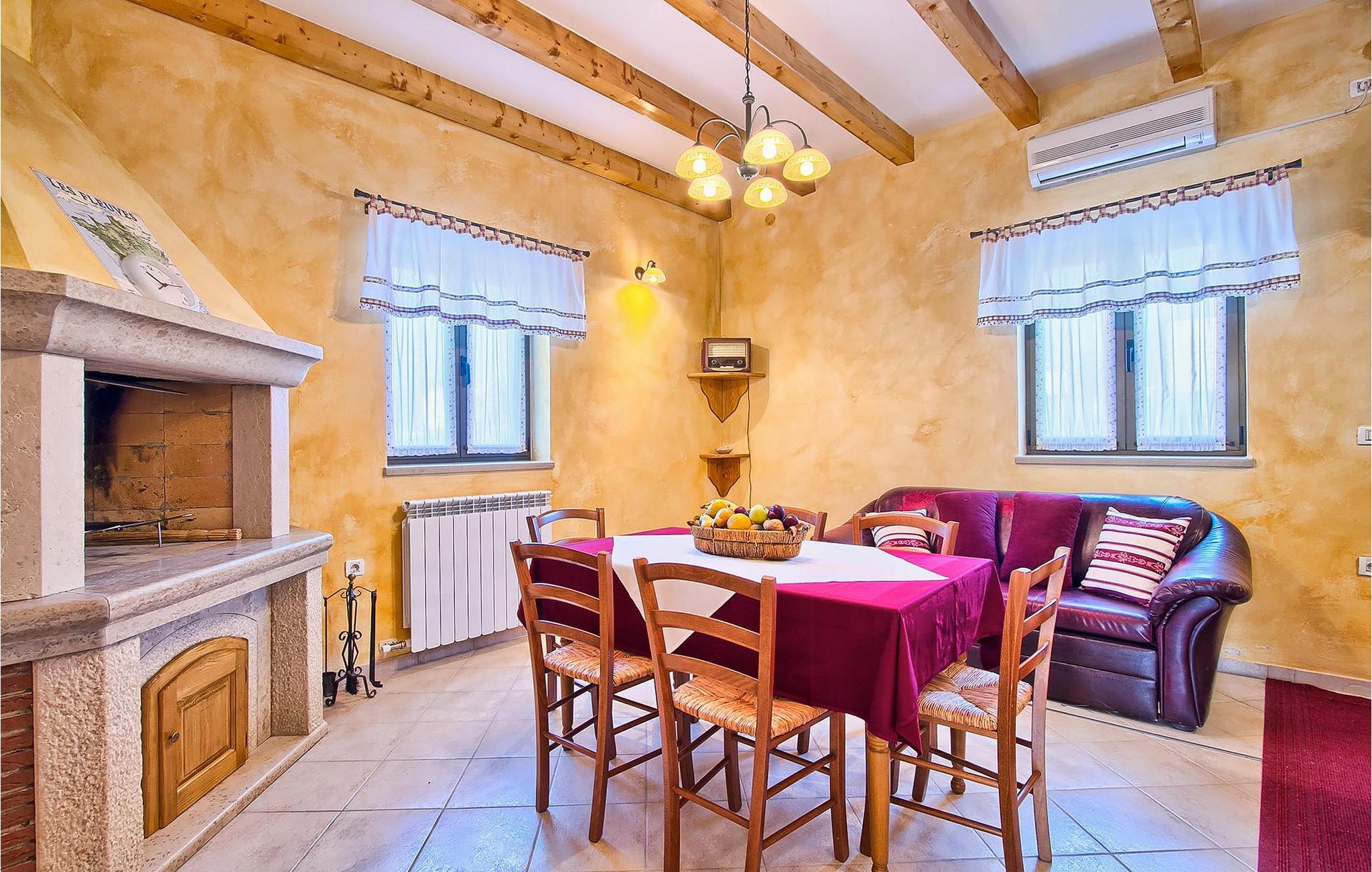 Den smukke familievilla Klaudio ligger i en lille landsby midt i Istrien. Så snart du træder ind på ejendommen, vil du bemærke den store swimmingpool, som kommer perfekt til at køle af på de varme sommerdage. En stor, velholdt have omgiver huset og byder på mere end nok plads til, at hele familien kan lege. Tilbring glade grillaftener med familie og venner ved det udendørs spisebord og nyd den stressfrie tid sammen. Det indre af Villa Klaudio byder dig velkommen med sin varme, hjemlige atmosfære. Træbjælker og pejs giver det fuldt udstyrede køkken med spiseplads hygge. Køkkenet ligger på 1. sal i forbindelse med den charmerende stue. På denne etage finder du også tre soveværelser med dobbeltseng, et badeværelse og et separat toilet samt en lukket terrasse med et træ-spisebord og bordfodbold. I villaens stueetage er et værtshus med et lille køkken og en grill til din rådighed, samt et soveværelse med tre senge, et badeværelse og et separat toilet. Villa Klaudio tilbyder plads nok til op til 8+2 personer, der gerne vil tilbringe en afslappende ferie. Udover gyngen til de yngste gæster giver bordfodbold og dart det nødvendige tidsfordriv. De firbenede familiemedlemmer er også meget velkomne her. Book Villa Klaudio for en uforglemmelig ferie med hele familien! Den smukke Klaudio familievilla ligger i den lille landsby Muntilj, tæt på middelalderbyen Tinjan. Tinjan er en lille malerisk by, kendt for sine historiske huse og adskillige familietaverner. Gå en tur gennem byens små gader eller nyd den smukke udsigt over toppene af de grønne bakker. Vi anbefaler dig at prøve traditionelle istriske retter som Fuzi med trøfler, Pljukanci eller en af de bedste prosciutto i verden. Tinjan og dens omgivelser er berømte for deres traditionelle skinkeproduktion. Gå ikke glip af at besøge byerne ved kysten som Porec, Rovinj, Pula og Opatija. Er du naturelsker, så besøg Brijuni National Park, hvor du kan nyde de smukke strande eller gå en tur rundt på øen, hvor den zoologiske have ligger. Villa Klaudio er beliggende i en ideel beliggenhed, hvorfra du nemt kan nå helt naturlige skønheder og seværdigheder.