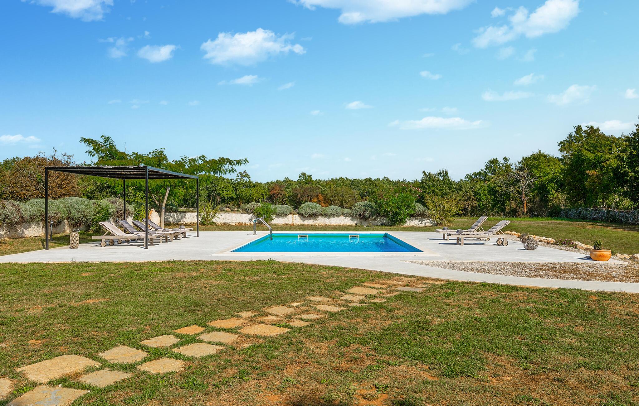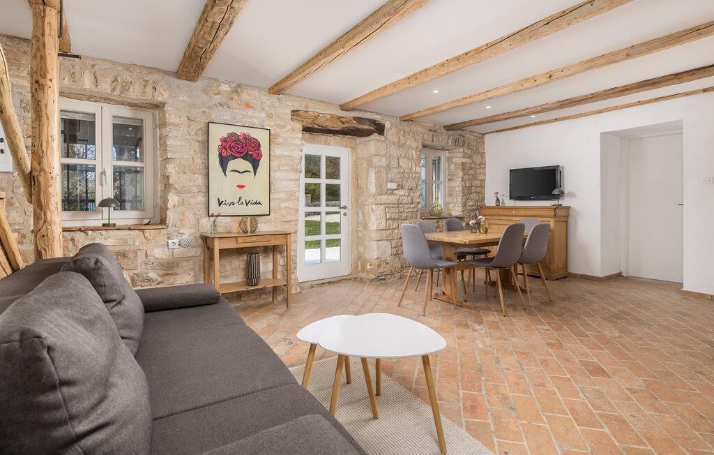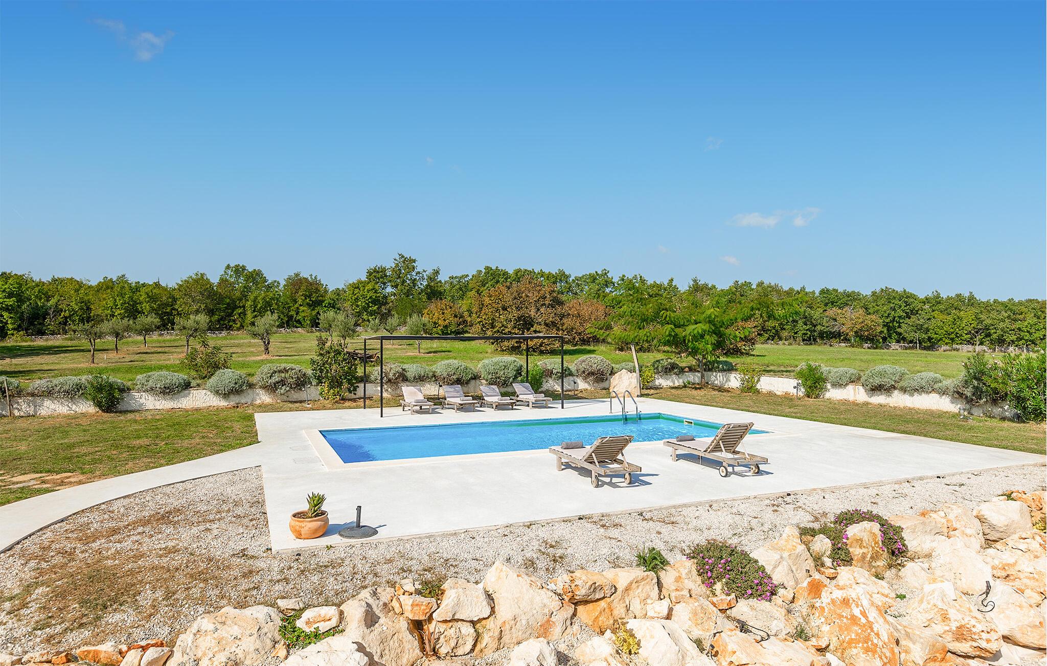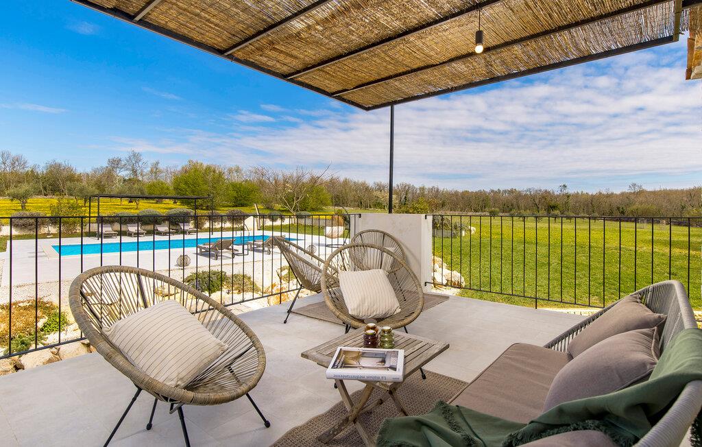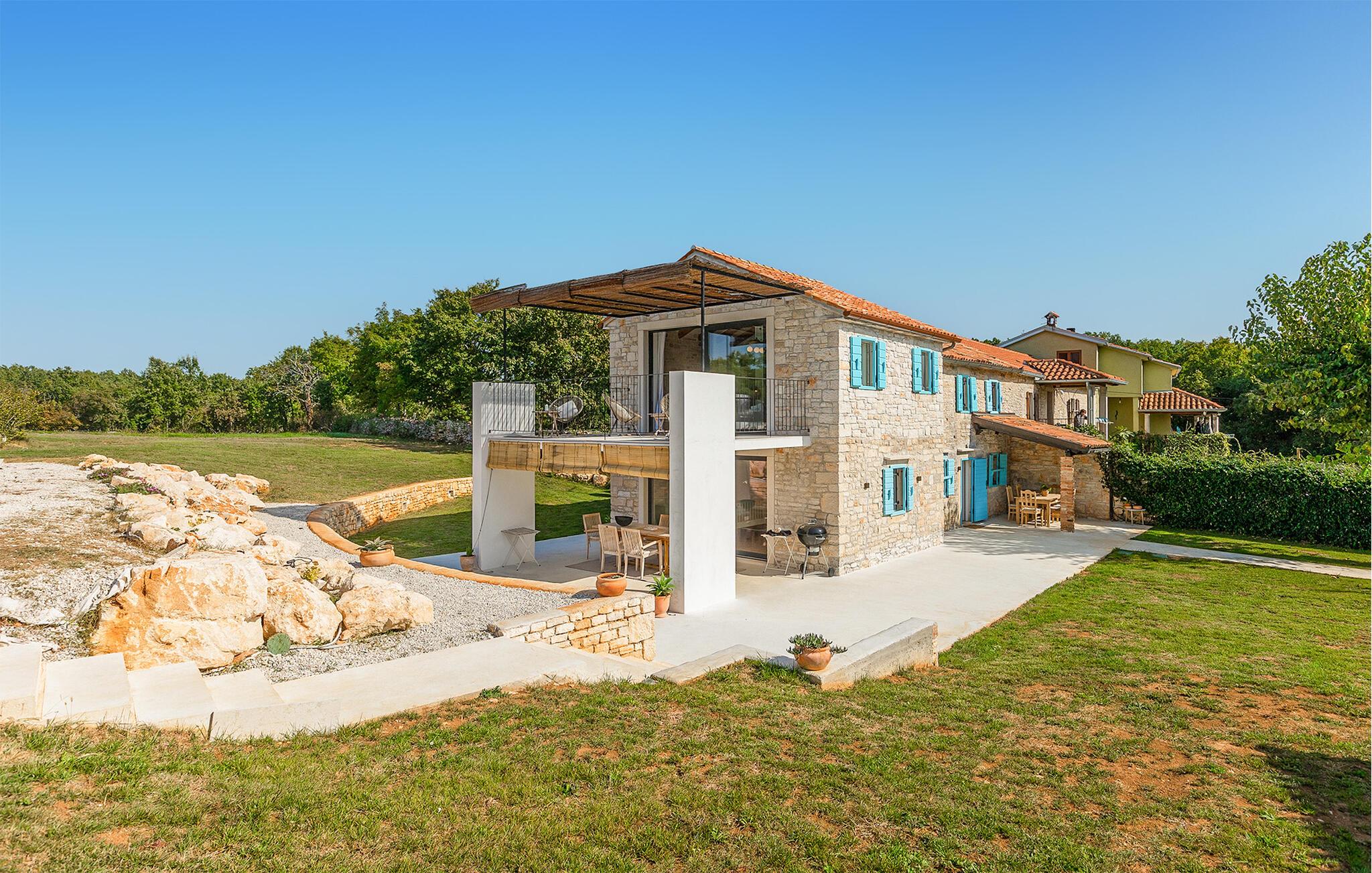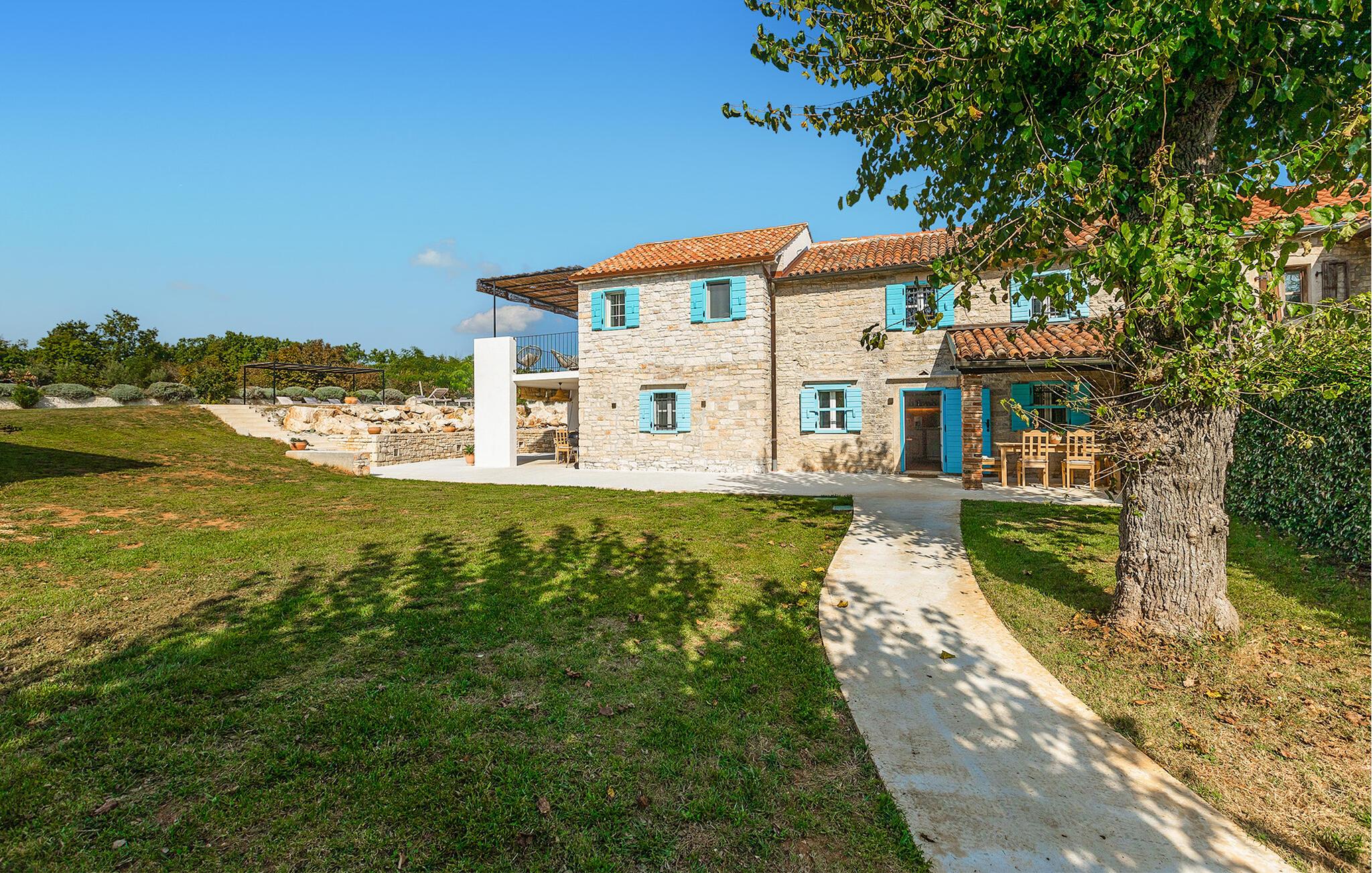 Dette smukt restaurerede traditionelle gamle stenhus, kombineret med moderne stilopgraderinger, ligger på en stor grund med enge og skove rundt omkring. Placeringen er absolut fredelig og afslappende, så du vil kun høre fugle synge. Det eneste, der bryder den afslappende grønne atmosfære, er den smukke og store blå swimmingpool, med sine 50m2. Solsenge og parasoller er der for din tid ude ved poolen, mens dine børn leger og har det sjovt. Det rummelige område omkring poolen giver dig mulighed for at føle dig godt tilpas og nyde udendørslivet. Den overdækkede terrasse har et spisebord, så I kan nyde lækre måltider udenfor. Den omhyggeligt restaurerede Villa Natura med sine stenvægge og trælofter har en masse karakter. I stueetagen vil villaen byde dig velkommen med en åben stue med køkken og spisebord til op til 6 gæster. Der er et hyggeligt lyst soveværelse i samme etage. Trætrapper fører til den øverste etage, som har yderligere 2 soveværelser med dobbeltsenge. Et af soveværelserne har eget badeværelse for din komfort. Der er yderligere et lækkert badeværelse med bruser på denne etage samt separat toilet. Den moderne overdækkede terrasse på første sal byder på en vidunderlig udsigt over marken og dens fantastiske oliventræer. Derudover har værelset i stueetagen og det øverste værelse med terrasse meget store glasvægge, som tilfører naturligt lys og følelsen af at bringe det ydre ind. Om aftenen er det rart at nyde de smukke oplyste omgivelser under det magiske stjernehimmel. Med Villa Natura er du midt i naturen, men ikke for langt væk fra den næste større by - den nærmeste kystby er Porec - kun 20 minutters kørsel. BEMÆRK: Nye billeder kommer til foråret :) Istrien er virkelig en fryd for øjet. Dens vandløb strømmer til havet gennem dybe dale og kløfter, som leder tankerne hen på de gamle lokale myter om kæmper. Bølgende bakker har udsigt over markerne og dalene med små byer oppe på toppene, der minder om nogle gamle malerier. Dette stenhus ligger uden for en lille landsby i Istrien, det er helt stille og afslappende, men alligevel er det travle turistcenter i Porec og strandene kun en kort køretur væk. I Pula og Trieste finder du internationale lufthavne (Ryanair, FlyGlobespan, Thomson, Norwegian Air Shuttle, Tuifly, German Wings, Sterling, Wizzair og mange russiske charterflyvninger). Turistbyen Porec ligger 15 minutter væk, og Rovinj og Pula og andre højdepunkter er kun en kort køretur væk. Kun 15 minutter væk fra ejendommen kan du finde de nærmeste strande med en masse rolige steder at slappe af.