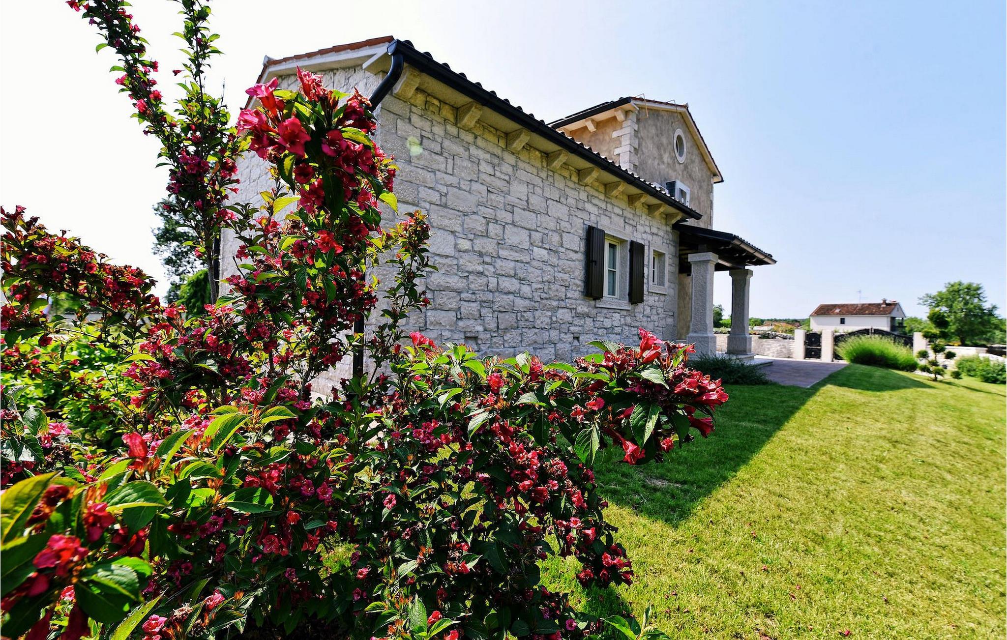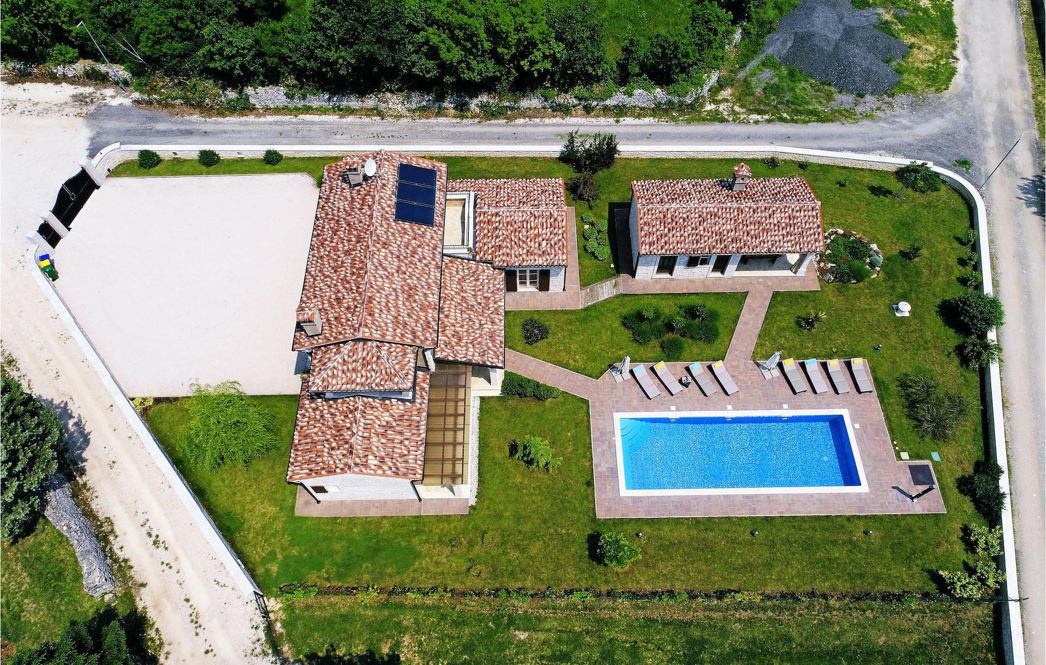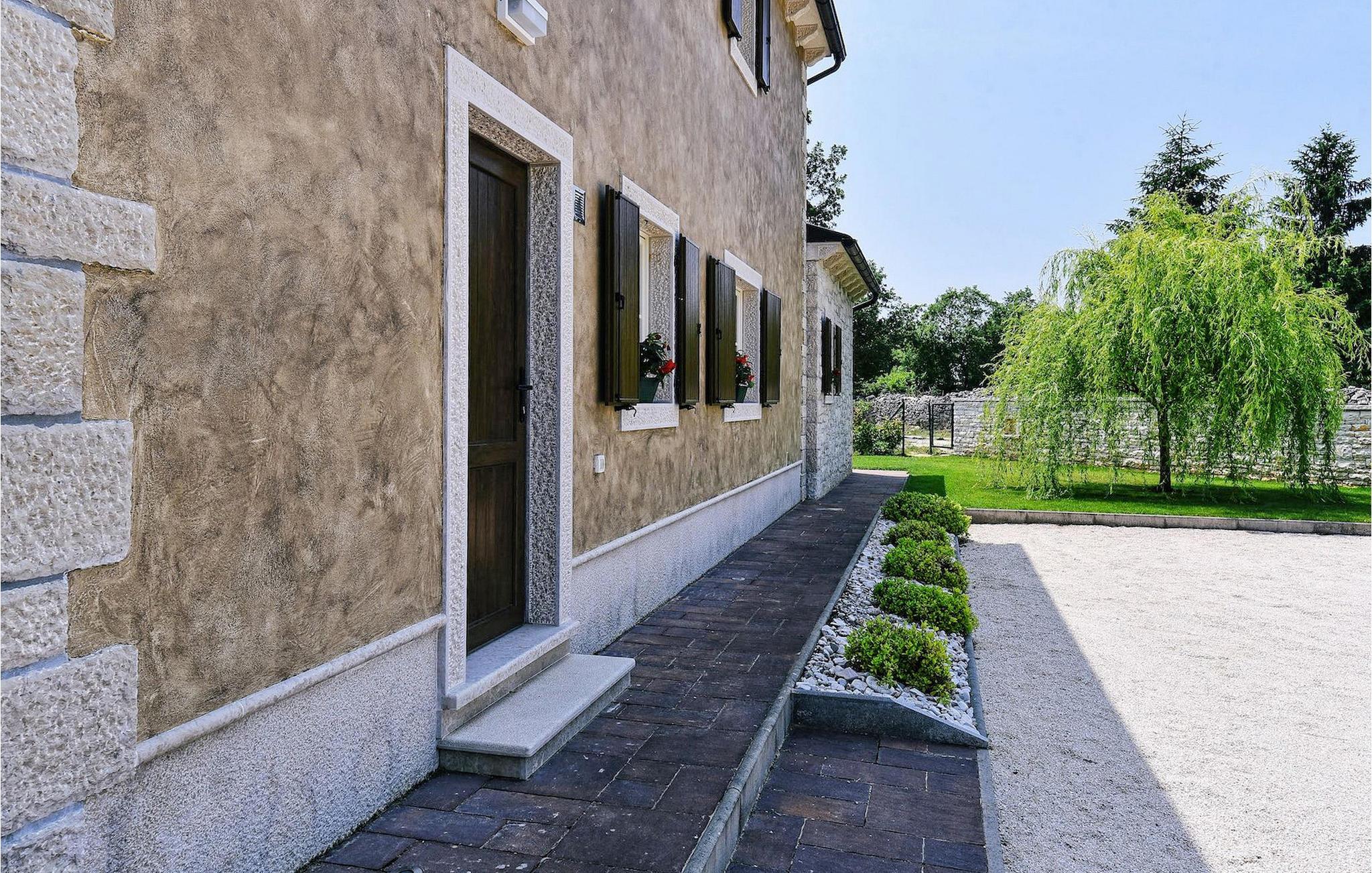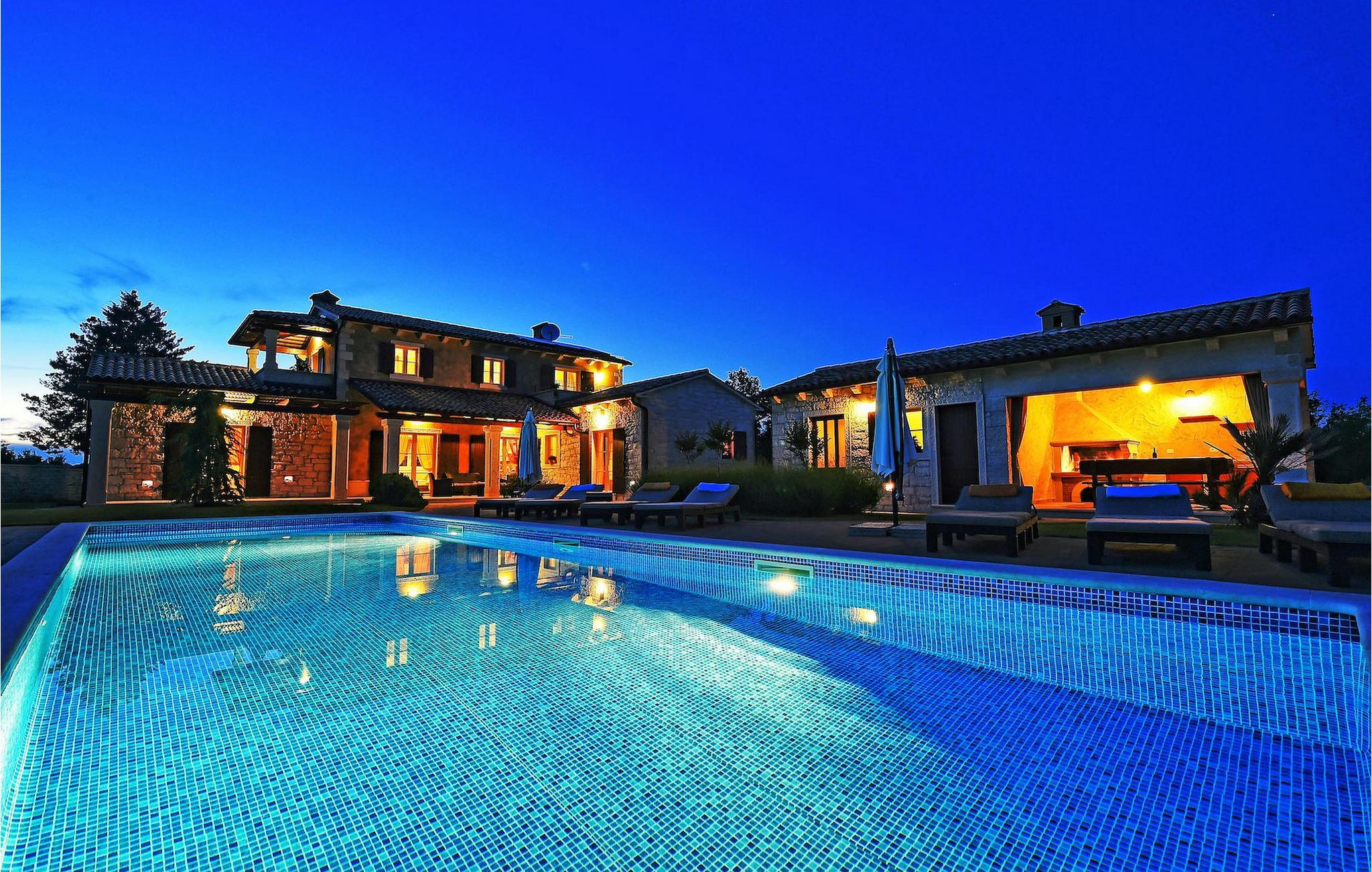 Denne nybyggede villa ligger i udkanten af en lille landsby i Istrien. Den tilbyder fred og ro, men er kun få minutters kørsel fra strandene og turistattraktioner. I stueetagen er der en stor stue og to soveværelser med eget badeværelse. På øverste etage er der yderligere to soveværelser med eget badeværelse. Udenfor er der en stor privat pool, en overdækket spiseplads, liggestole og privat parkering. Denne villa med aircondition er omgivet af grønne enge og skove.