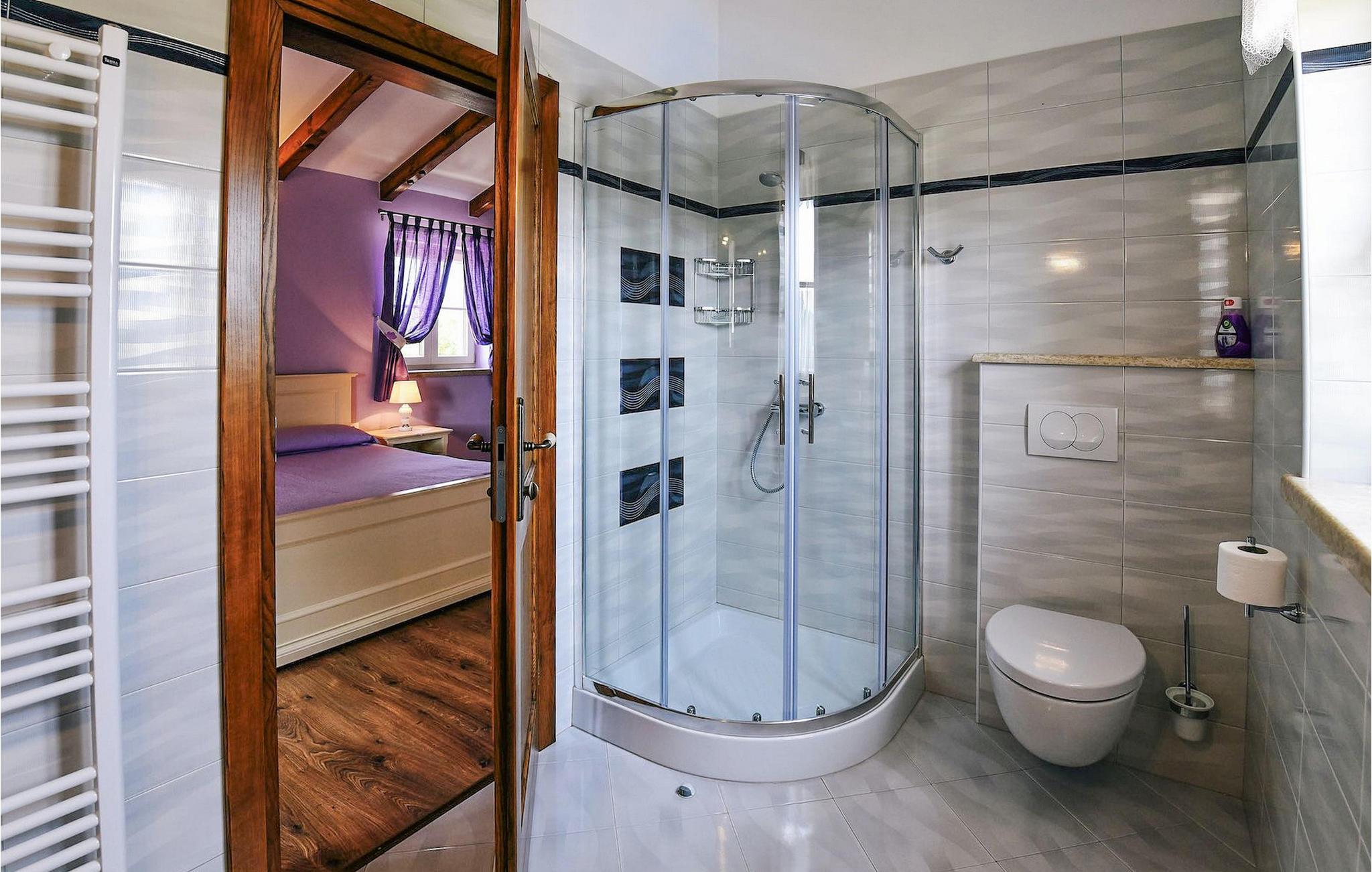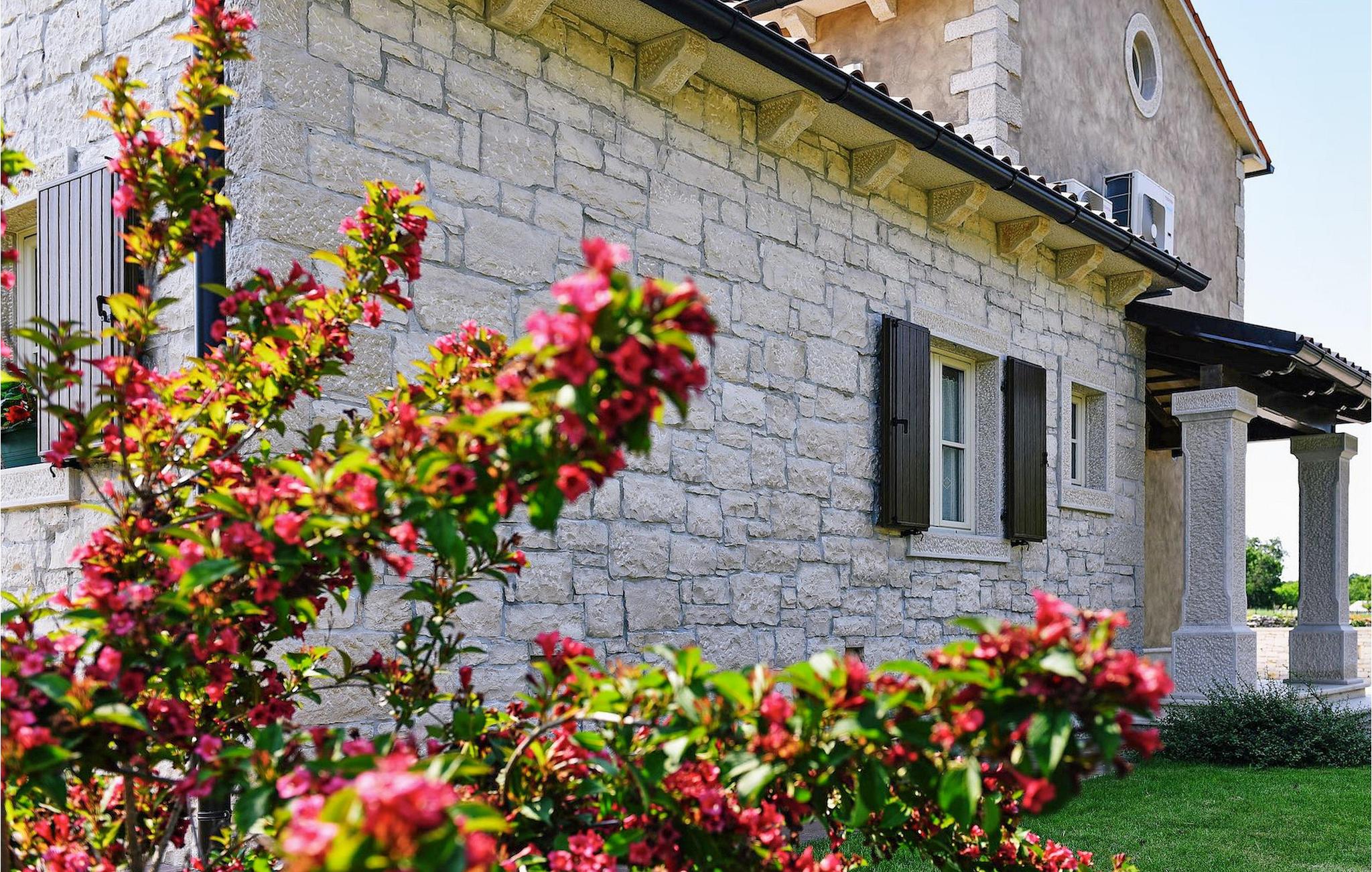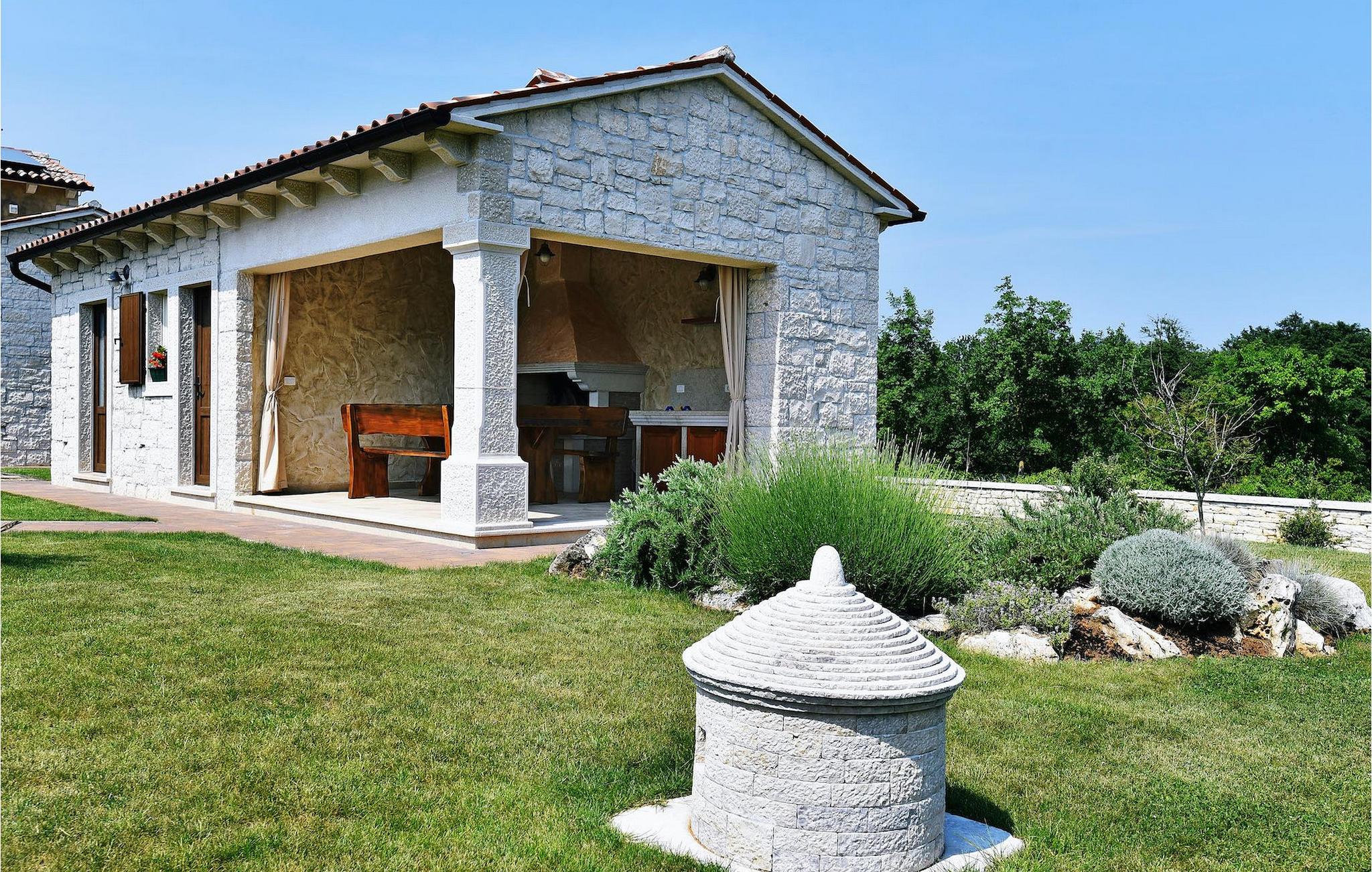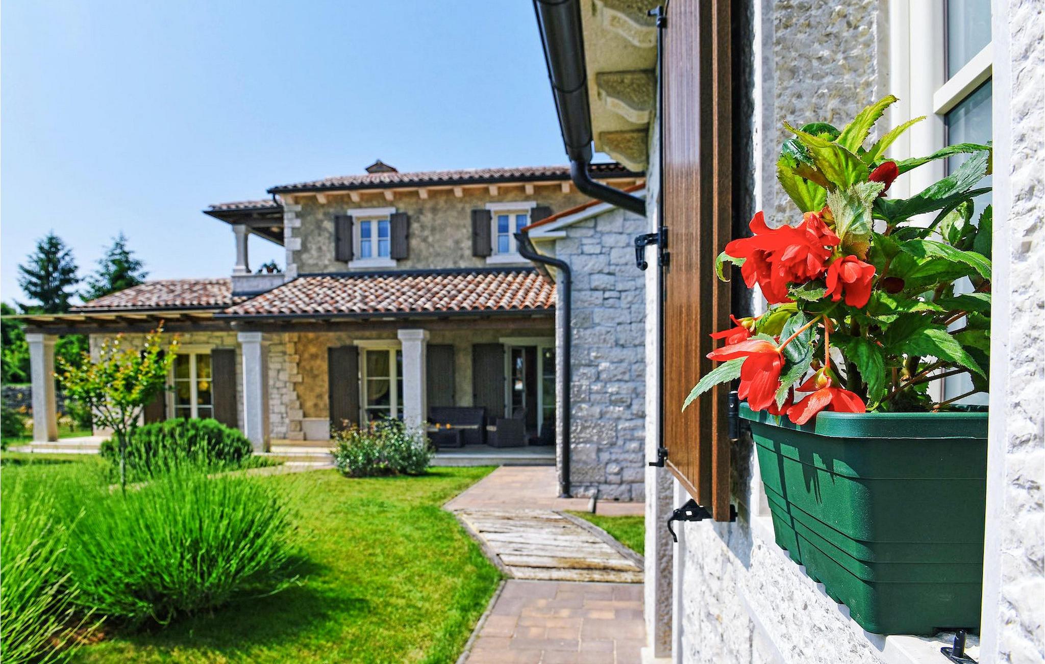 Denne nybyggede villa ligger i udkanten af en lille landsby i Istrien. Den tilbyder fred og ro, men er kun få minutters kørsel fra strandene og turistattraktioner. I stueetagen er der en stor stue og to soveværelser med eget badeværelse. På øverste etage er der yderligere to soveværelser med eget badeværelse. Udenfor er der en stor privat pool, en overdækket spiseplads, liggestole og privat parkering. Denne villa med aircondition er omgivet af grønne enge og skove.