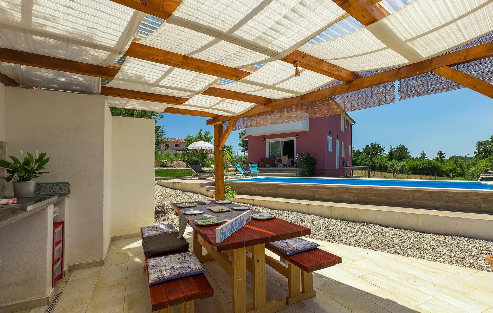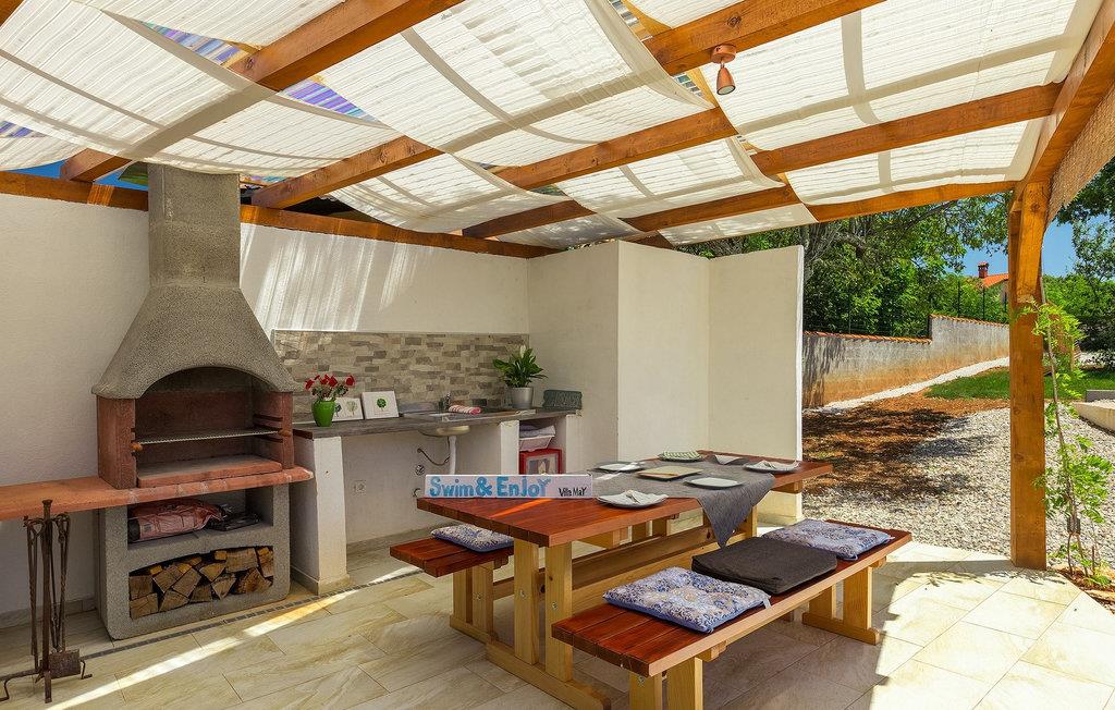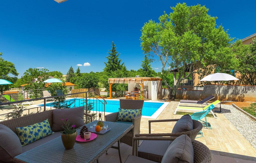 Villa May er en skøn ferievilla, bare perfekt til dovne familieferier. Det er beliggende nær den smukke by Porec, i en dejlig landsby. Villaen ligger på et stort stykke jord, hvor dine børn kan løbe frit rundt eller spille fodbold. Den udendørs pool kan være stedet at søge forfriskning på sådanne aktive sommerdage. Villaen kan rumme op til 9 gæster fordelt på 4 soveværelser. I stueetagen finder du et toilet, en stue/spisestue og et soveværelse med badeværelse. På første sal er 3 soveværelser, 2 badeværelser og et vaskerum. Der er rigeligt med plads i interiøret, men helt sikkert vil du tilbringe det meste af tiden udenfor, i al-fresco spisepladsen, hvor du kan tilberede lækre sommerretter på kulgrillen, mens du vil høre fuglene, der lever i træerne .
