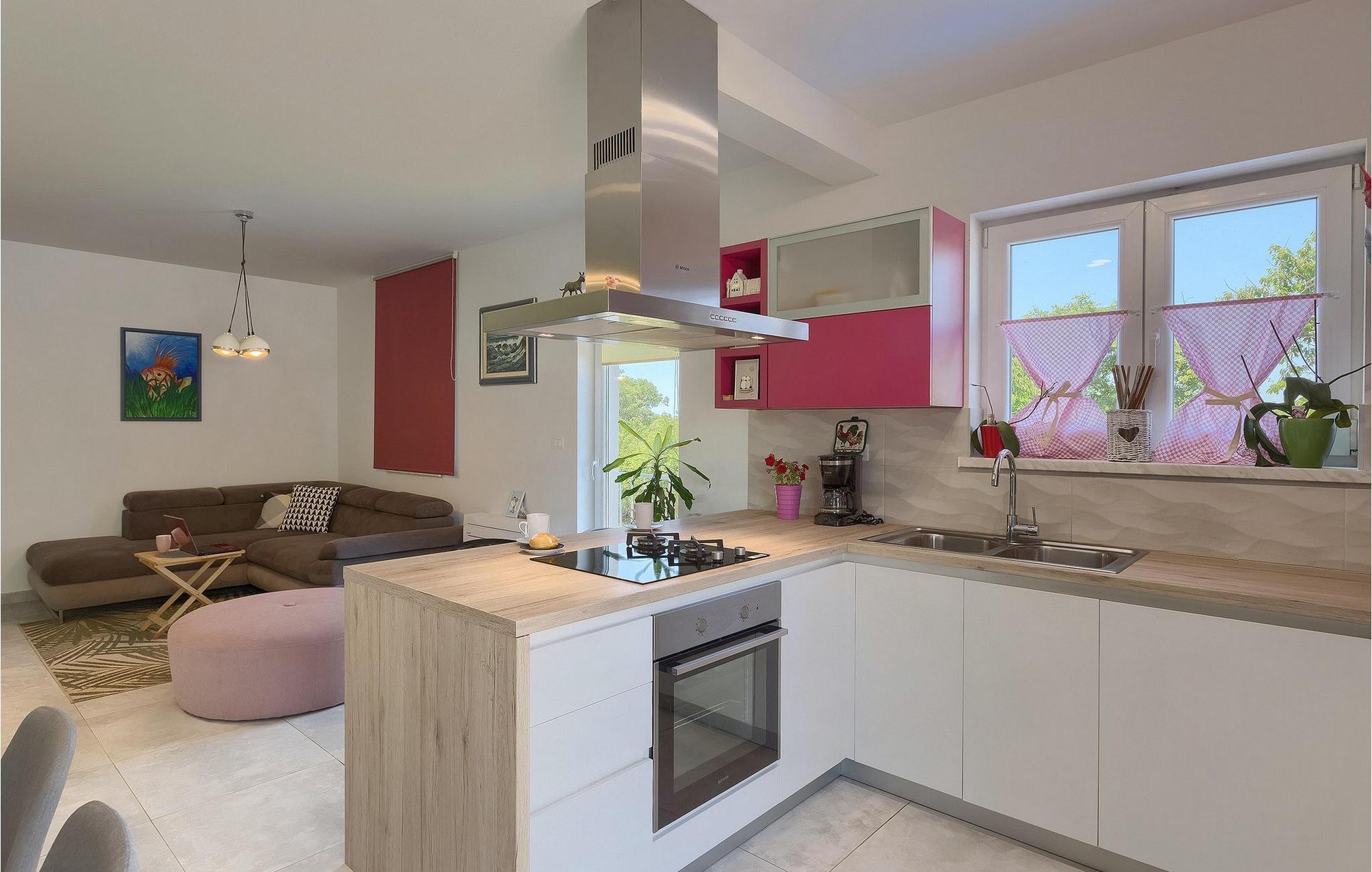 Villaejerne tilbyder også levering af brød og wienerbrød til villaen, så du kan få frisk brød i villaen hver morgen uden selv at forlade huset. Bare slap af, det er din ferie! Denne villa er beliggende i et fredeligt landskab i Istrien, hvilket gør det til et perfekt tilflugtssted fra det moderne livs jag. Det centrale Istrien med byer på bakketop og smukke landskab er ideel til at køre bil, cykle og gå. Strande og Istriens turist- og historiske centre er kun en kort køretur fra villaen. De nærmeste strande ligger i Porec, hvor turisme helt sikkert betyder mere end hav og sol. Turisterne kan sagtens genkende byen, der bevarer sine historiske værdier. Du kan finde museer, gallerier og mange værdifulde bypaladser. Hele den gamle bykerne er et levende kulturminde. Porecs gader er hjemsted for adskillige ateliergallerier og udstillingsrum, som har tendens til tradition på en moderne måde med deres udstillinger. En god måde at lære Istrien at kende på er gennem dens enestående gastronomi. Smagssymfonierne i istrisk mad kommer til at vække alle dine sanser. Istrien er et land med lækker mad, men den gastronomiske perle er uden tvivl trøflen.