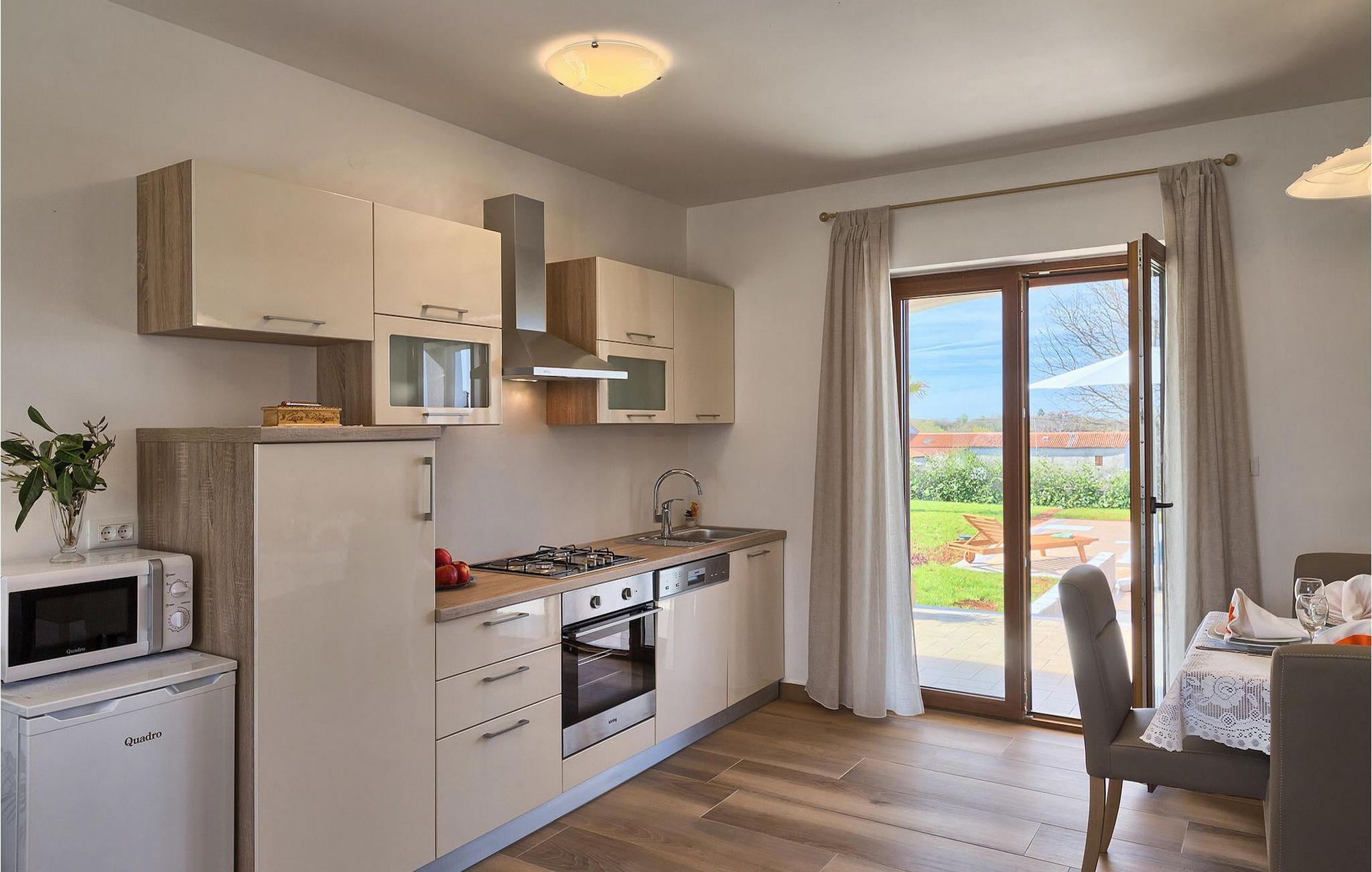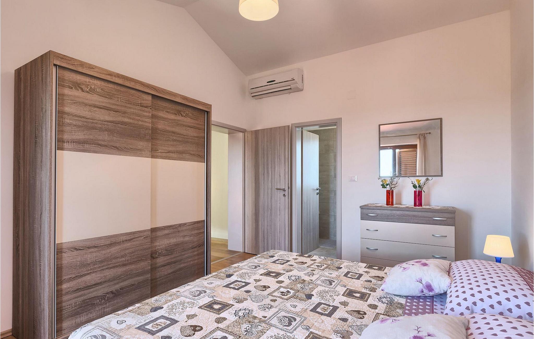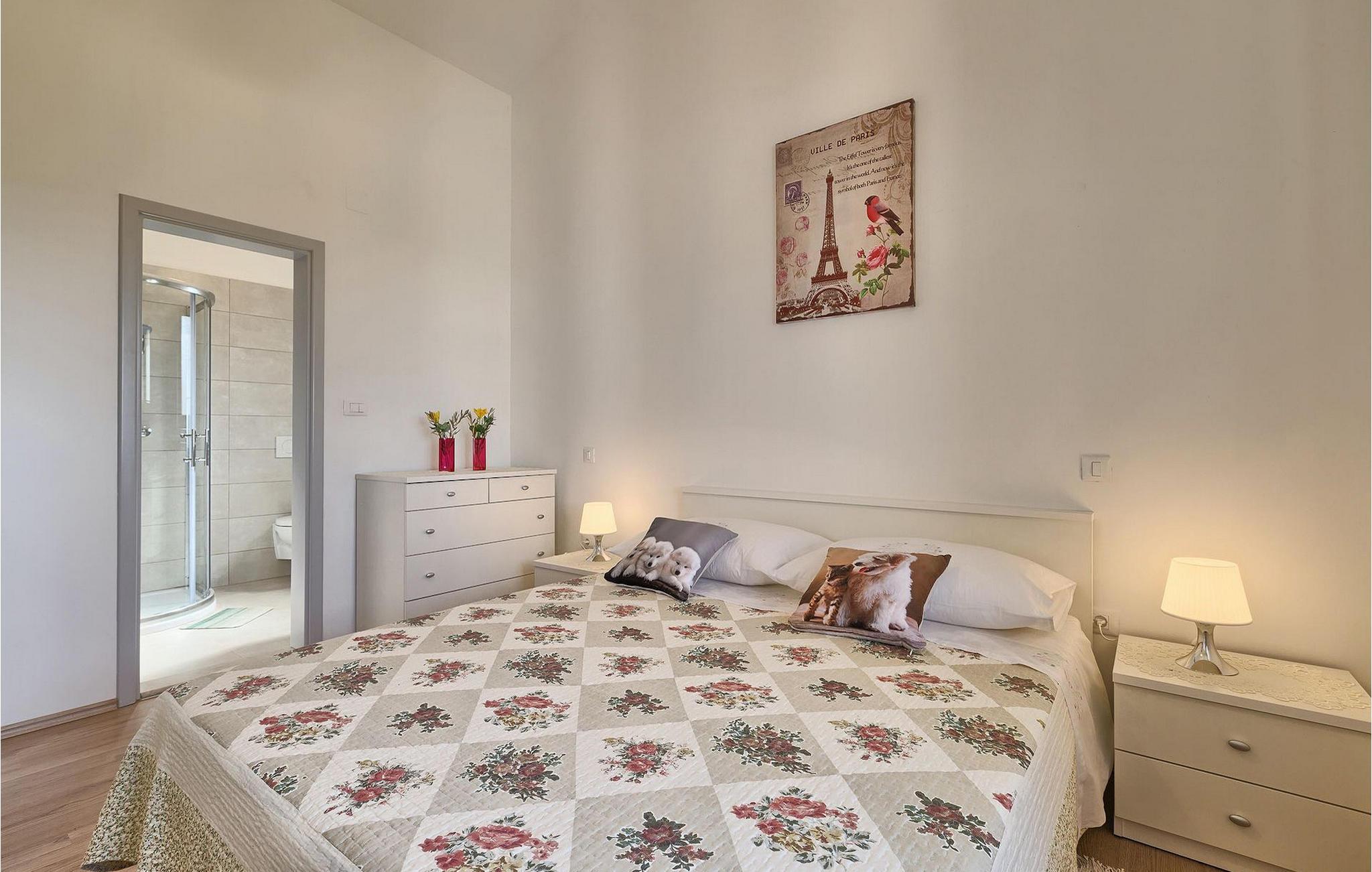 Bortset fra det lyse køkken med spiseplads, hvor du finder alt, hvad du måtte have brug for til at tilberede måltider under dit ophold, finder du i stueetagen stuen, et separat toilet og et soveværelse med eget badeværelse. Den øverste etage består af de andre 2 soveværelser med ensuite badeværelser. Alle værelser har aircondition og en dobbeltseng. I et af værelserne på øverste etage kan sengen adskilles til to enkeltsenge, hvis det er nødvendigt. Værelserne har adgang til balkonen, hvor du kan nyde udsigten over de rolige omgivelser i Istrien. Villaen er beliggende i en meget lille landsby i det centrale Istrien. Placeringen er perfekt for dem, der søger en afslappende ferie, men alligevel er alle steder i Istrien og Adriaterhavskysten let tilgængelige inden for en kort køretur. Du kan købe friske produkter direkte fra bønderne i landsbyen. Den typiske istriske lille by Tinjan ligger mindre end 5 km fra villaen. Midt i landlige byer og smukke landskaber er dette område ideelt for dem, der kan lide at cykle, cykle og vandre. Når det kommer til gastronomi, er Central Istrien berømt for jomfruolivenolie, prosciutto og Malvasia, som alle er elskede i hele landet. Hvis du vil besøge strandene, kan du nemt nå en af de forskellige strande på Istriens vestkyst, omkring den historiske by Porec og andre steder i nærheden. En dagstur til Brijuni nationalpark, at besøge Lim-bugten eller byen Porec er altid en god idé.