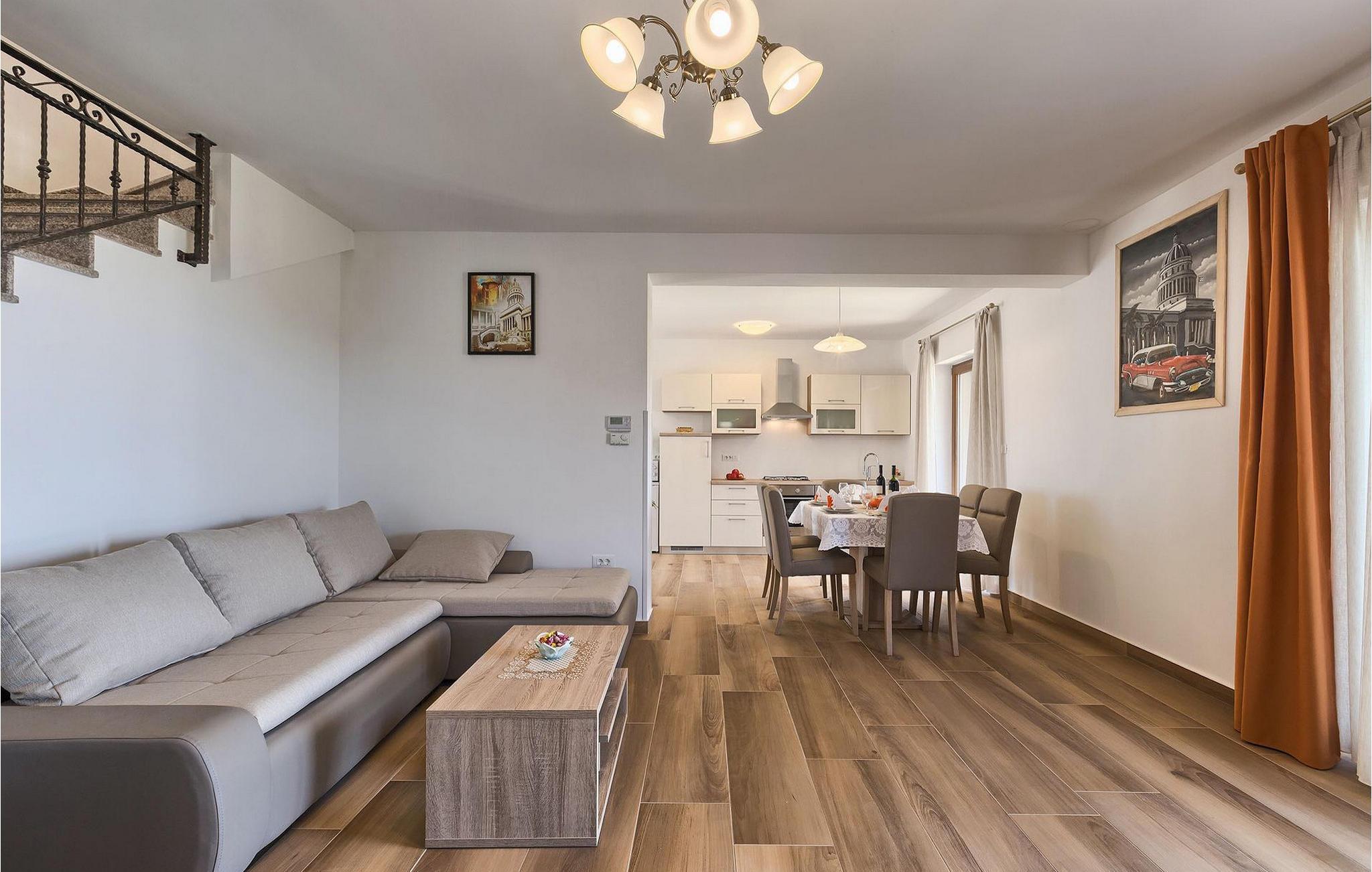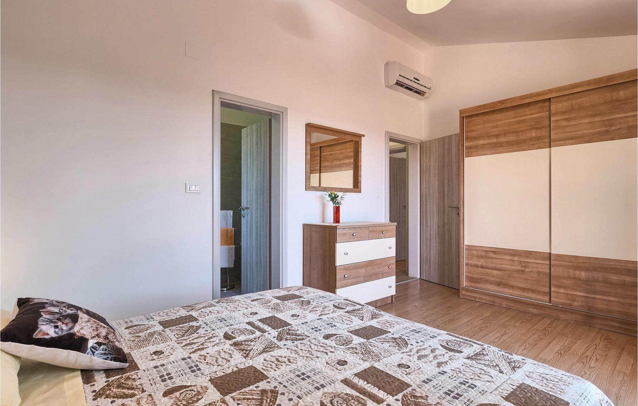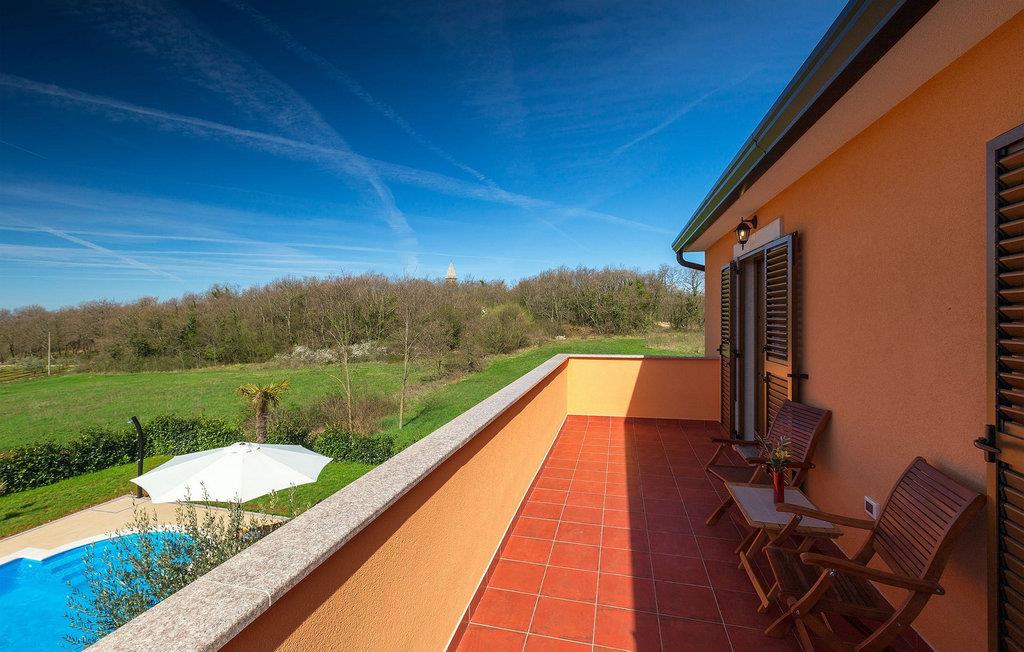 Bortset fra det lyse køkken med spiseplads, hvor du finder alt, hvad du måtte have brug for til at tilberede måltider under dit ophold, finder du i stueetagen stuen, et separat toilet og et soveværelse med eget badeværelse. Den øverste etage består af de andre 2 soveværelser med ensuite badeværelser. Alle værelser har aircondition og en dobbeltseng. I et af værelserne på øverste etage kan sengen adskilles til to enkeltsenge, hvis det er nødvendigt. Værelserne har adgang til balkonen, hvor du kan nyde udsigten over de rolige omgivelser i Istrien. Villaen er beliggende i en meget lille landsby i det centrale Istrien. Placeringen er perfekt for dem, der søger en afslappende ferie, men alligevel er alle steder i Istrien og Adriaterhavskysten let tilgængelige inden for en kort køretur. Du kan købe friske produkter direkte fra bønderne i landsbyen. Den typiske istriske lille by Tinjan ligger mindre end 5 km fra villaen. Midt i landlige byer og smukke landskaber er dette område ideelt for dem, der kan lide at cykle, cykle og vandre. Når det kommer til gastronomi, er Central Istrien berømt for jomfruolivenolie, prosciutto og Malvasia, som alle er elskede i hele landet. Hvis du vil besøge strandene, kan du nemt nå en af de forskellige strande på Istriens vestkyst, omkring den historiske by Porec og andre steder i nærheden. En dagstur til Brijuni nationalpark, at besøge Lim-bugten eller byen Porec er altid en god idé.