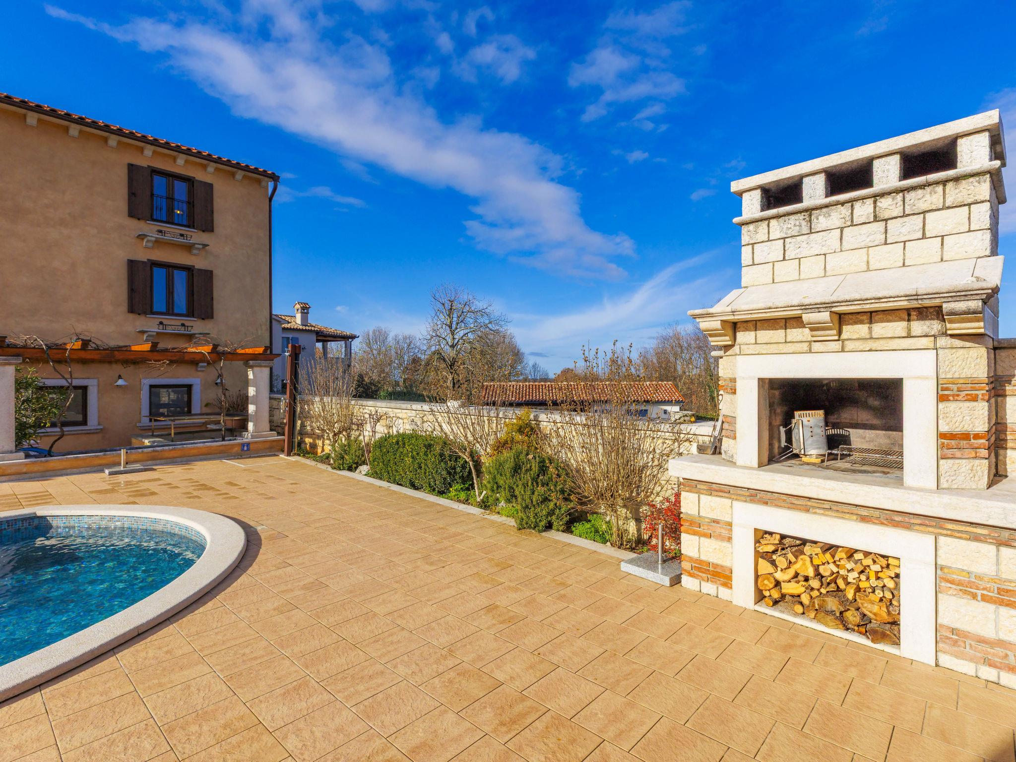Single-family house "Villa Christina", 3 storeys. 5 km from the centre of Tinjan, 19 km from the centre of Porec, in a quiet, sunny position, 19 km from the sea. Private: property 400 m2 (fenced), swimming pool (24 m2, depth 135 cm, seasonal availability: 01.Apr. - 01.Nov.) with internal staircase. Unconventional pool shape. Outdoor shower, hot tub, table tennis, terrace (20 m2), garden furniture, barbecue, pool maintenance by the owner/gardener. In the house: internet access, sauna, trampoline, washing machine, tumble dryer, bicycles available. Parking (for 2 cars) at the house on the premises, single garage. Shop 2.1 km, supermarket 12 km, restaurant 2 km, bus stop 300 m, sandy beach 20 km pebble beach 20 km, rocky beach 20 km, concrete beach 20 km. Walking paths from the house 200 m, cycle lane 250 m, children's playground 20 m. The owner does not accept any youth groups. Private: tavern with kitchen, terrace furniture and fireplace.