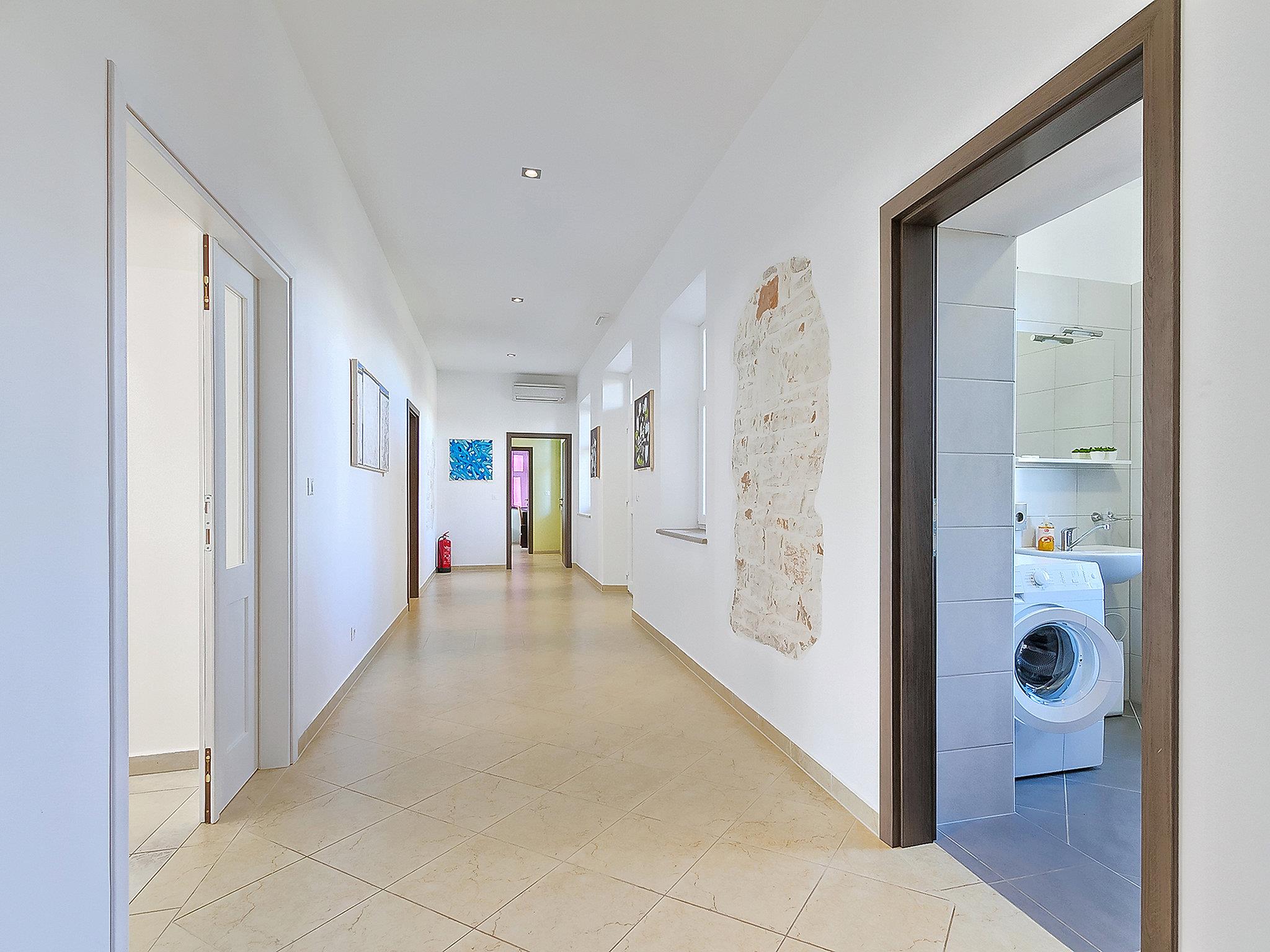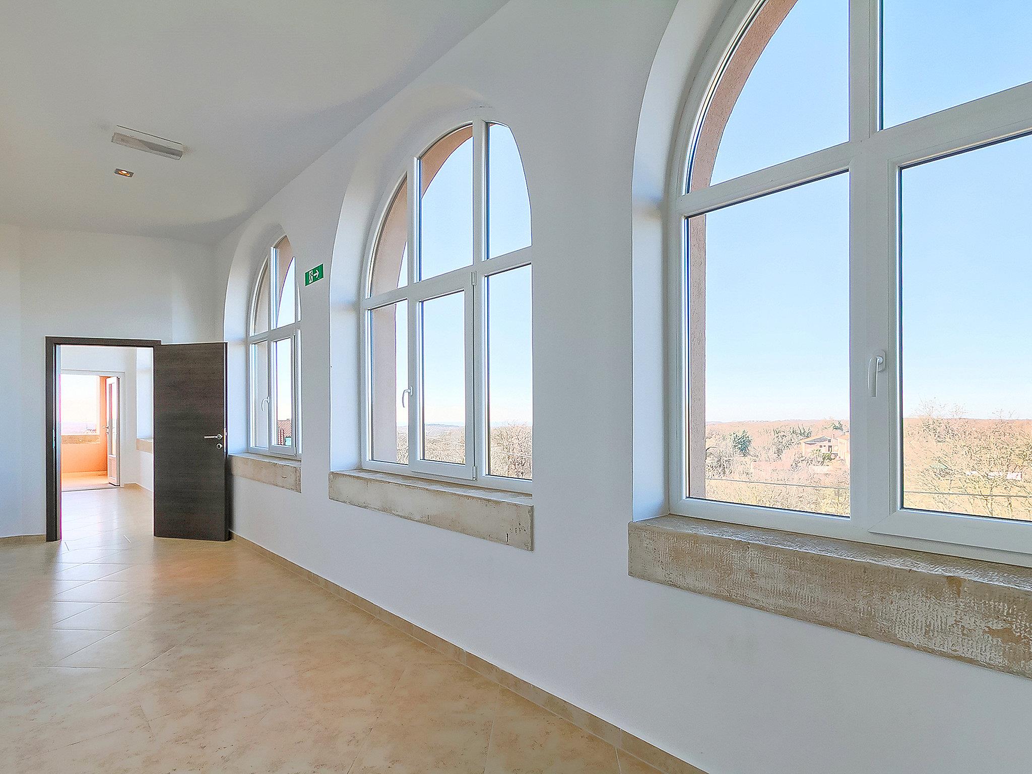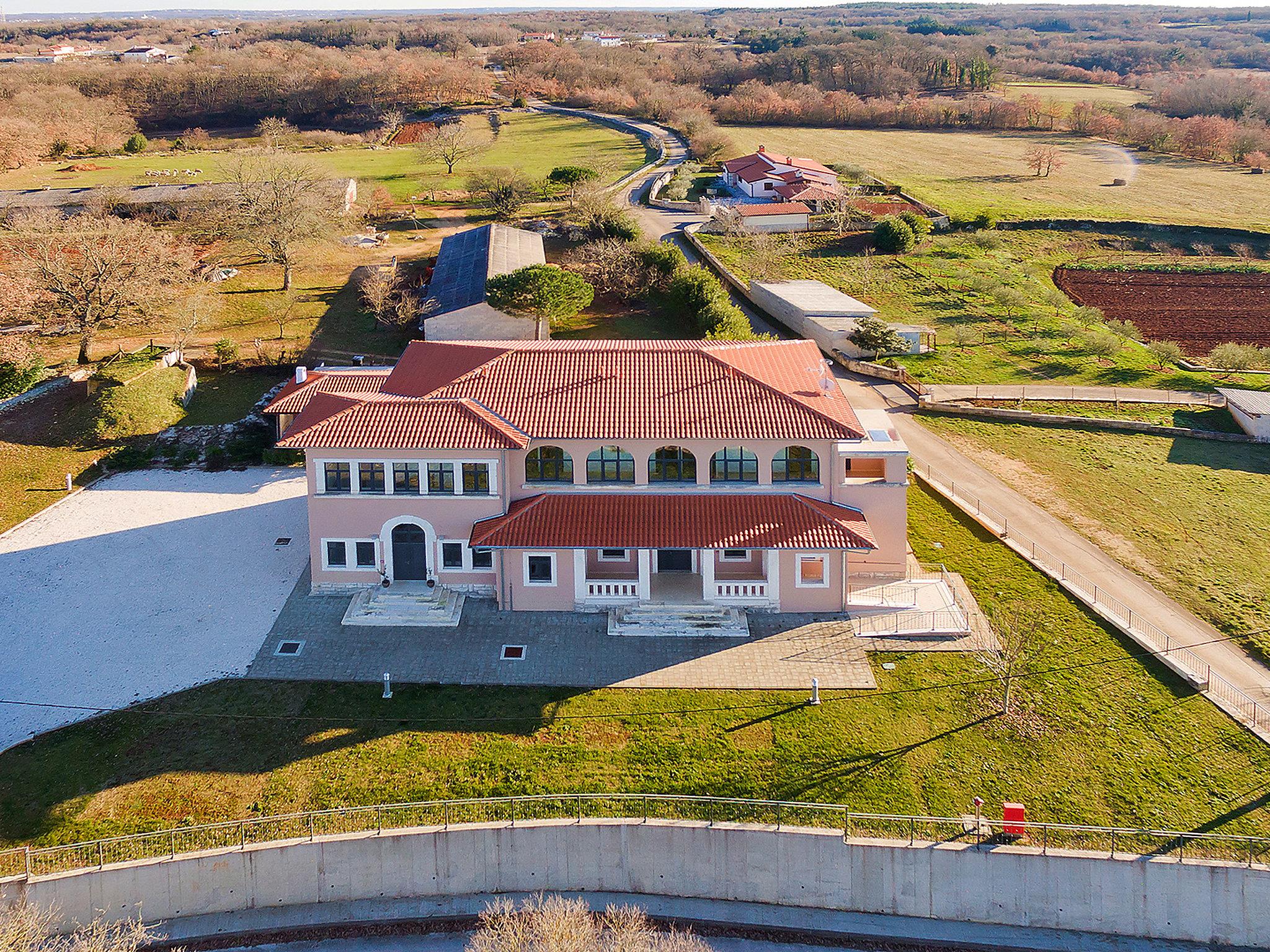 Large villa "Old School House", 2 storeys. In the hamlet Jakovici 2 km from the centre of Tinjan, 17 km from the centre of Porec, in a sunny position, 17 km from the sea. Private: property 2'300 m2 (fenced), garden with lawn, swimming pool angular (10 x 5 m, depth 140 cm, seasonal availability: 01.Jan. - 30.Nov.). Outdoor shower, table tennis, terrace (60 m2), garden furniture, barbecue. In the house: internet access, washing machine. Parking at the house on the premises. Shop 1 km, restaurant 3 km, bus stop 450 m, pebble beach 17 km. Walking paths from the house, cycle lane 50 m. By groups of young people double deposit is requested on arrival.