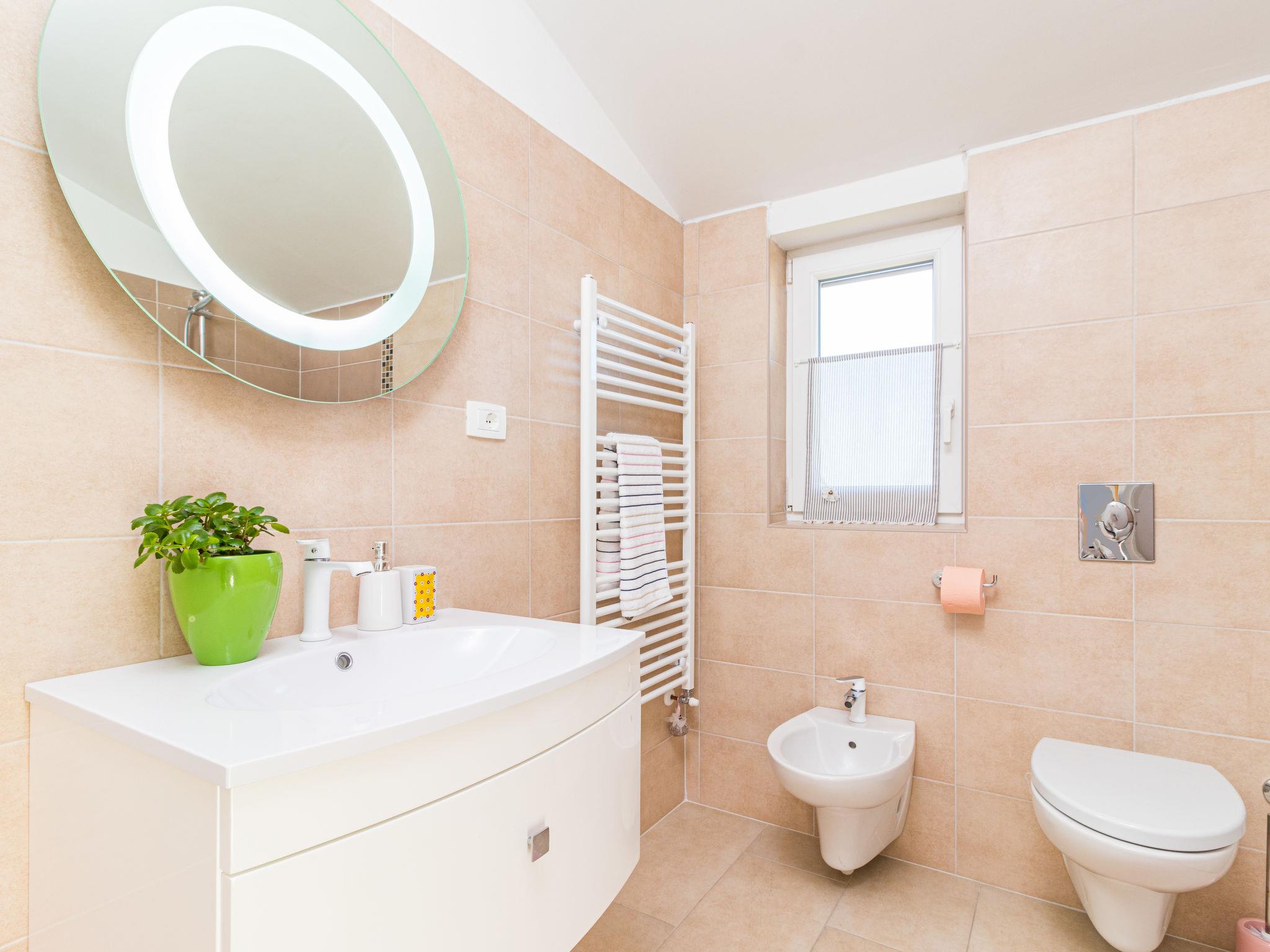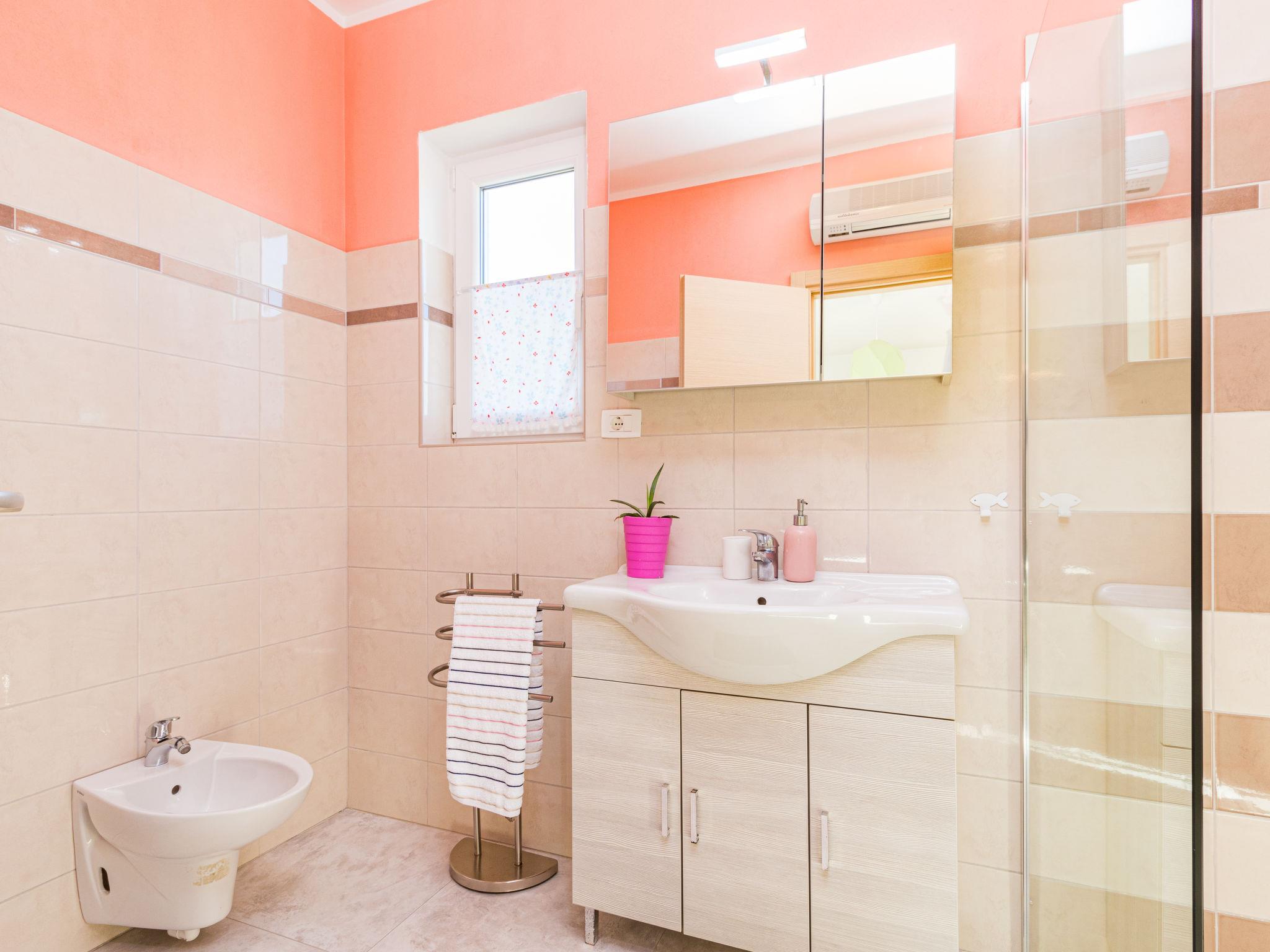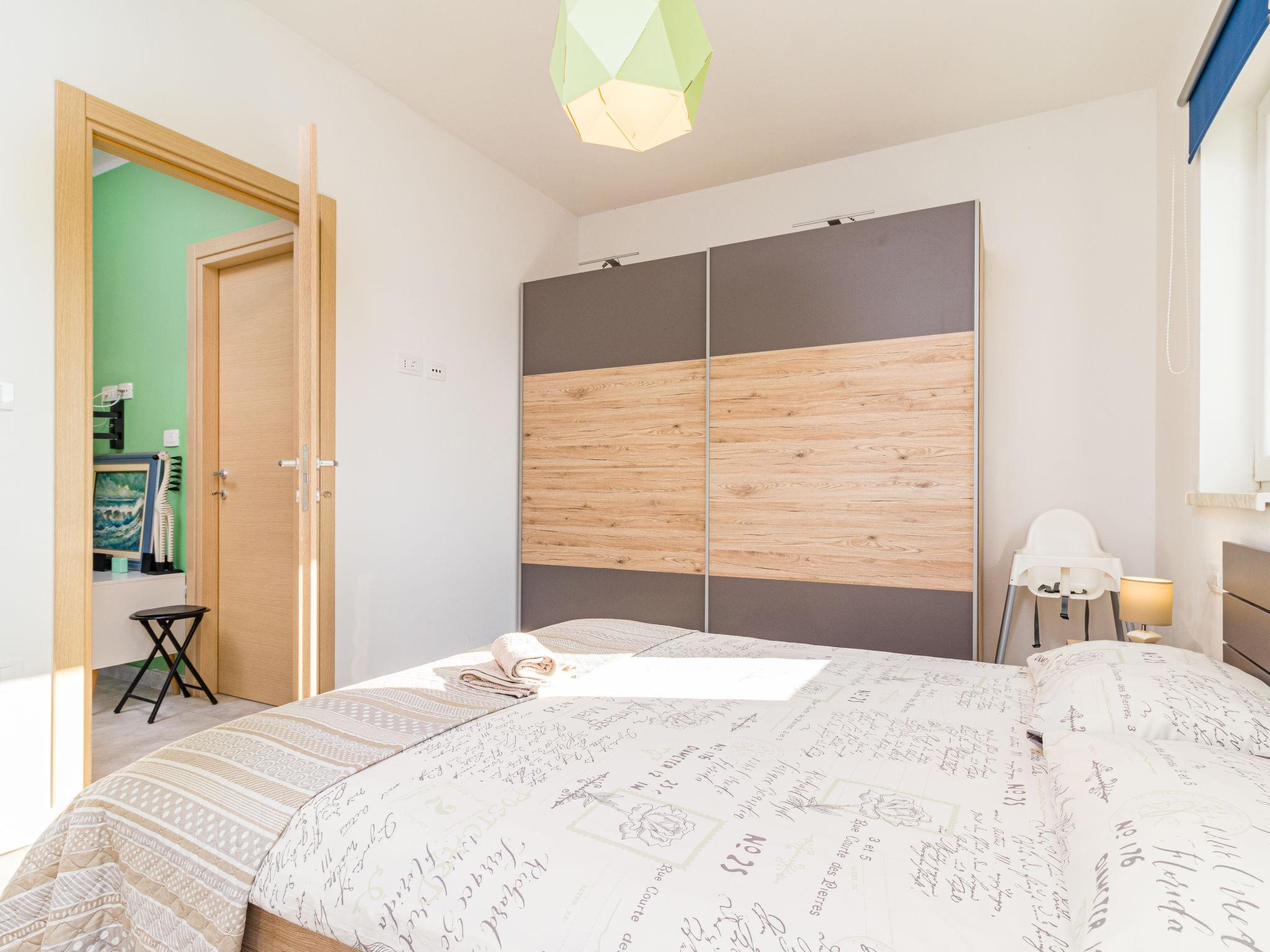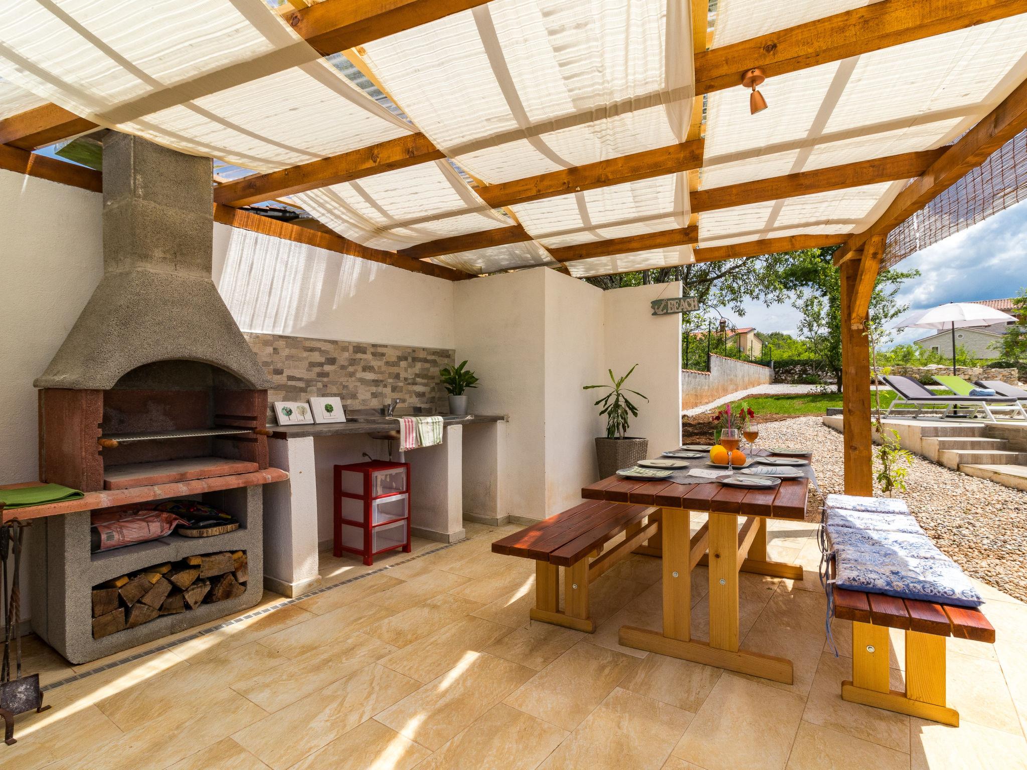 Beautiful single-family house "Villa May", 2 storeys, built in 2018. In the hamlet Cervari 3 km from the centre of Tinjan, 14 km from the centre of Pazin, 16 km from the centre of Porec, in a quiet, sunny position, 16 km from the sea. Private: property 1'900 m2 (fenced), lawn 1'000 m2 trees, swimming pool angular, heated (9 x 4 m, 37 m2, depth 140 cm, seasonal availability: 03.Apr. - 09.Oct.) with internal staircase. Outdoor shower, table tennis, volleyball, terrace (50 m2), garden furniture, barbecue, pool maintenance by the owner/gardener. In the house: internet access, washing machine. Motor access to the house (50 m via unmade road). Parking (for 4 cars) on the premises. Shop 3 km, supermarket 14 km, restaurant 2 km, bus stop 1 km, pebble beach 16 km, concrete beach 16 km. Walking paths from the house 200 m. Nearby attractions: Adventure park 5 km. Groups of teenagers on request only. Please note: airfield 52 km from the property.