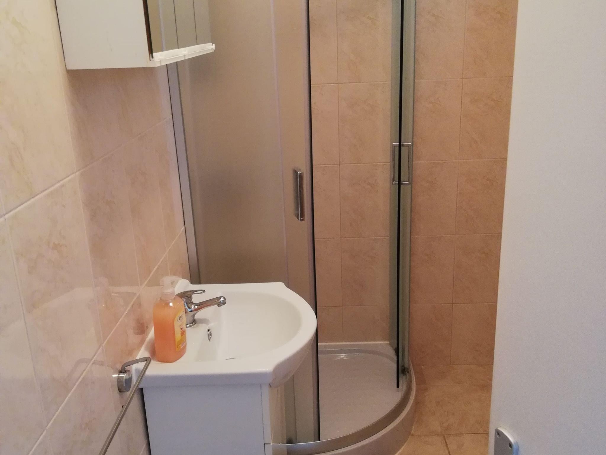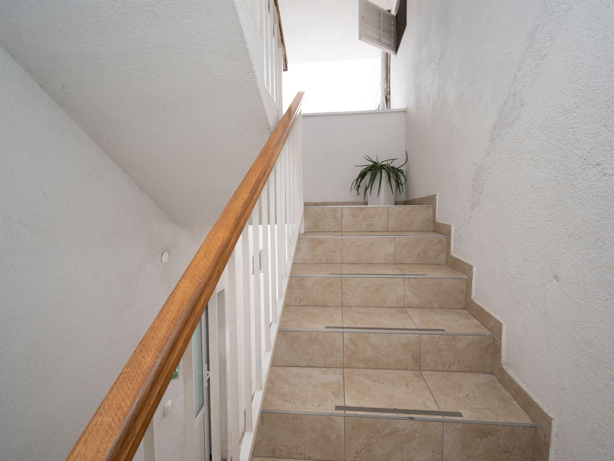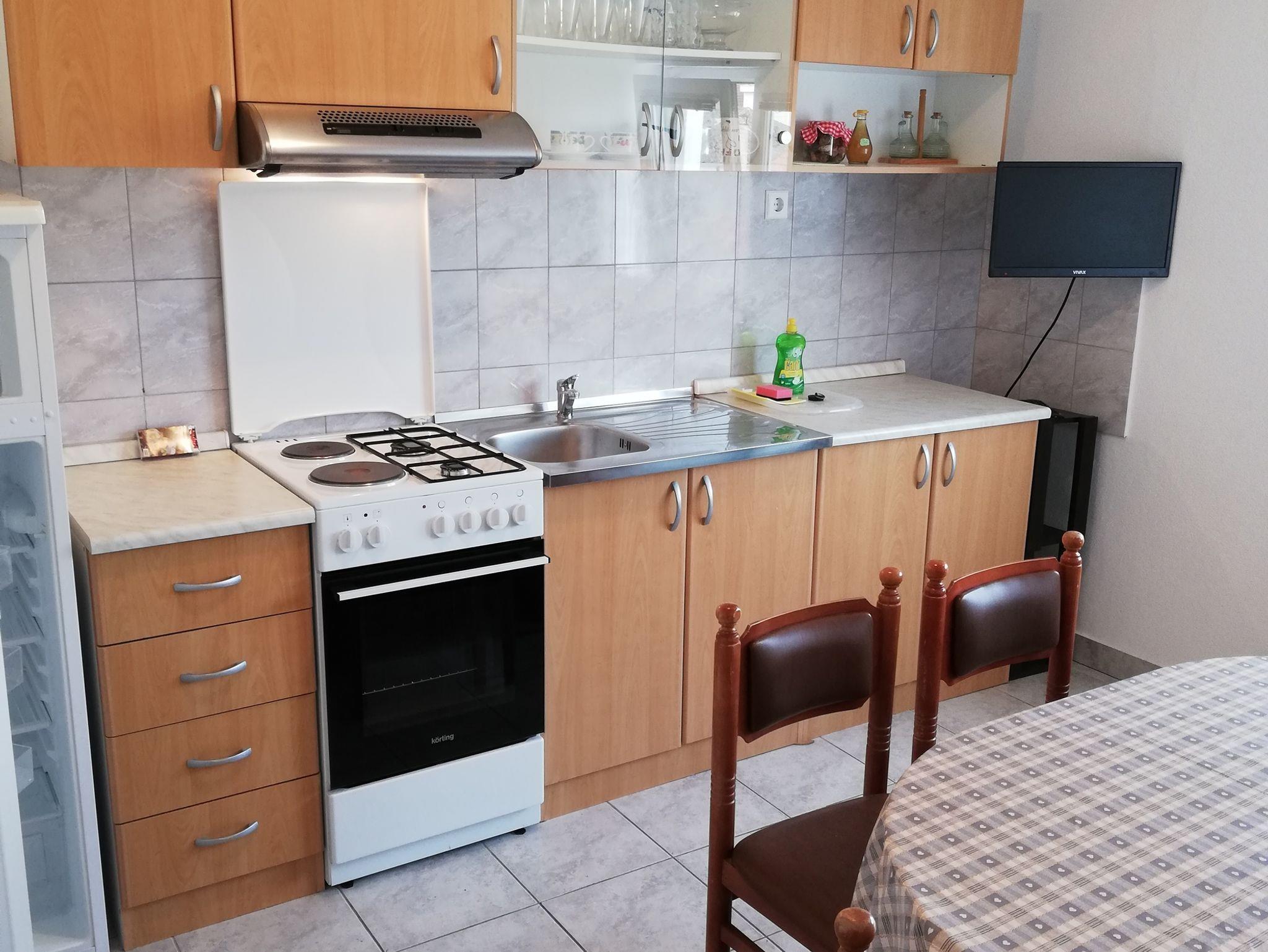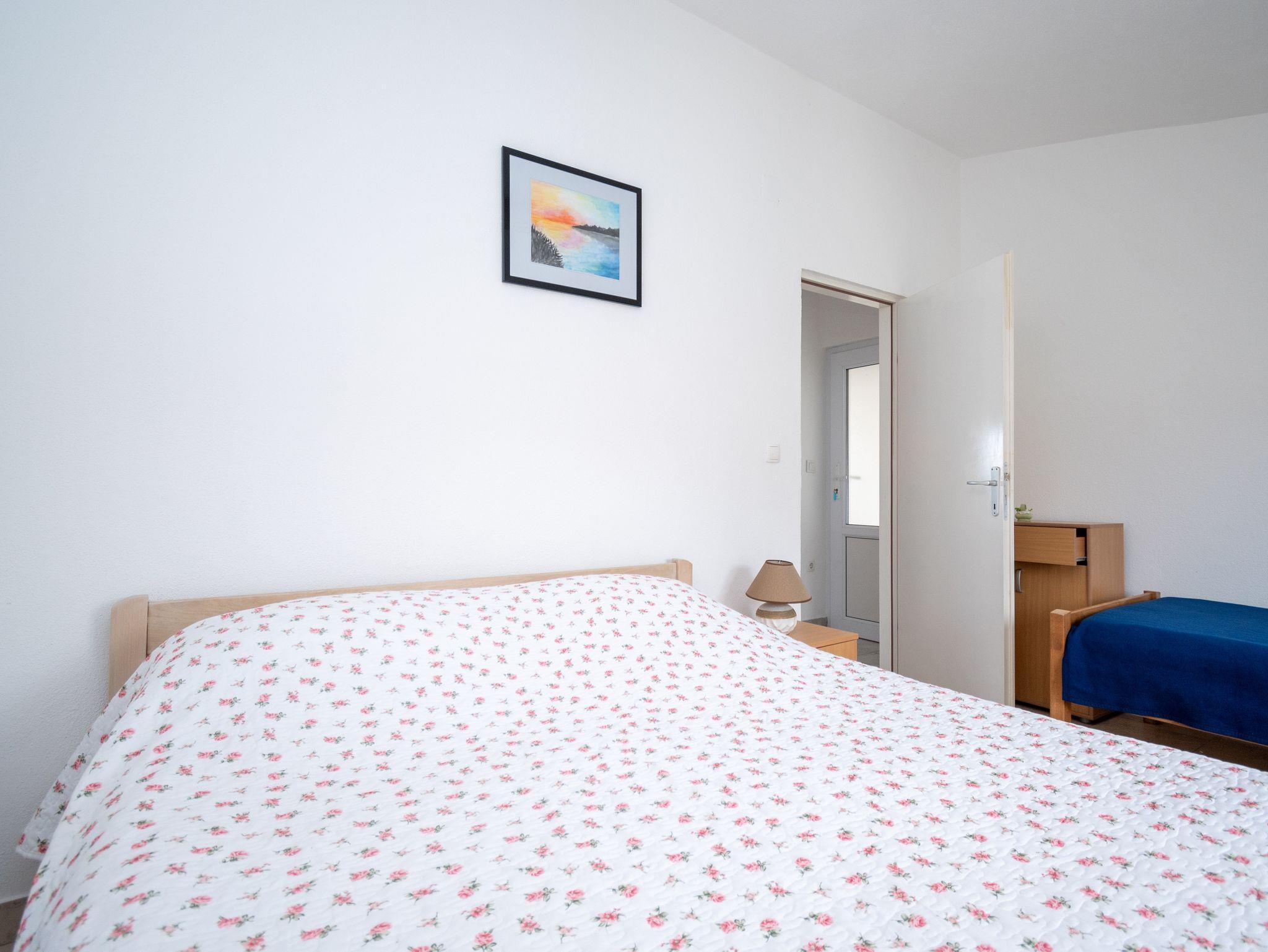 Ferienwohnung bietet Platz für 3 Gäste. Die Betten sind in Schlafzimmern, die es 1 gibt, innerhalb einer Gesamtfläche von 27m2, angeordnet. Die Gäste haben eine eigene Terrasse zur Verfügung, auf der sie in warmen Sommernächten genießen können. Das Apartment bietet Meerblick. Es ist erlaubt, Speisen auf dem Gemeinschafts-Grill vorzubereiten. IM PREIS INBEGRIFFEN: Kurtaxe, Endreinigung, Klimatisierung, Parkplatz, Internet, tragbarer Grill. VERBINDLICHE ZUSÄTZLICHE KOSTEN: Aufzahlung für Kurzaufenthalte (prozentualer Zuschlag pro Nächtigungsanzahl: 30% - 1, 20% - 2, 10% - 3). Die Verfügbarkeit zusätzlicher Dienstleistungen in Ihrem reservierten Termin und die Preise derselben (falls nicht aufgeführt) müssen im Voraus überprüft werden. Zusätzliche Dienstleistungen die in der Zahlungsaufforderung nicht aufgeführt sind werden direkt beim Vermieter bezahlt, angenommen der Gast nutzt auch diese. Ermäßigung auf den Grundpreis: Gratistag 14=13 (bei einem Aufenthalt von 14 Tagen oder mehr erhalten Sie einen Gratistag für den Aufenthalt bis 31.12.26).