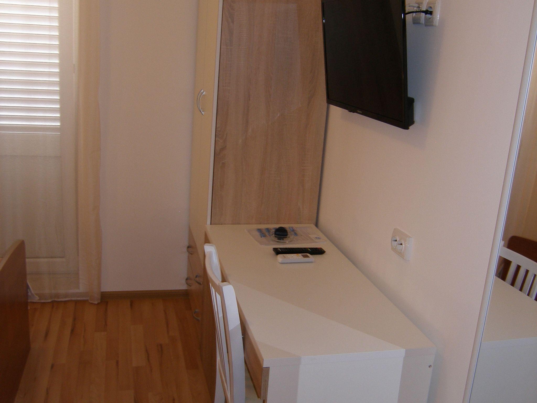 Zimmer bietet Platz für 2 Gäste. Die Betten sind in Schlafzimmern, die es 1 gibt, innerhalb einer Gesamtfläche von 12m2, angeordnet. Die Gäste haben einen eigenen Balkon zur Verfügung, auf der sie in warmen Sommernächten genießen können. Das Zimmer bietet Meerblick. Die reservierte Unterkunftseinheit ist ein Zimmer mit eigenem Badezimmer ohne die Möglichkeit der Nutzung einer Küche. IM PREIS INBEGRIFFEN: Kurtaxe, Endreinigung, Klimatisierung, Parkplatz, Internet, Kinderbett, Föhn. VERBINDLICHE ZUSÄTZLICHE KOSTEN: Aufzahlung für Kurzaufenthalte (prozentualer Zuschlag pro Nächtigungsanzahl: 30% - 1, 20% - 2, 10% - 3). UNVERBINDLICHE ZUSÄTZLICHE KOSTEN: Wäschewaschen (2,00 € Waschen). Die Verfügbarkeit zusätzlicher Dienstleistungen in Ihrem reservierten Termin und die Preise derselben (falls nicht aufgeführt) müssen im Voraus überprüft werden. Zusätzliche Dienstleistungen die in der Zahlungsaufforderung nicht aufgeführt sind werden direkt beim Vermieter bezahlt, angenommen der Gast nutzt auch diese. Ermäßigung auf den Grundpreis: Gratistag 14=13 (bei einem Aufenthalt von 14 Tagen oder mehr erhalten Sie einen Gratistag für den Aufenthalt bis 31.12.26).