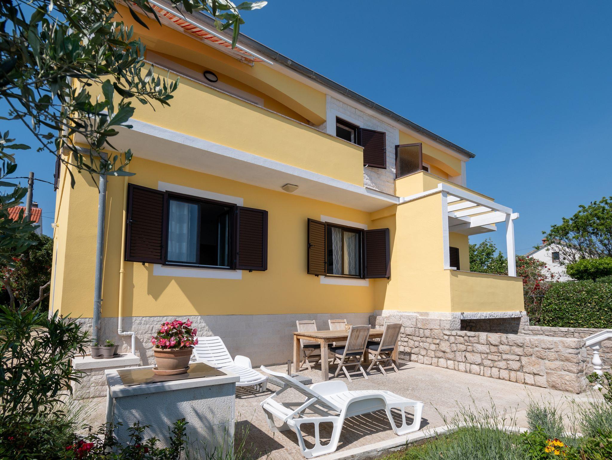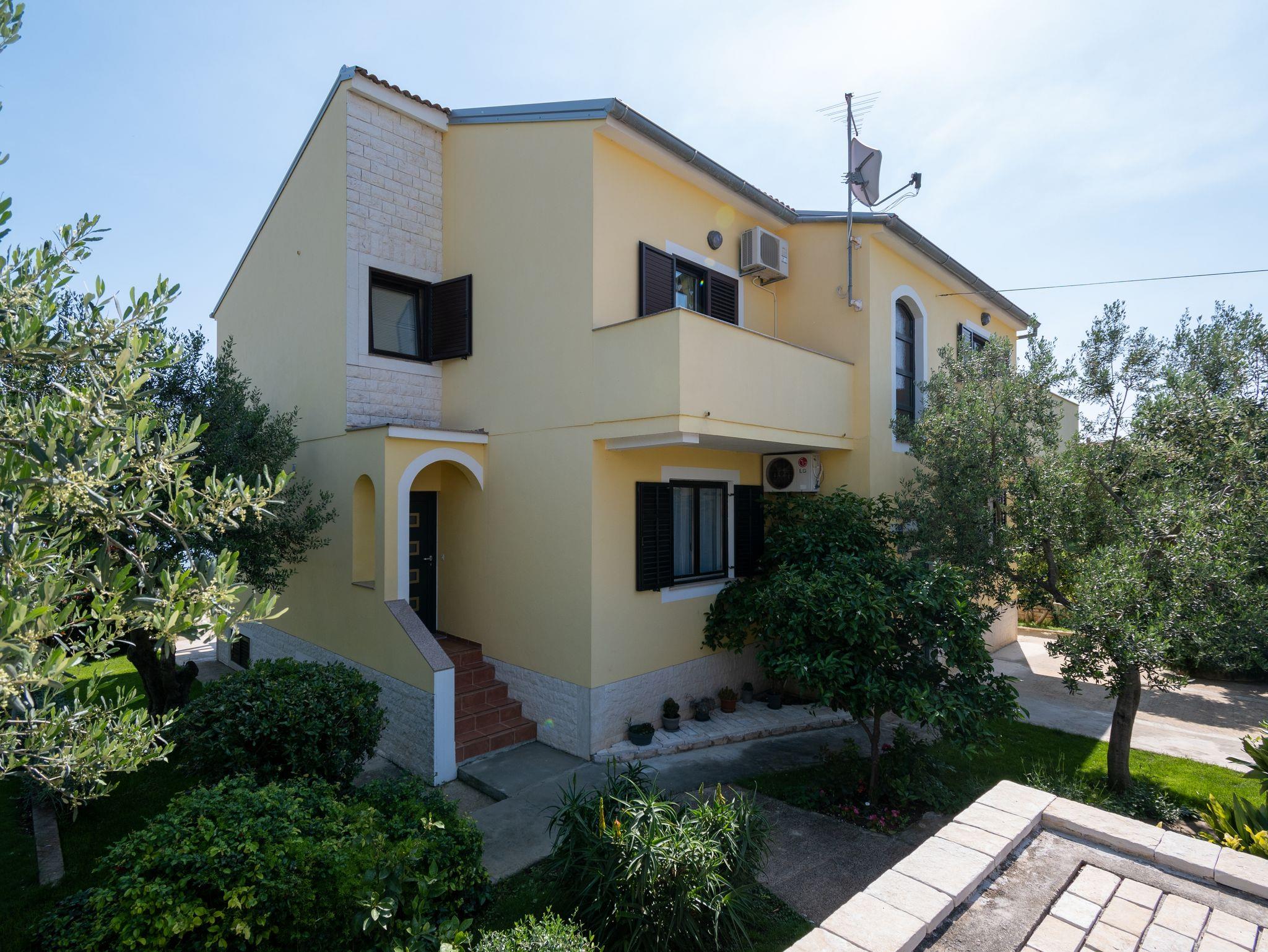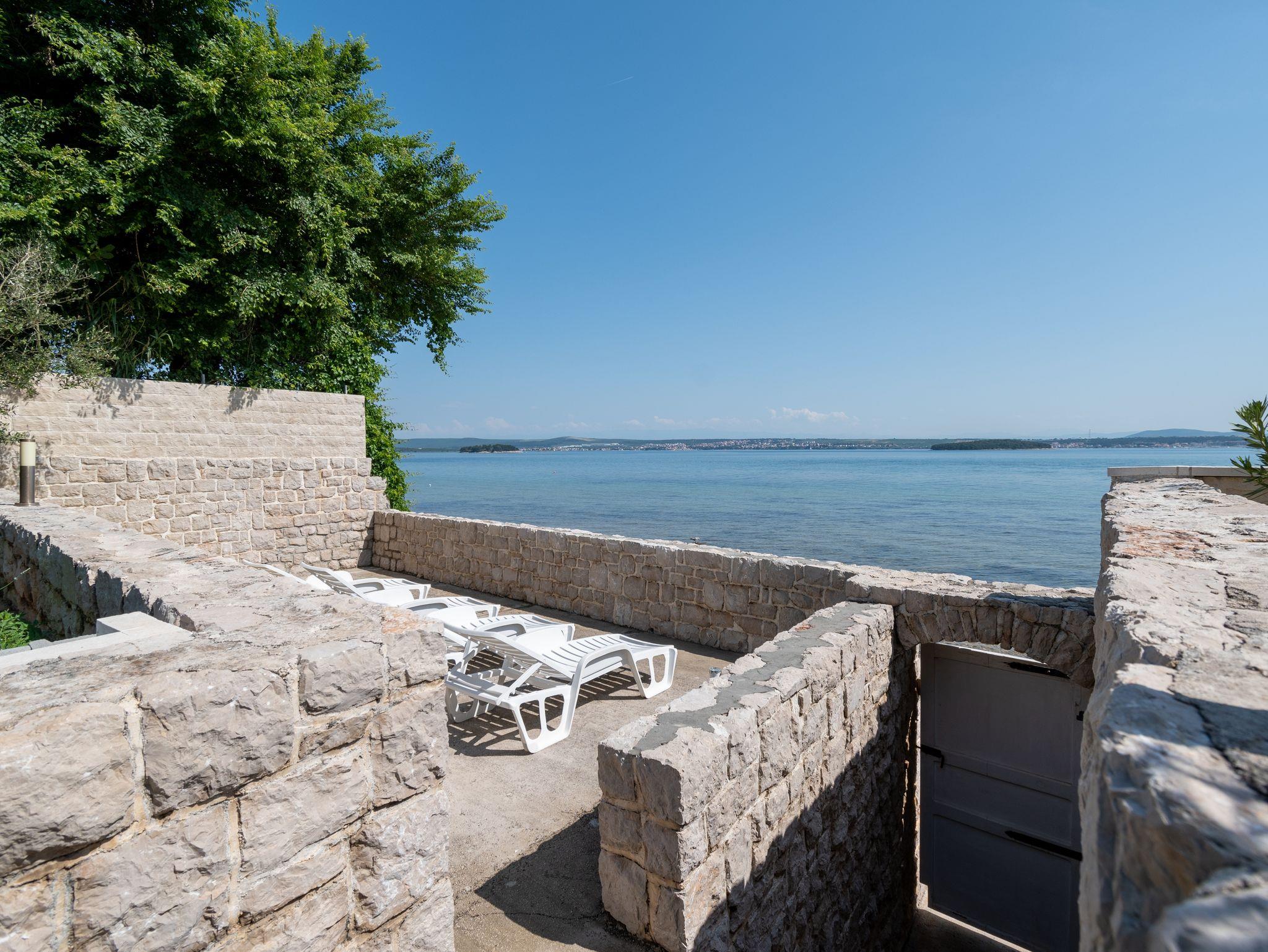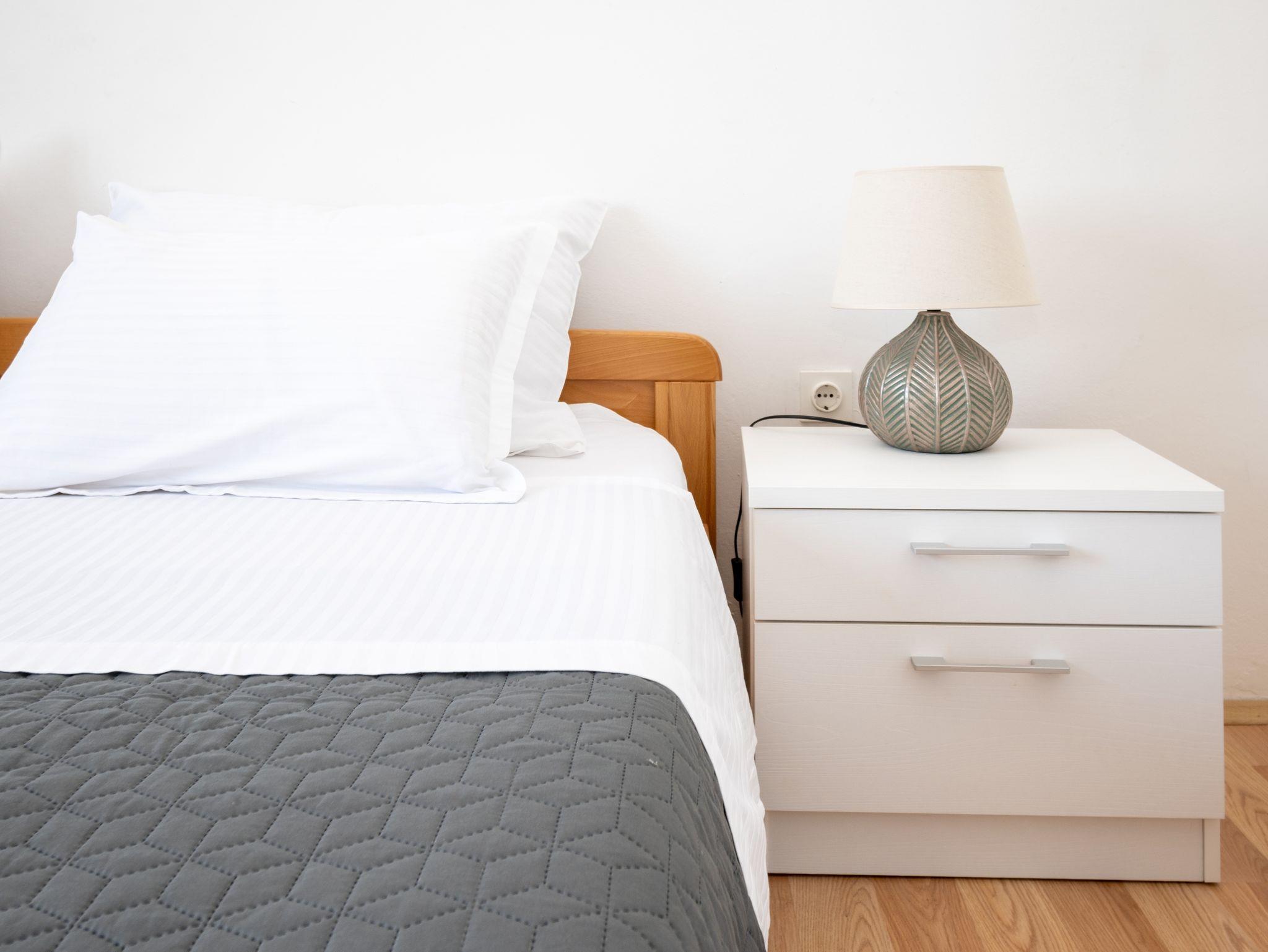Ferienwohnung bietet Platz für 5 Gäste. Die Betten sind in Schlafzimmern, die es 2 gibt, innerhalb einer Gesamtfläche von 54m2, angeordnet. Die Gäste haben eine eigene Terrasse zur Verfügung, auf der sie in warmen Sommernächten genießen können. Das Apartment bietet Meerblick. Es ist erlaubt, Speisen auf dem Gemeinschafts-Grill vorzubereiten. Unterkunftseinheit hat Räume, die von dem Rest der Einheit abgetrennt werden. IM PREIS INBEGRIFFEN: Kurtaxe, Endreinigung, Klimatisierung, Parkplatz, Internet, Bootsanlegeplatz, Bügeleisen, Föhn, tragbarer Grill, Sonnenschirm, Liegestühle. VERBINDLICHE ZUSÄTZLICHE KOSTEN: Aufzahlung für Kurzaufenthalte (prozentualer Zuschlag pro Nächtigungsanzahl: 30% - 1, 20% - 2, 10% - 3). Die Verfügbarkeit zusätzlicher Dienstleistungen in Ihrem reservierten Termin und die Preise derselben (falls nicht aufgeführt) müssen im Voraus überprüft werden. Zusätzliche Dienstleistungen die in der Zahlungsaufforderung nicht aufgeführt sind werden direkt beim Vermieter bezahlt, angenommen der Gast nutzt auch diese. Ermäßigung auf den Grundpreis: Gratistag 28=25 (bei einem Aufenthalt von 28 oder mehr Tagen erhalten Sie 3 kostenlose Tage für den Aufenthalt bis 31.12.26).