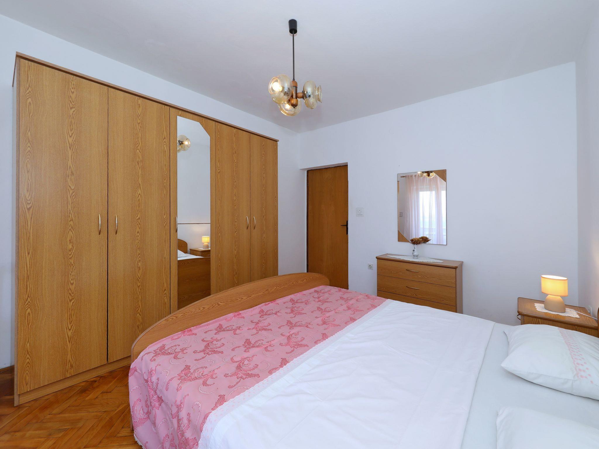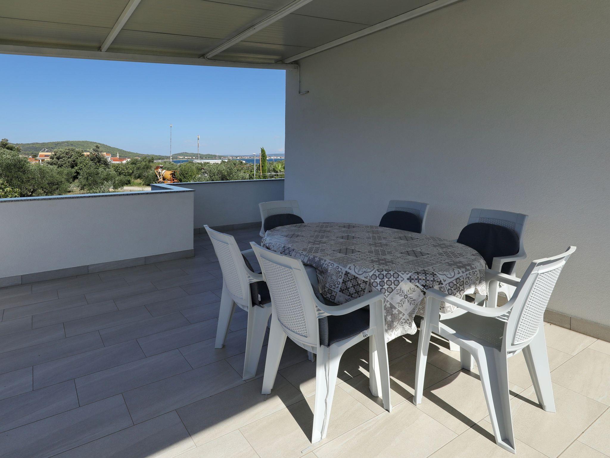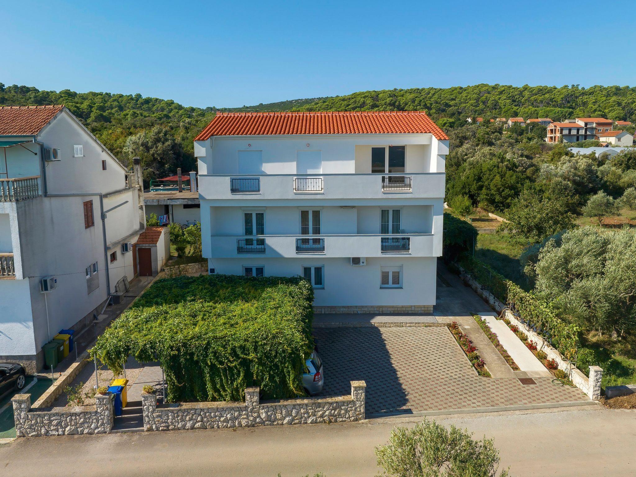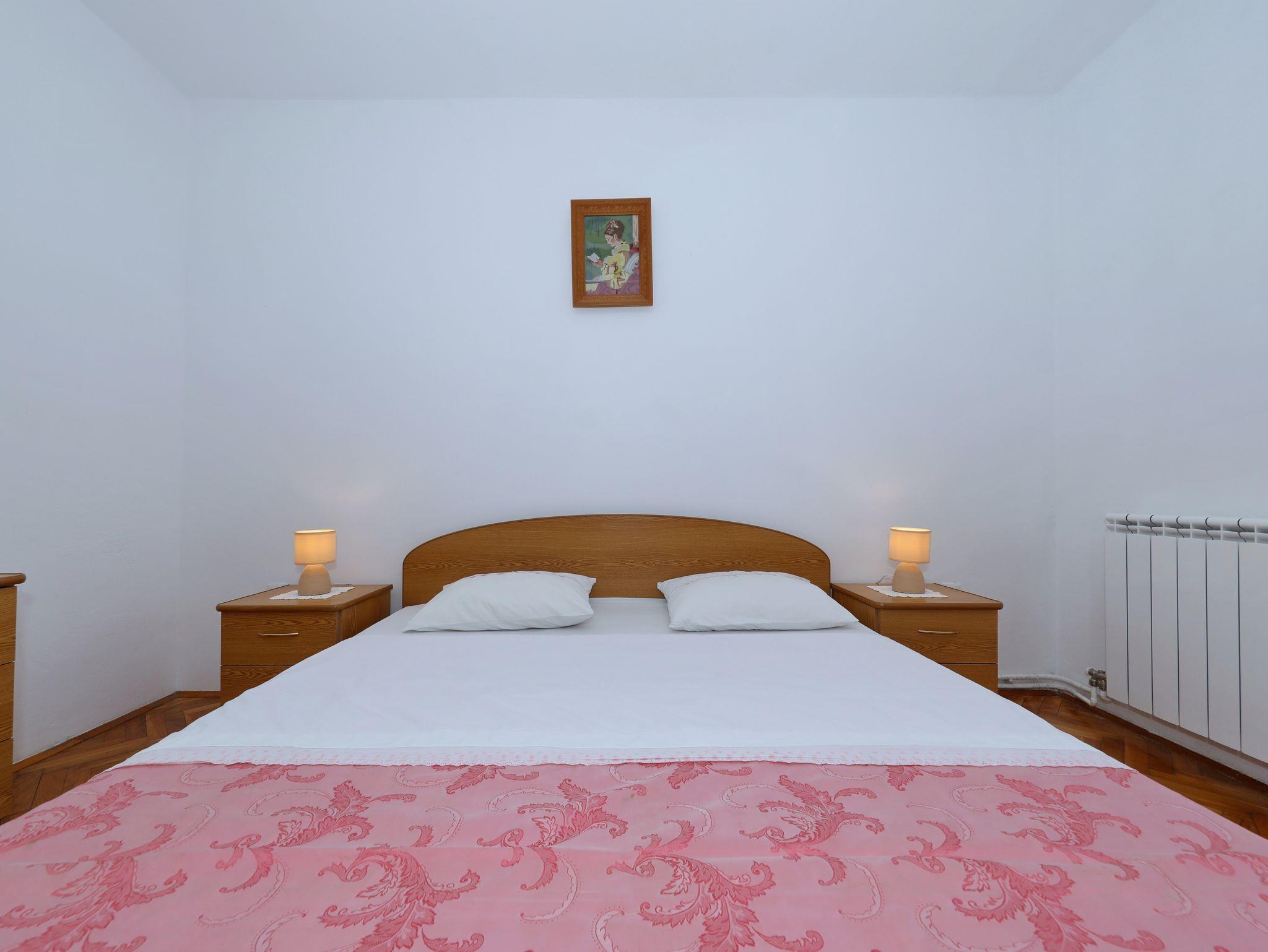 Ferienwohnung bietet Platz für 7 Gäste. Die Betten sind in Schlafzimmern, die es 2 gibt, und in Wohnzimmer, innerhalb einer Gesamtfläche von 76m2, angeordnet. Die Gäste haben eine eigene Terrasse zur Verfügung, auf der sie in warmen Sommernächten genießen können. Das Apartment bietet Meerblick. Es ist erlaubt, Speisen auf dem Gemeinschafts-Grill vorzubereiten. In der Unterkunftseinheit besteht die Möglichkeit des Mitbringens von Haustieren gegen Aufpreis. IM PREIS INBEGRIFFEN: Kurtaxe, Endreinigung, Klimatisierung, Parkplatz, Internet, Bügeleisen, Bügelbrett, tragbarer Grill. VERBINDLICHE ZUSÄTZLICHE KOSTEN: Aufzahlung für Kurzaufenthalte (prozentualer Zuschlag pro Nächtigungsanzahl: 30% - 1, 20% - 2, 10% - 3). UNVERBINDLICHE ZUSÄTZLICHE KOSTEN: Wäschewaschen (10,00 € Waschen), Bootsanlegeplatz (5,00 € pro Nacht), Haustiere (10,00 € pro Nacht). Die Verfügbarkeit zusätzlicher Dienstleistungen in Ihrem reservierten Termin und die Preise derselben (falls nicht aufgeführt) müssen im Voraus überprüft werden. Zusätzliche Dienstleistungen die in der Zahlungsaufforderung nicht aufgeführt sind werden direkt beim Vermieter bezahlt, angenommen der Gast nutzt auch diese.