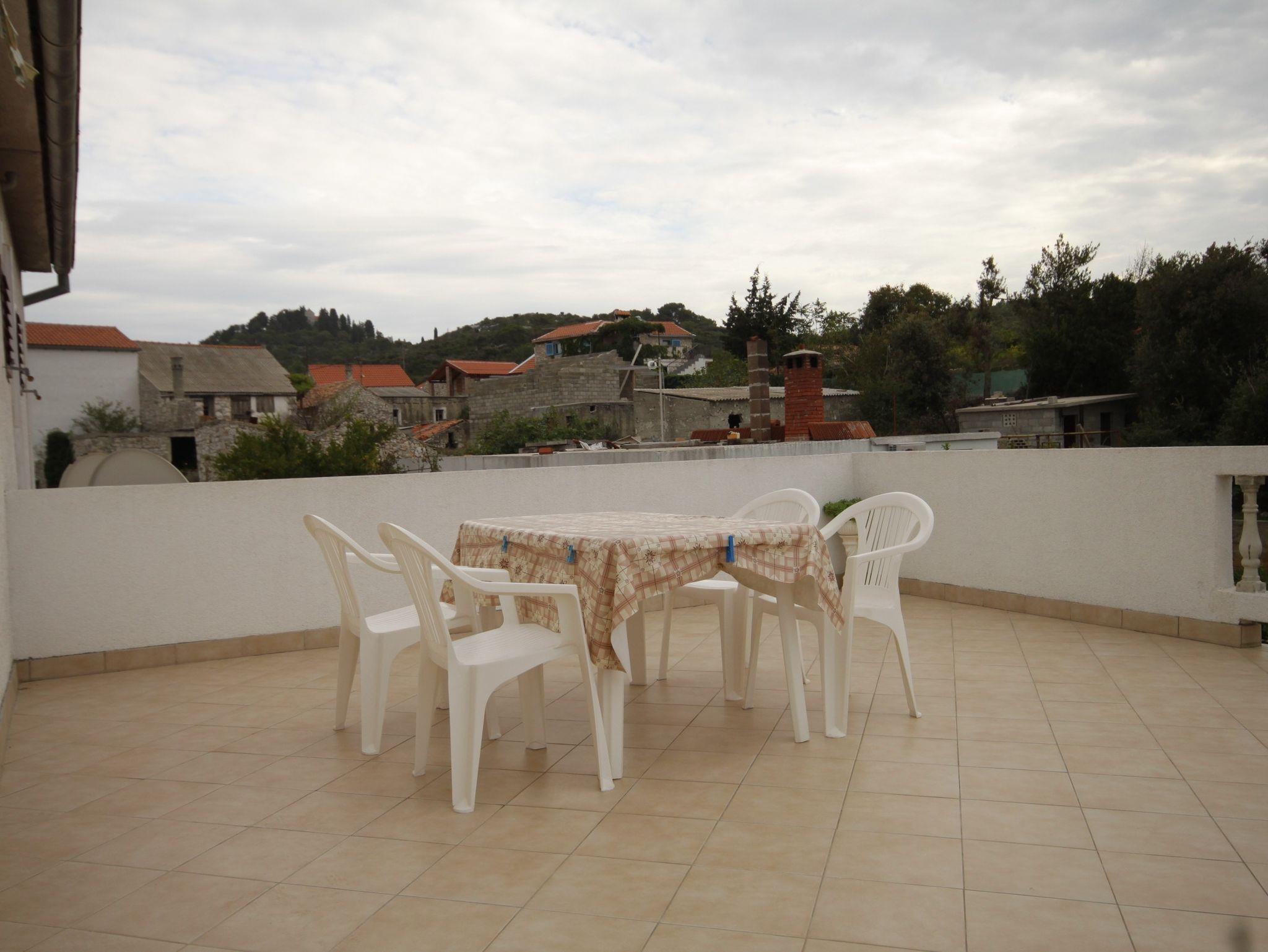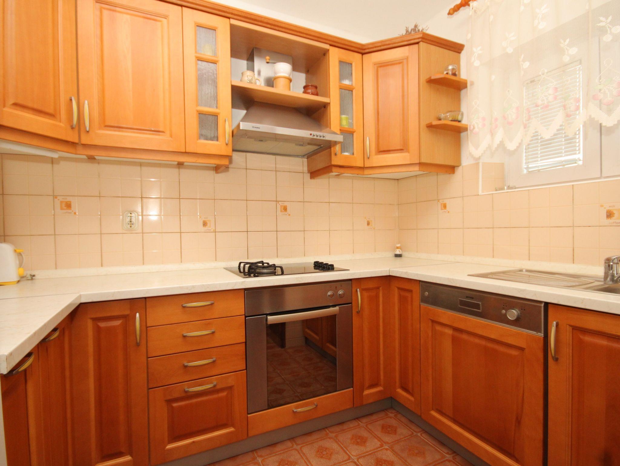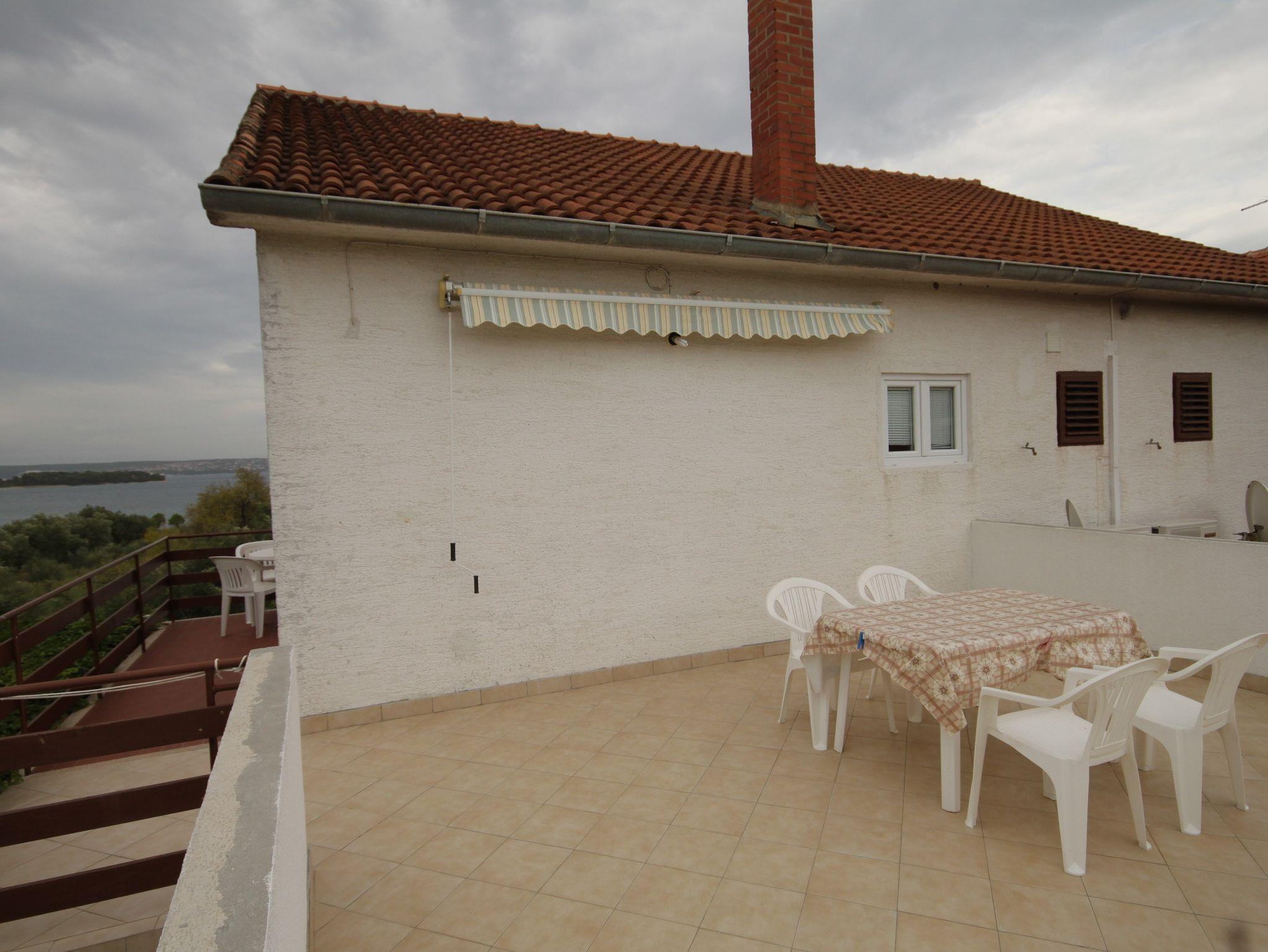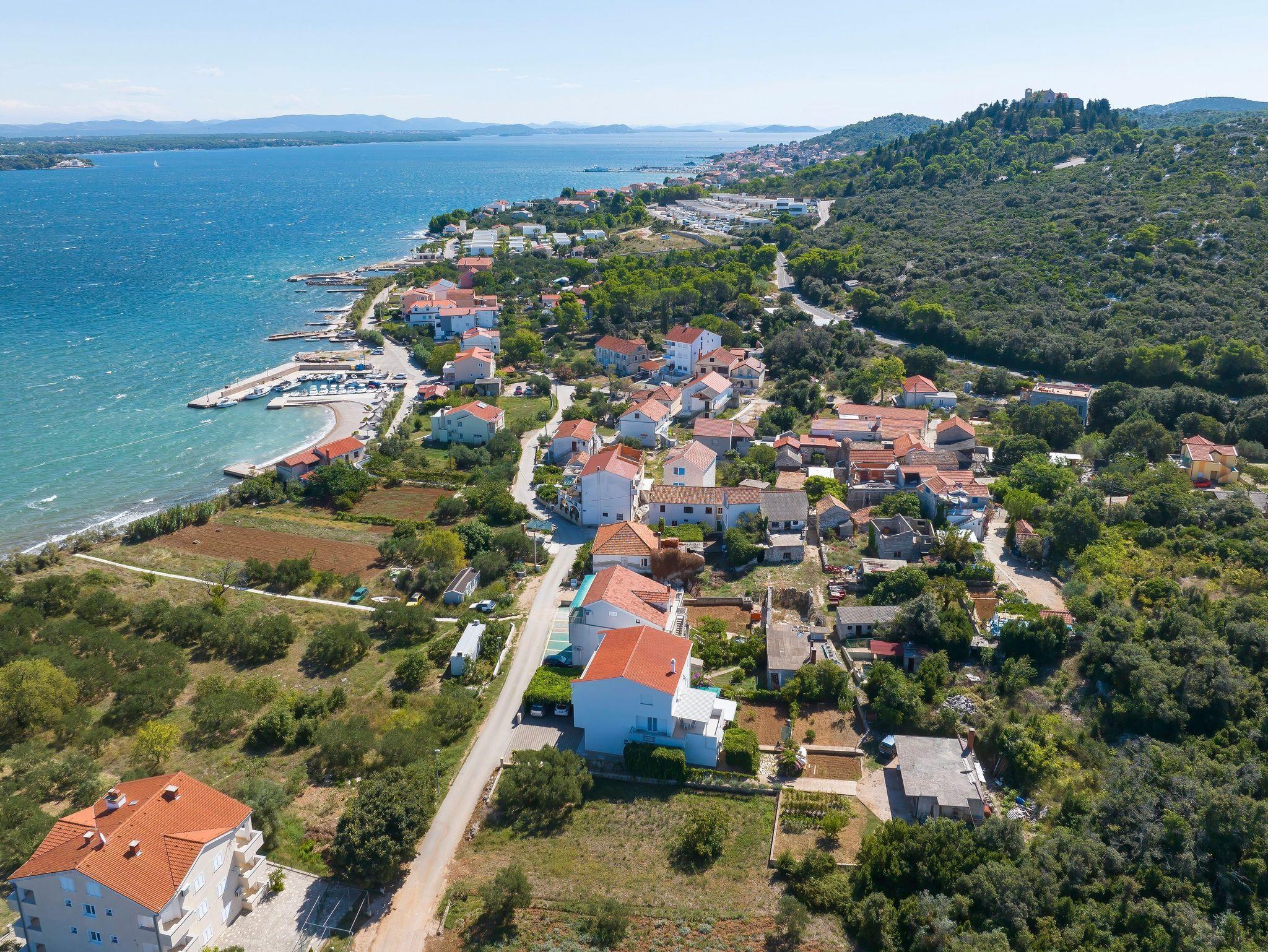Ferienwohnung bietet Platz für 7 Gäste. Die Betten sind in Schlafzimmern, die es 2 gibt, und in Wohnzimmer, innerhalb einer Gesamtfläche von 76m2, angeordnet. Die Gäste haben eine eigene Terrasse zur Verfügung, auf der sie in warmen Sommernächten genießen können. Das Apartment bietet Meerblick. Es ist erlaubt, Speisen auf dem Gemeinschafts-Grill vorzubereiten. In der Unterkunftseinheit besteht die Möglichkeit des Mitbringens von Haustieren gegen Aufpreis. IM PREIS INBEGRIFFEN: Kurtaxe, Endreinigung, Klimatisierung, Parkplatz, Internet, Bügeleisen, Bügelbrett, tragbarer Grill. VERBINDLICHE ZUSÄTZLICHE KOSTEN: Aufzahlung für Kurzaufenthalte (prozentualer Zuschlag pro Nächtigungsanzahl: 30% - 1, 20% - 2, 10% - 3). UNVERBINDLICHE ZUSÄTZLICHE KOSTEN: Wäschewaschen (10,00 € Waschen), Bootsanlegeplatz (5,00 € pro Nacht), Haustiere (10,00 € pro Nacht). Die Verfügbarkeit zusätzlicher Dienstleistungen in Ihrem reservierten Termin und die Preise derselben (falls nicht aufgeführt) müssen im Voraus überprüft werden. Zusätzliche Dienstleistungen die in der Zahlungsaufforderung nicht aufgeführt sind werden direkt beim Vermieter bezahlt, angenommen der Gast nutzt auch diese.