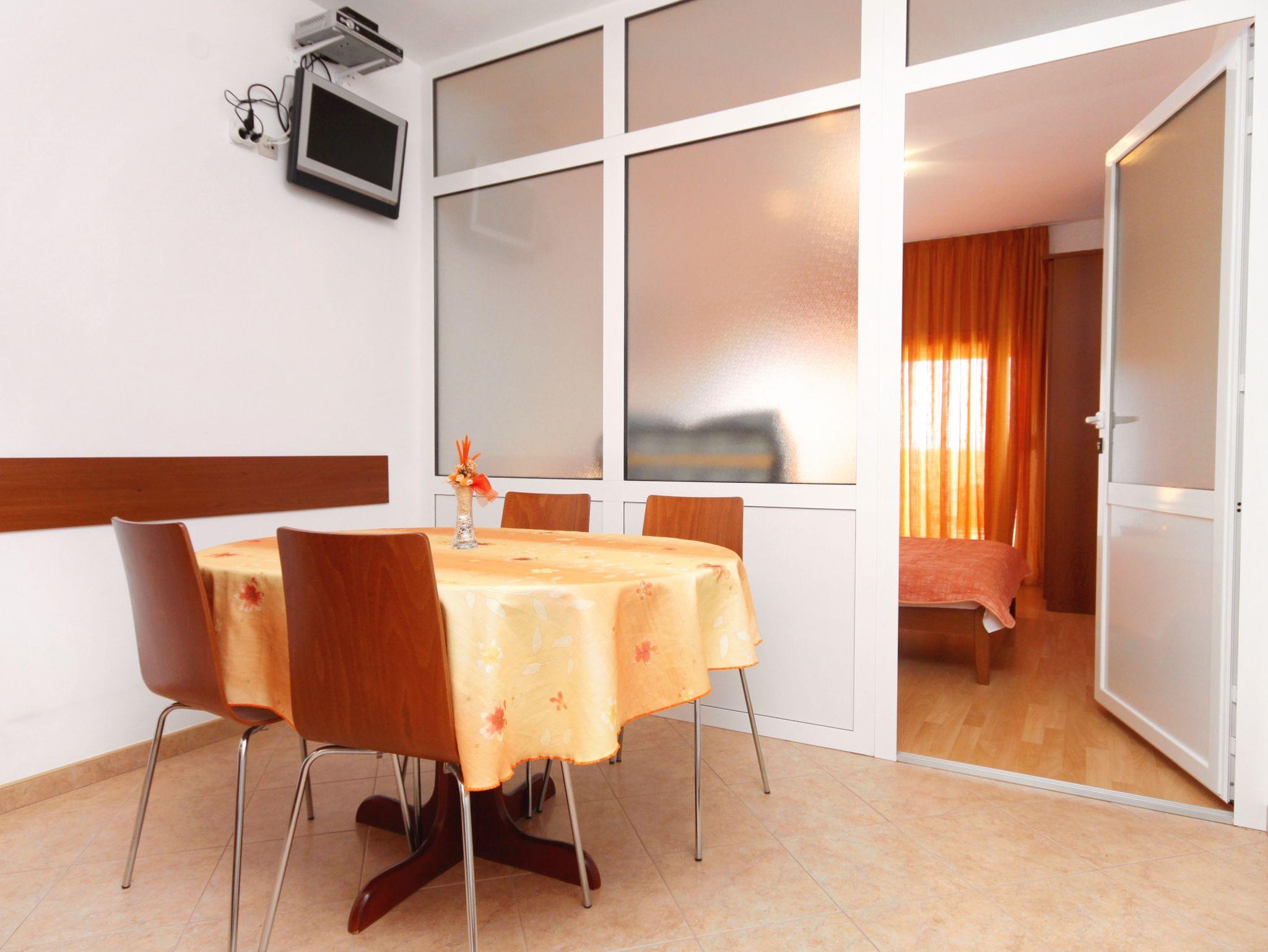 Ferienwohnung bietet Platz für 3 Gäste. Die Betten sind in Schlafzimmern, die es 1 gibt, innerhalb einer Gesamtfläche von 29m2, angeordnet. Die Gäste haben eine eigene Terrasse zur Verfügung, auf der sie in warmen Sommernächten genießen können. Das Apartment bietet Meerblick. Es ist erlaubt, Speisen auf dem Gemeinschafts-Grill vorzubereiten. IM PREIS INBEGRIFFEN: Kurtaxe, Endreinigung, Klimatisierung, Zentralheizung, Parkplatz, Internet, Bügeleisen, Föhn. Die Verfügbarkeit zusätzlicher Dienstleistungen in Ihrem reservierten Termin und die Preise derselben (falls nicht aufgeführt) müssen im Voraus überprüft werden. Zusätzliche Dienstleistungen die in der Zahlungsaufforderung nicht aufgeführt sind werden direkt beim Vermieter bezahlt, angenommen der Gast nutzt auch diese.