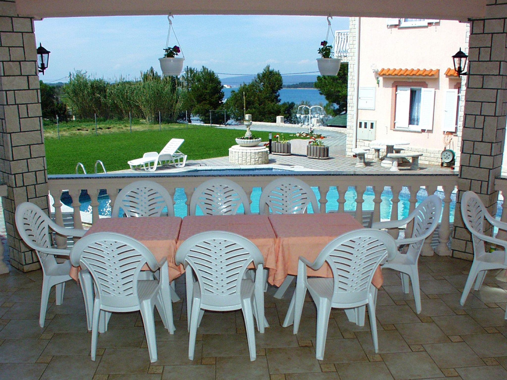 Umgebung des Objekts (Ordentlich), Hof (100m2, Kinderbereich, Sitzbereich), Parkplatz (Anzahl der Parkplätze: 5, Entfernung vom Objekt: im Hof), Parkplatz (Anzahl der Parkplätze: 4, Entfernung vom Objekt: 10 m), Pool: gemeinsam, Dimensionen: 8m x 3.5m x 2m, Wassertyp: Süßwasser, Grill: gemeinsam, Frühstück, Halbpension, Vollpension, WiFi Internet, Föhn, Bügeleisen, Bügelbrett, Sonnenschirm, Liegestühle, Kinderbett