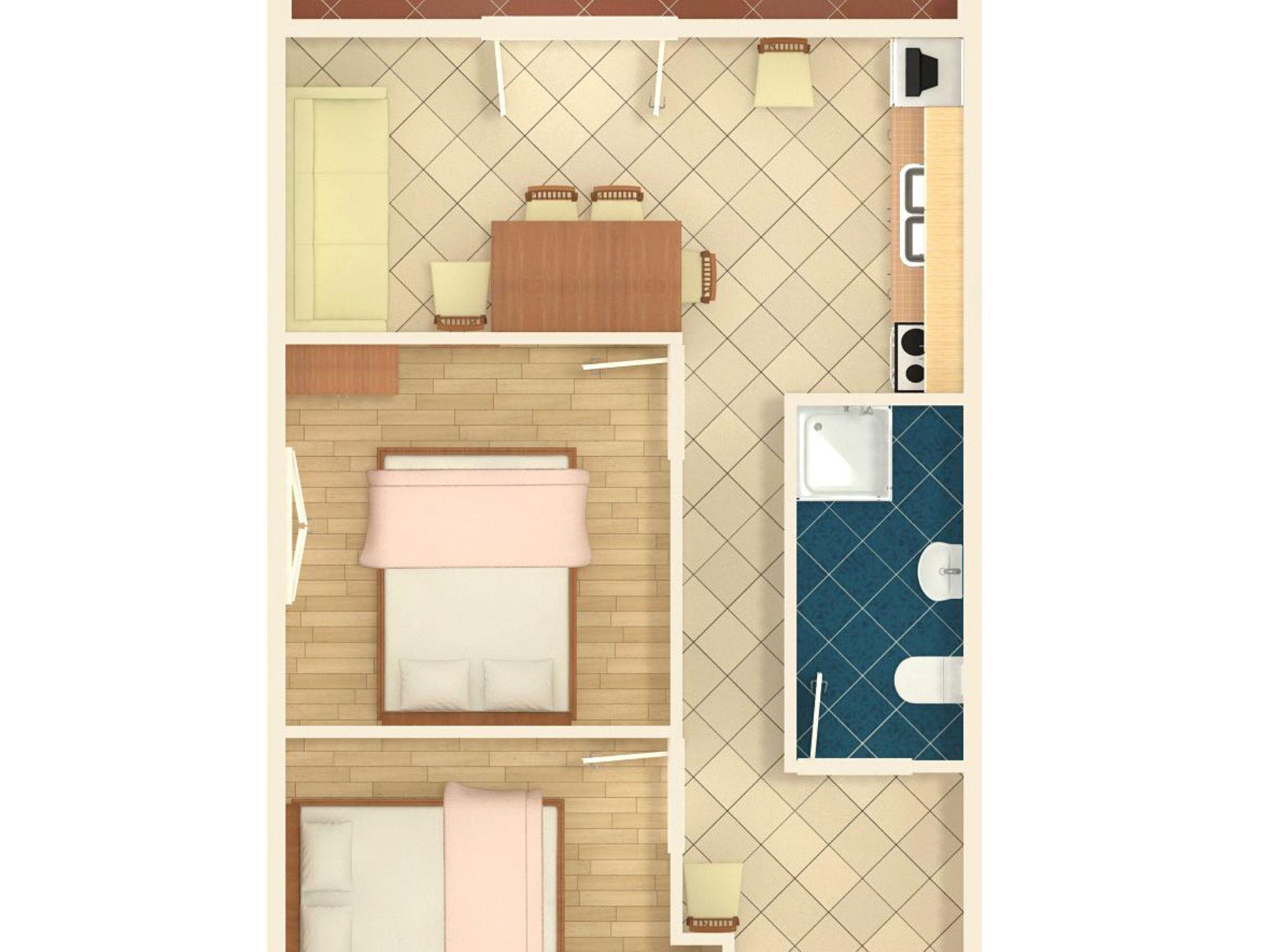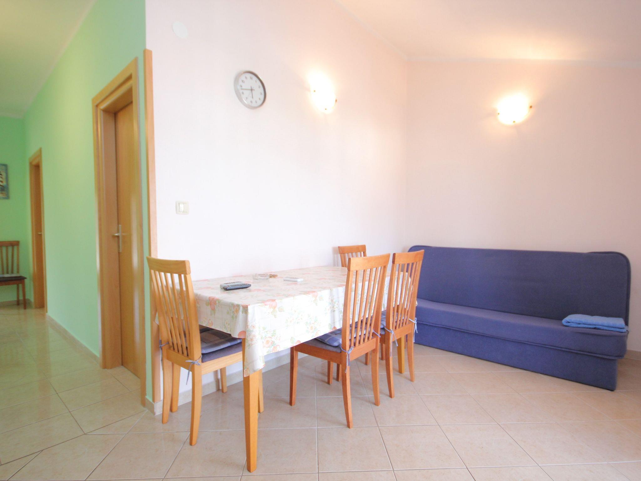 Ferienwohnung bietet Platz für 5 Gäste. Die Betten sind in Schlafzimmern, die es 2 gibt, und in Esszimmer, innerhalb einer Gesamtfläche von 45m2, angeordnet. Die Gäste haben eine eigene Terrasse zur Verfügung, auf der sie in warmen Sommernächten genießen können. Das Apartment bietet Meerblick. Es ist erlaubt, Speisen auf dem Gemeinschafts-Grill vorzubereiten. IM PREIS INBEGRIFFEN: Kurtaxe, Endreinigung, Klimatisierung, Parkplatz, Internet, Wäschewaschen, Bootsanlegeplatz. VERBINDLICHE ZUSÄTZLICHE KOSTEN: Aufzahlung für Kurzaufenthalte (prozentualer Zuschlag pro Nächtigungsanzahl: 30% - 1, 20% - 2, 10% - 3). UNVERBINDLICHE ZUSÄTZLICHE KOSTEN: Boot (50,00 € pro Nacht). Die Verfügbarkeit zusätzlicher Dienstleistungen in Ihrem reservierten Termin und die Preise derselben (falls nicht aufgeführt) müssen im Voraus überprüft werden. Zusätzliche Dienstleistungen die in der Zahlungsaufforderung nicht aufgeführt sind werden direkt beim Vermieter bezahlt, angenommen der Gast nutzt auch diese.