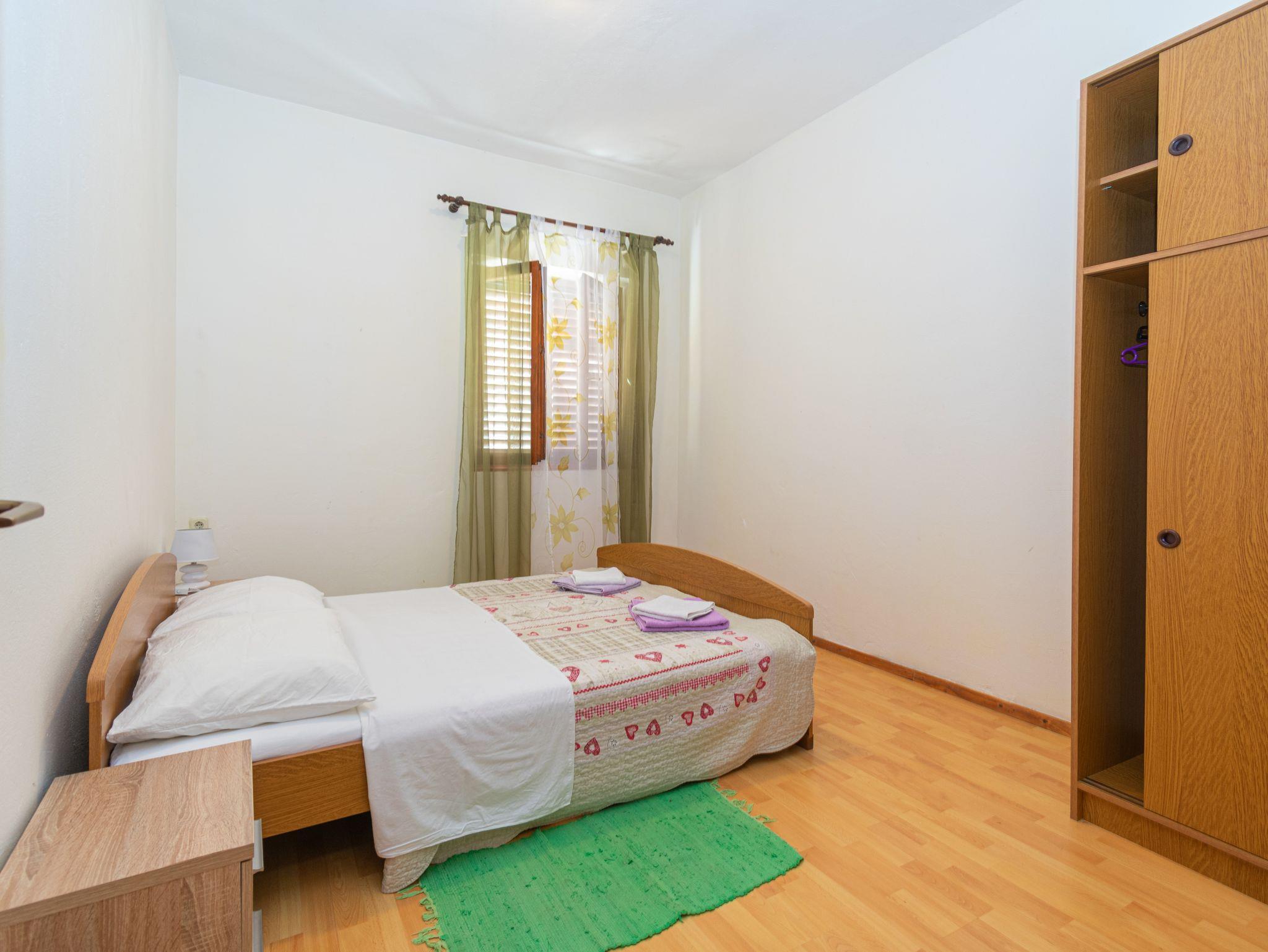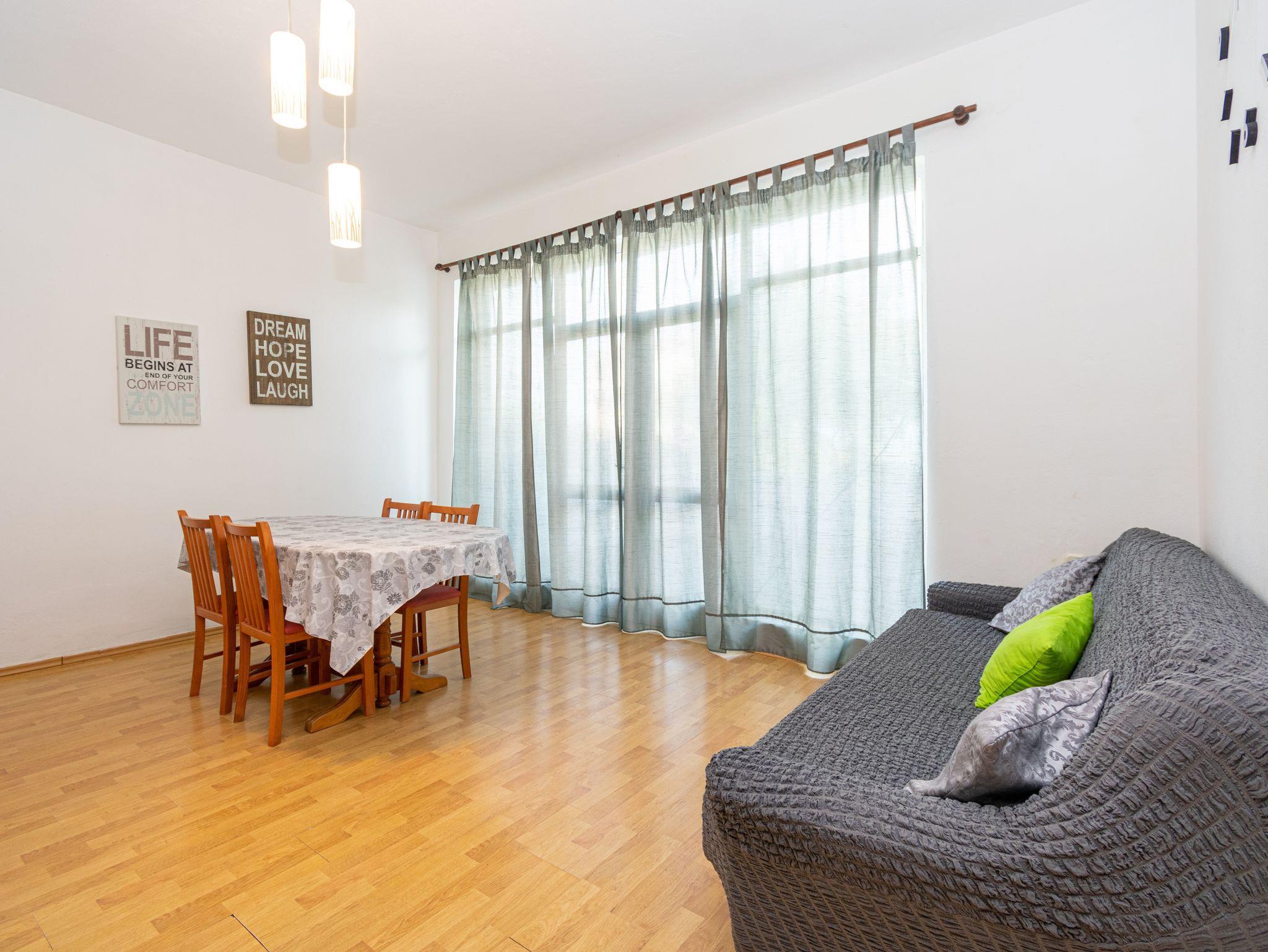 Ferienwohnung bietet Platz für 5 Gäste. Die Betten sind in Schlafzimmern, die es 2 gibt, und in Esszimmer, innerhalb einer Gesamtfläche von 53m2, angeordnet. Die Gäste haben eine eigene Terrasse zur Verfügung, auf der sie in warmen Sommernächten genießen können. Das Apartment bietet Meerblick. Es ist erlaubt, Speisen auf dem Gemeinschafts-Grill vorzubereiten. In der Unterkunftseinheit besteht die Möglichkeit des Mitbringens von Haustieren, und die Dienstleistung ist im Preis der Unterkunft enthalten. IM PREIS INBEGRIFFEN: Kurtaxe, Endreinigung, Klimatisierung, Parkplatz, Internet, Haustiere. Die Verfügbarkeit zusätzlicher Dienstleistungen in Ihrem reservierten Termin und die Preise derselben (falls nicht aufgeführt) müssen im Voraus überprüft werden. Zusätzliche Dienstleistungen die in der Zahlungsaufforderung nicht aufgeführt sind werden direkt beim Vermieter bezahlt, angenommen der Gast nutzt auch diese.
