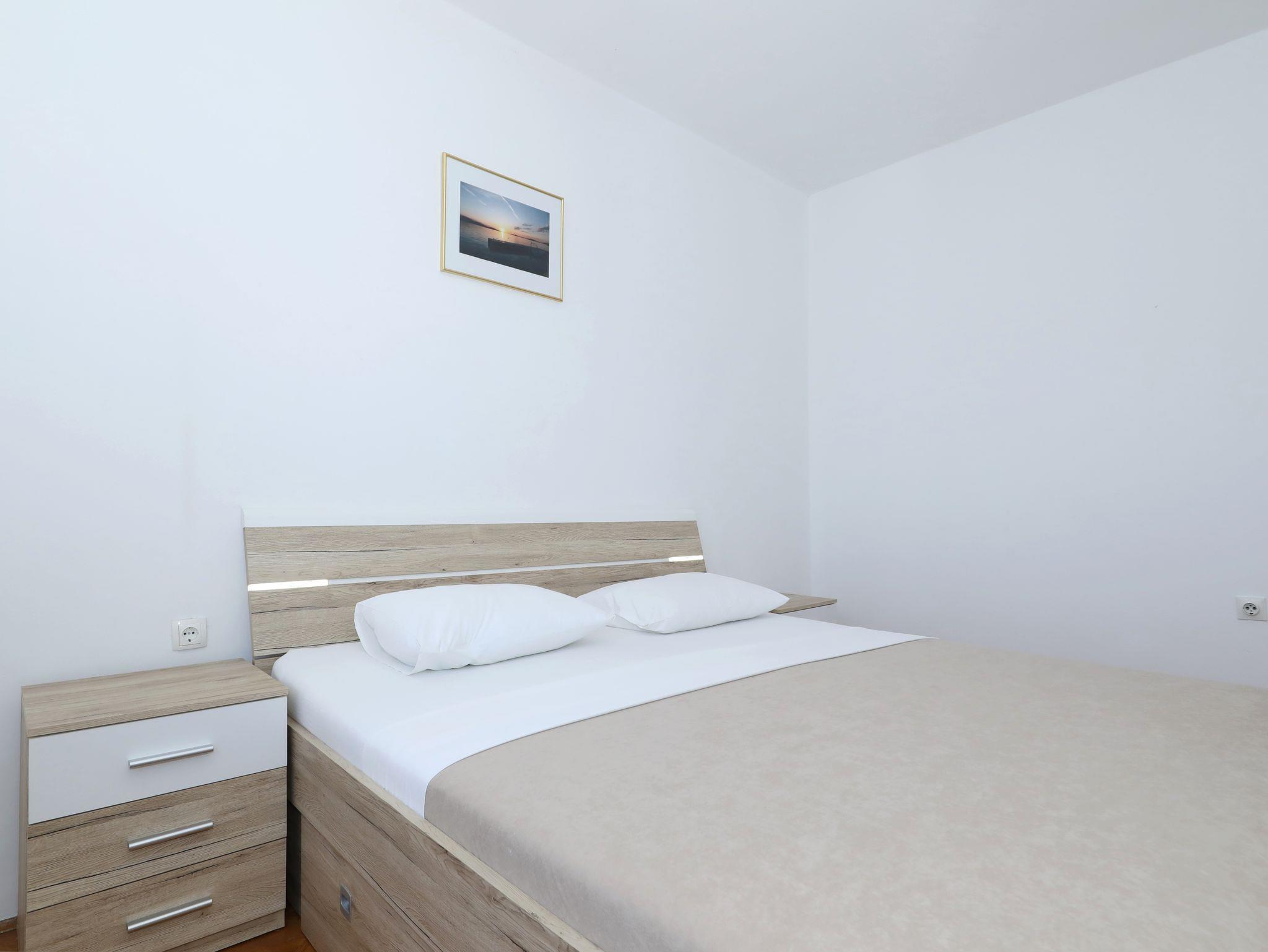 Ferienwohnung bietet Platz für 5 Gäste. Die Betten sind in Schlafzimmern, die es 2 gibt, und in Wohnzimmer, innerhalb einer Gesamtfläche von 48m2, angeordnet. Die Gäste haben eine eigene Terrasse zur Verfügung, auf der sie in warmen Sommernächten genießen können. Es ist erlaubt, Speisen auf dem Gemeinschafts-Grill vorzubereiten. In der Unterkunftseinheit besteht die Möglichkeit des Mitbringens von Haustieren gegen Aufpreis. Unterkunftseinheit hat Räume, die von dem Rest der Einheit abgetrennt werden. IM PREIS INBEGRIFFEN: Kurtaxe, Endreinigung, Klimatisierung, Parkplatz, Internet, Bügeleisen, Bügelbrett, tragbarer Grill. VERBINDLICHE ZUSÄTZLICHE KOSTEN: Aufzahlung für Kurzaufenthalte (prozentualer Zuschlag pro Nächtigungsanzahl: 30% - 1, 20% - 2, 10% - 3). UNVERBINDLICHE ZUSÄTZLICHE KOSTEN: Wäschewaschen (10,00 € Waschen), Bootsanlegeplatz (5,00 € pro Nacht), Haustiere (10,00 € pro Nacht), Zusatzbett (5,00 € pro Nacht). Die Verfügbarkeit zusätzlicher Dienstleistungen in Ihrem reservierten Termin und die Preise derselben (falls nicht aufgeführt) müssen im Voraus überprüft werden. Zusätzliche Dienstleistungen die in der Zahlungsaufforderung nicht aufgeführt sind werden direkt beim Vermieter bezahlt, angenommen der Gast nutzt auch diese.