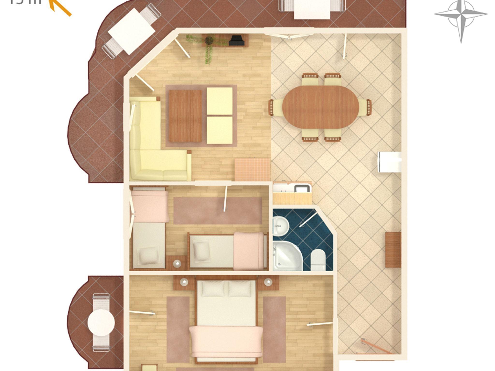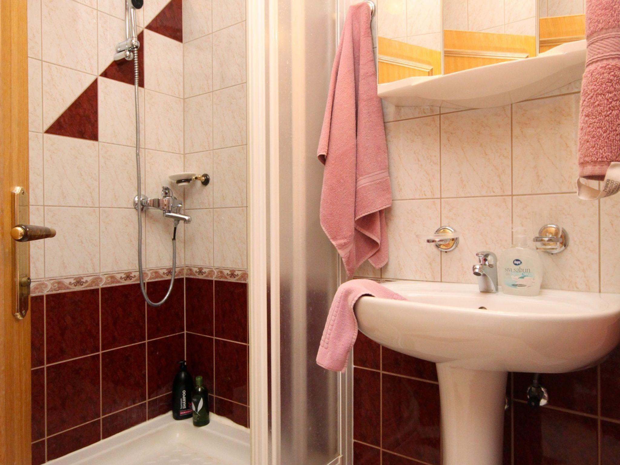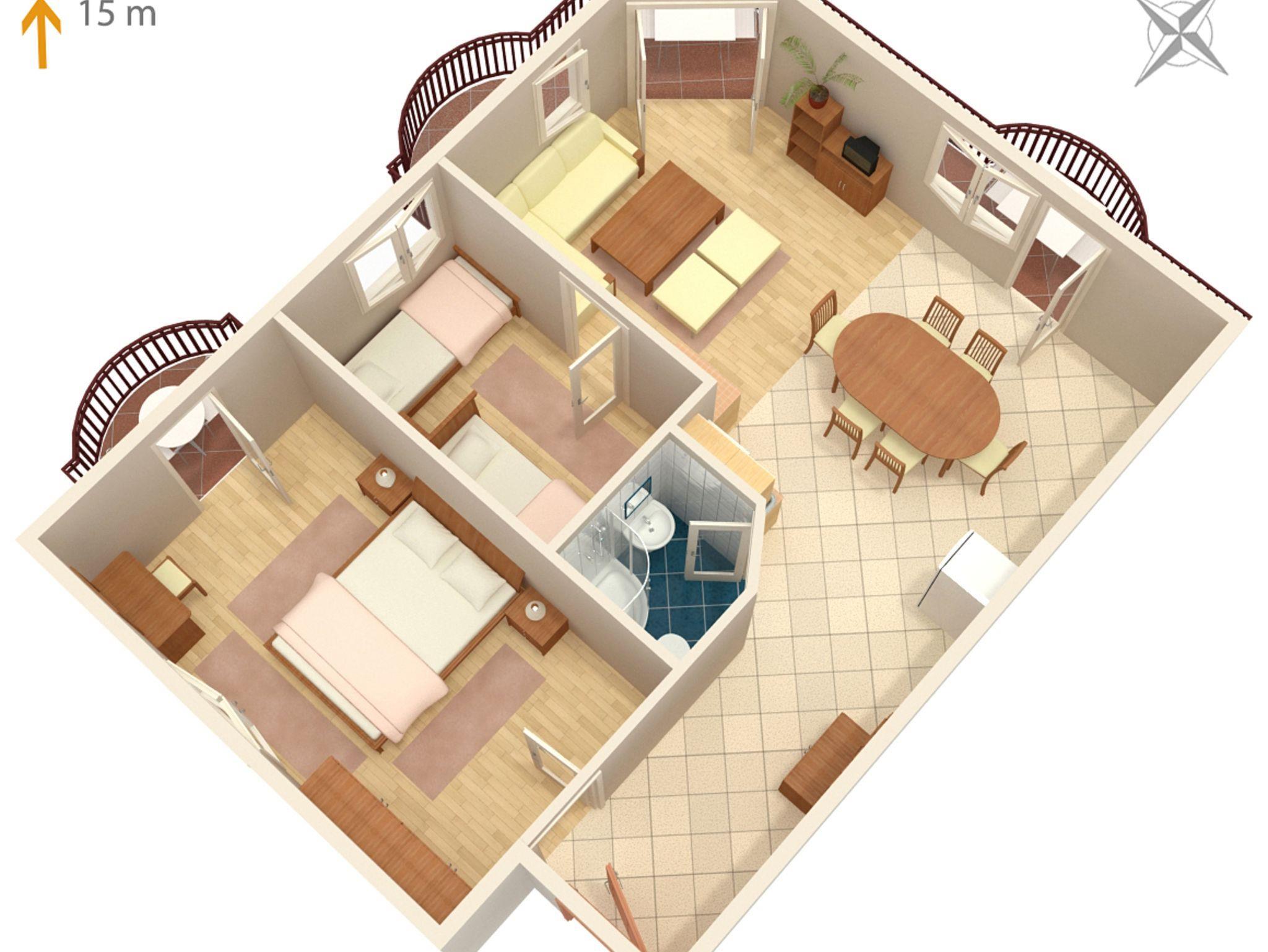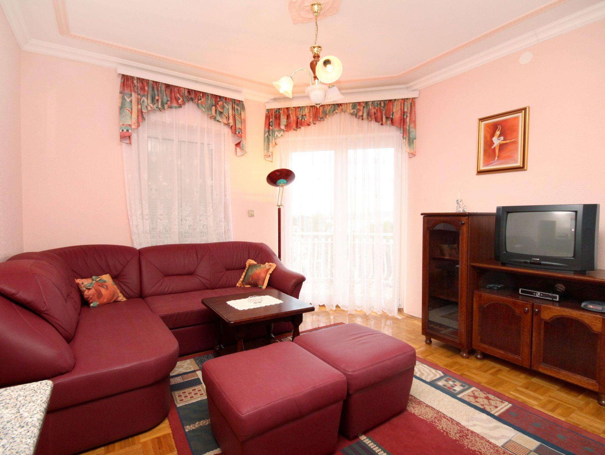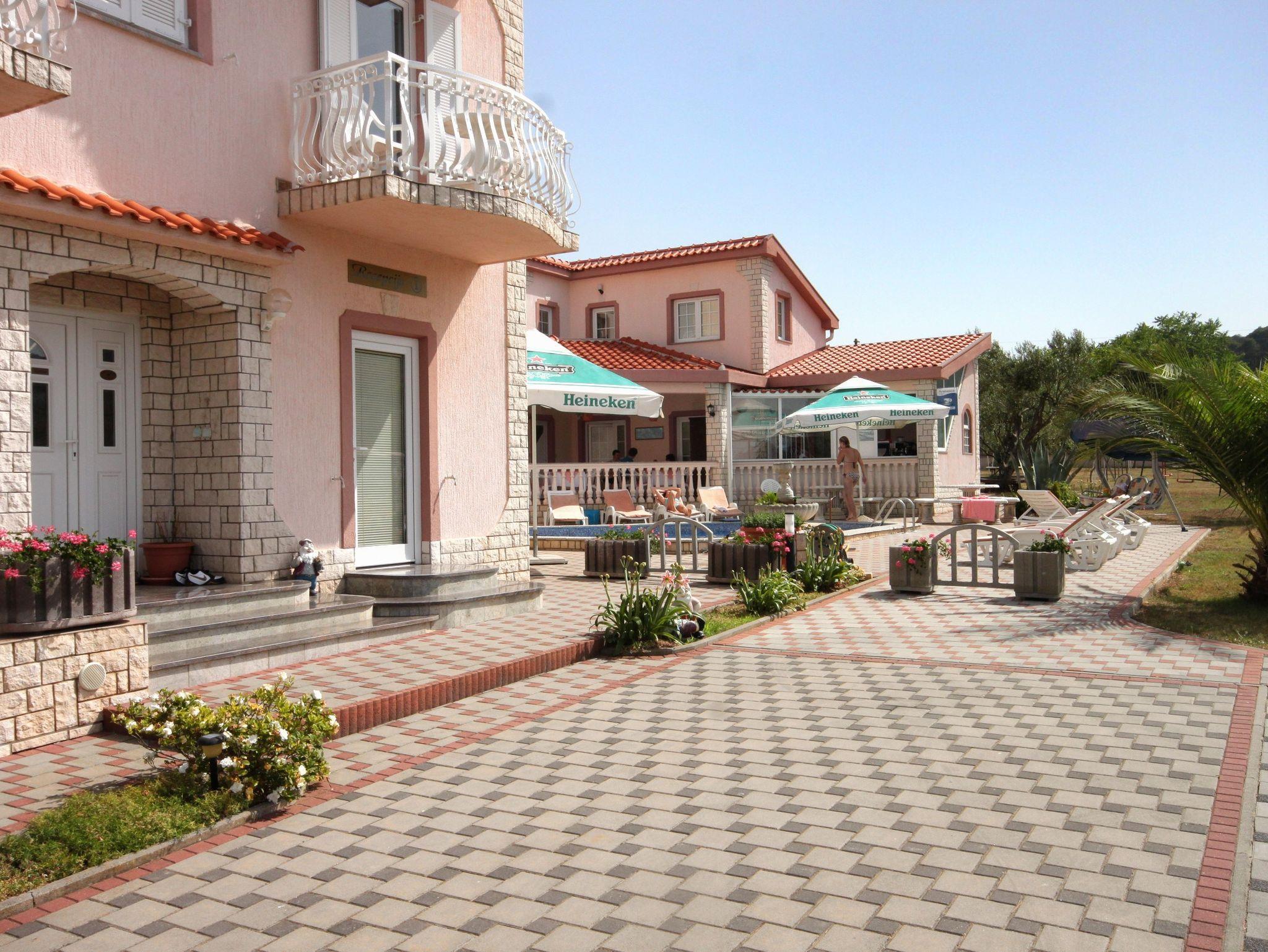 Ferienwohnung bietet Platz für 5 Gäste. Die Betten sind in Schlafzimmern, die es 2 gibt, und in Wohnzimmer, innerhalb einer Gesamtfläche von 56m2, angeordnet. Die Gäste haben einen eigenen Balkon zur Verfügung, auf der sie in warmen Sommernächten genießen können. Das Apartment bietet Meerblick. Es ist erlaubt, Speisen auf dem Gemeinschafts-Grill vorzubereiten. Während ihres Aufenthalts können Gäste das gemeinsam zur Nutzung stehende Schwimmbad benutzen. IM PREIS INBEGRIFFEN: Kurtaxe, Endreinigung, Klimatisierung, Zentralheizung, Pool, Parkplatz, Internet, Kinderbett, Zusatzbett, Bügeleisen, Bügelbrett, Föhn, Sonnenschirm, Liegestühle. VERBINDLICHE ZUSÄTZLICHE KOSTEN: Aufzahlung für Kurzaufenthalte (prozentualer Zuschlag pro Nächtigungsanzahl: 30% - 1, 20% - 2, 10% - 3). UNVERBINDLICHE ZUSÄTZLICHE KOSTEN: Frühstück (10,00 €, 50% Nachlass für Kinder zwischen 4 und 12 Jahren, Kinder bis 4 Jahre sind frei.), Halbpension (25,00 €, 50% Nachlass für Kinder zwischen 4 und 12 Jahren, Kinder bis 4 Jahre sind frei.), Vollpension (40,00 €, 50% Nachlass für Kinder zwischen 4 und 12 Jahren, Kinder bis 4 Jahre sind frei.). Die Verfügbarkeit zusätzlicher Dienstleistungen in Ihrem reservierten Termin und die Preise derselben (falls nicht aufgeführt) müssen im Voraus überprüft werden. Zusätzliche Dienstleistungen die in der Zahlungsaufforderung nicht aufgeführt sind werden direkt beim Vermieter bezahlt, angenommen der Gast nutzt auch diese.