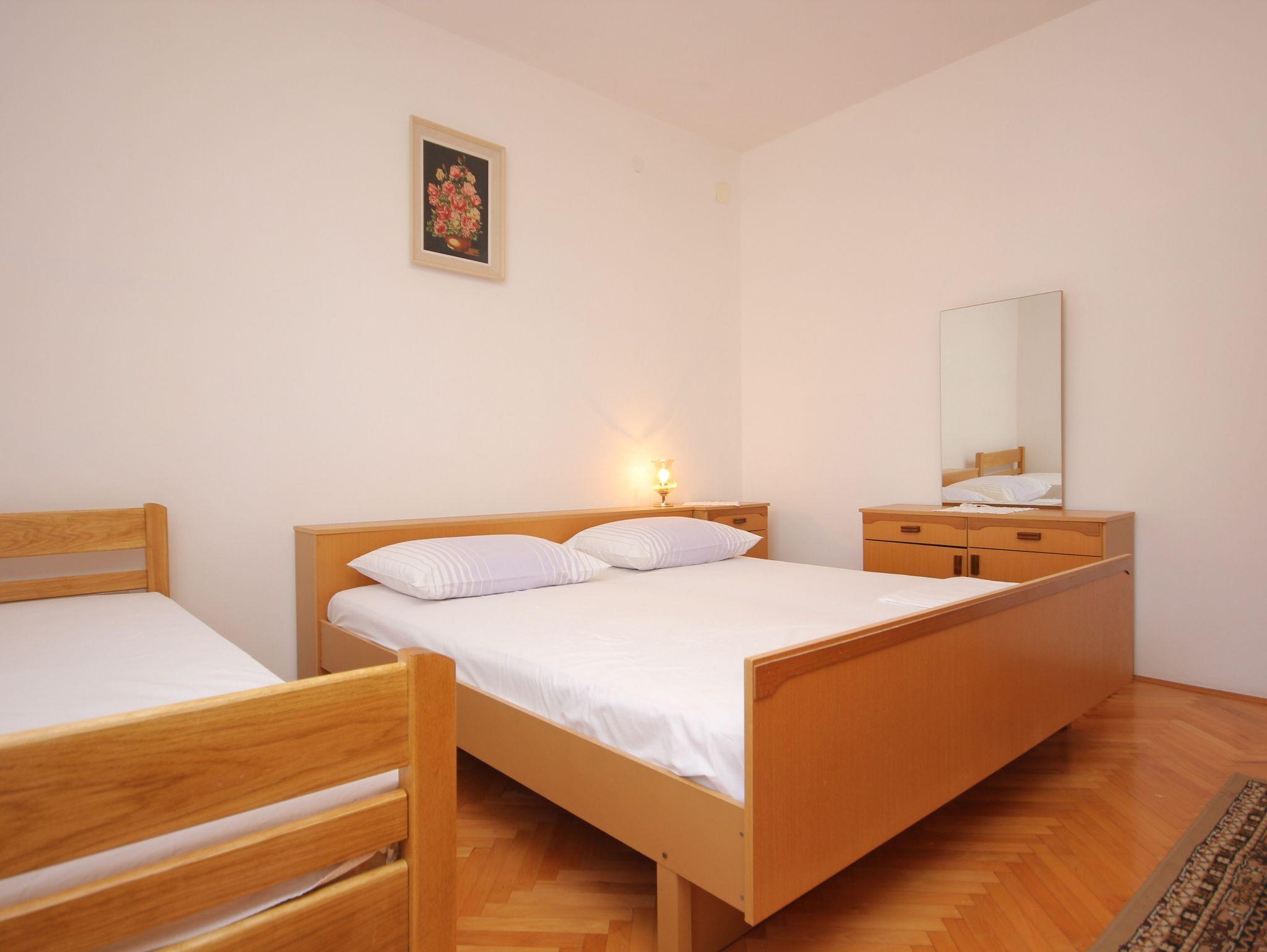 Ferienwohnung bietet Platz für 5 Gäste. Die Betten sind in Schlafzimmern, die es 2 gibt, innerhalb einer Gesamtfläche von 56m2, angeordnet. Die Gäste haben eine eigene Terrasse zur Verfügung, auf der sie in warmen Sommernächten genießen können. Das Apartment bietet Meerblick. Es ist erlaubt, Speisen auf dem Gemeinschafts-Grill vorzubereiten. IM PREIS INBEGRIFFEN: Kurtaxe, Endreinigung, Klimatisierung, Zentralheizung, Parkplatz, Internet, Wäschewaschen, Bootsanlegeplatz. VERBINDLICHE ZUSÄTZLICHE KOSTEN: Aufzahlung für Kurzaufenthalte (prozentualer Zuschlag pro Nächtigungsanzahl: 30% - 1, 20% - 2, 10% - 3). UNVERBINDLICHE ZUSÄTZLICHE KOSTEN: Boot (50,00 € pro Nacht). Die Verfügbarkeit zusätzlicher Dienstleistungen in Ihrem reservierten Termin und die Preise derselben (falls nicht aufgeführt) müssen im Voraus überprüft werden. Zusätzliche Dienstleistungen die in der Zahlungsaufforderung nicht aufgeführt sind werden direkt beim Vermieter bezahlt, angenommen der Gast nutzt auch diese.