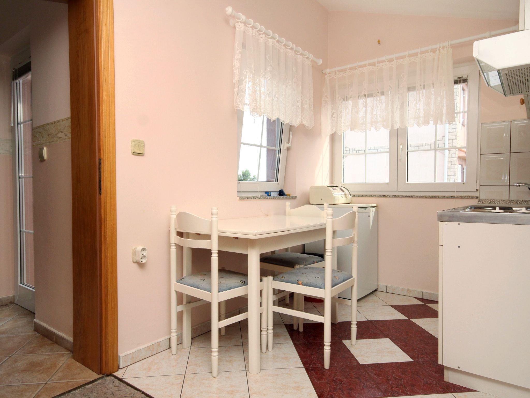 Ferienwohnung bietet Platz für 3 Gäste. Die Betten sind in Schlafzimmern, die es 1 gibt, und in Wohnzimmer, innerhalb einer Gesamtfläche von 34m2, angeordnet. Die Gäste haben eine eigene Terrasse zur Verfügung, auf der sie in warmen Sommernächten genießen können. Das Apartment bietet Meerblick. Es ist erlaubt, Speisen auf dem Gemeinschafts-Grill vorzubereiten. Während ihres Aufenthalts können Gäste das gemeinsam zur Nutzung stehende Schwimmbad benutzen. IM PREIS INBEGRIFFEN: Kurtaxe, Endreinigung, Klimatisierung, Pool, Parkplatz, Internet, Kinderbett, Zusatzbett, Bügeleisen, Bügelbrett, Föhn, Sonnenschirm, Liegestühle. VERBINDLICHE ZUSÄTZLICHE KOSTEN: Aufzahlung für Kurzaufenthalte (prozentualer Zuschlag pro Nächtigungsanzahl: 30% - 1, 20% - 2, 10% - 3). UNVERBINDLICHE ZUSÄTZLICHE KOSTEN: Frühstück (10,00 €, 50% Nachlass für Kinder zwischen 4 und 12 Jahren, Kinder bis 4 Jahre sind frei.), Halbpension (25,00 €, 50% Nachlass für Kinder zwischen 4 und 12 Jahren, Kinder bis 4 Jahre sind frei.), Vollpension (40,00 €, 50% Nachlass für Kinder zwischen 4 und 12 Jahren, Kinder bis 4 Jahre sind frei.). Die Verfügbarkeit zusätzlicher Dienstleistungen in Ihrem reservierten Termin und die Preise derselben (falls nicht aufgeführt) müssen im Voraus überprüft werden. Zusätzliche Dienstleistungen die in der Zahlungsaufforderung nicht aufgeführt sind werden direkt beim Vermieter bezahlt, angenommen der Gast nutzt auch diese.