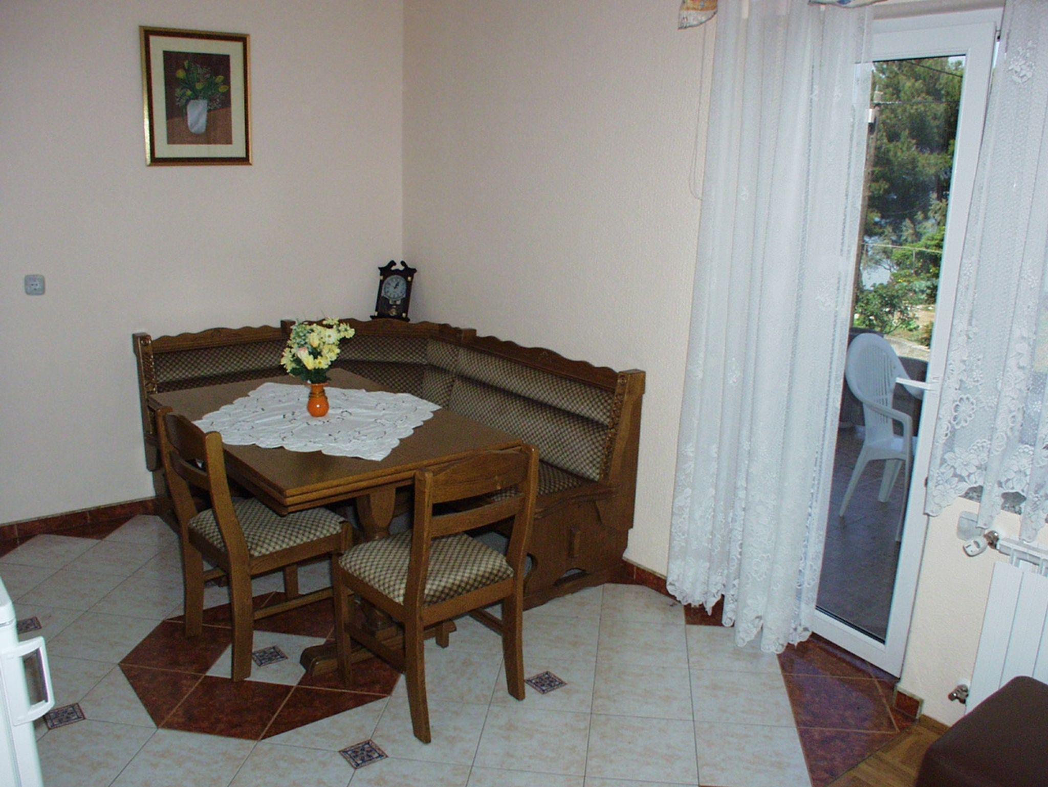 Ferienwohnung bietet Platz für 5 Gäste. Die Betten sind in Schlafzimmern, die es 2 gibt, und in Wohnzimmer, innerhalb einer Gesamtfläche von 42m2, angeordnet. Die Gäste haben eine eigene Terrasse zur Verfügung, auf der sie in warmen Sommernächten genießen können. Das Apartment bietet Meerblick. Es ist erlaubt, Speisen auf dem Gemeinschafts-Grill vorzubereiten. Während ihres Aufenthalts können Gäste das gemeinsam zur Nutzung stehende Schwimmbad benutzen. IM PREIS INBEGRIFFEN: Kurtaxe, Endreinigung, Klimatisierung, Zentralheizung, Pool, Parkplatz, Internet, Kinderbett, Zusatzbett, Bügeleisen, Bügelbrett, Föhn, Sonnenschirm, Liegestühle. VERBINDLICHE ZUSÄTZLICHE KOSTEN: Aufzahlung für Kurzaufenthalte (prozentualer Zuschlag pro Nächtigungsanzahl: 30% - 1, 20% - 2, 10% - 3). UNVERBINDLICHE ZUSÄTZLICHE KOSTEN: Frühstück (10,00 €, 50% Nachlass für Kinder zwischen 4 und 12 Jahren, Kinder bis 4 Jahre sind frei.), Halbpension (25,00 €, 50% Nachlass für Kinder zwischen 4 und 12 Jahren, Kinder bis 4 Jahre sind frei.), Vollpension (40,00 €, 50% Nachlass für Kinder zwischen 4 und 12 Jahren, Kinder bis 4 Jahre sind frei.). Die Verfügbarkeit zusätzlicher Dienstleistungen in Ihrem reservierten Termin und die Preise derselben (falls nicht aufgeführt) müssen im Voraus überprüft werden. Zusätzliche Dienstleistungen die in der Zahlungsaufforderung nicht aufgeführt sind werden direkt beim Vermieter bezahlt, angenommen der Gast nutzt auch diese.