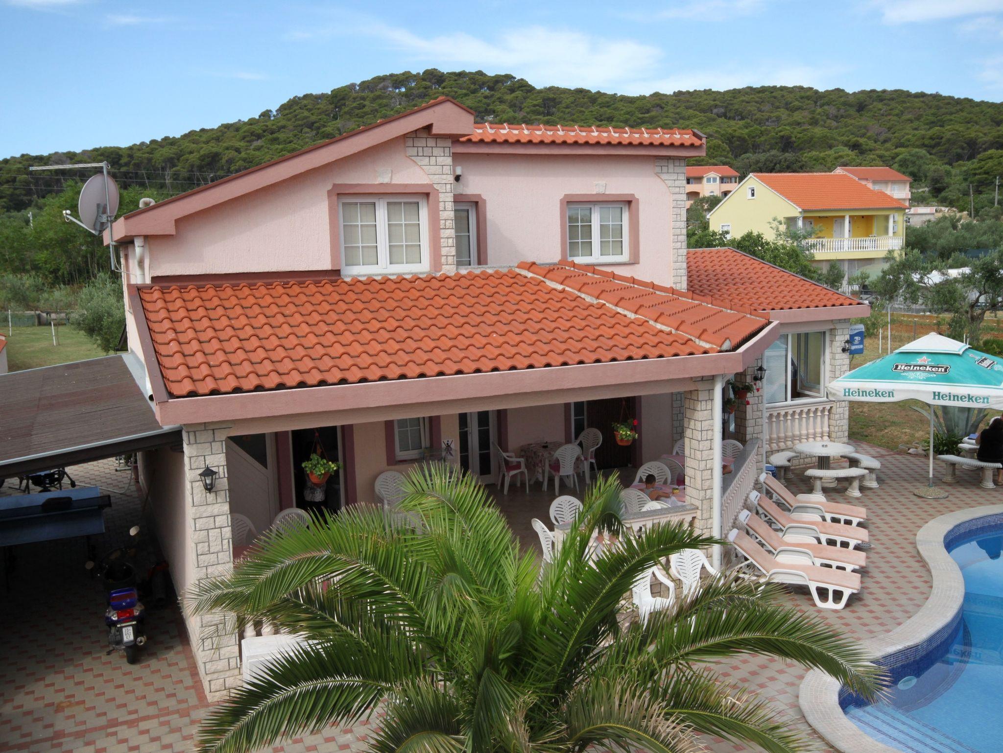 Umgebung des Objekts (Ordentlich), Hof (100m2, Kinderbereich, Sitzbereich), Parkplatz (Anzahl der Parkplätze: 5, Entfernung vom Objekt: im Hof), Parkplatz (Anzahl der Parkplätze: 4, Entfernung vom Objekt: 10 m), Pool: gemeinsam, Dimensionen: 8m x 3.5m x 2m, Wassertyp: Süßwasser, Grill: gemeinsam, Frühstück, Halbpension, Vollpension, WiFi Internet, Föhn, Bügeleisen, Bügelbrett, Sonnenschirm, Liegestühle, Kinderbett