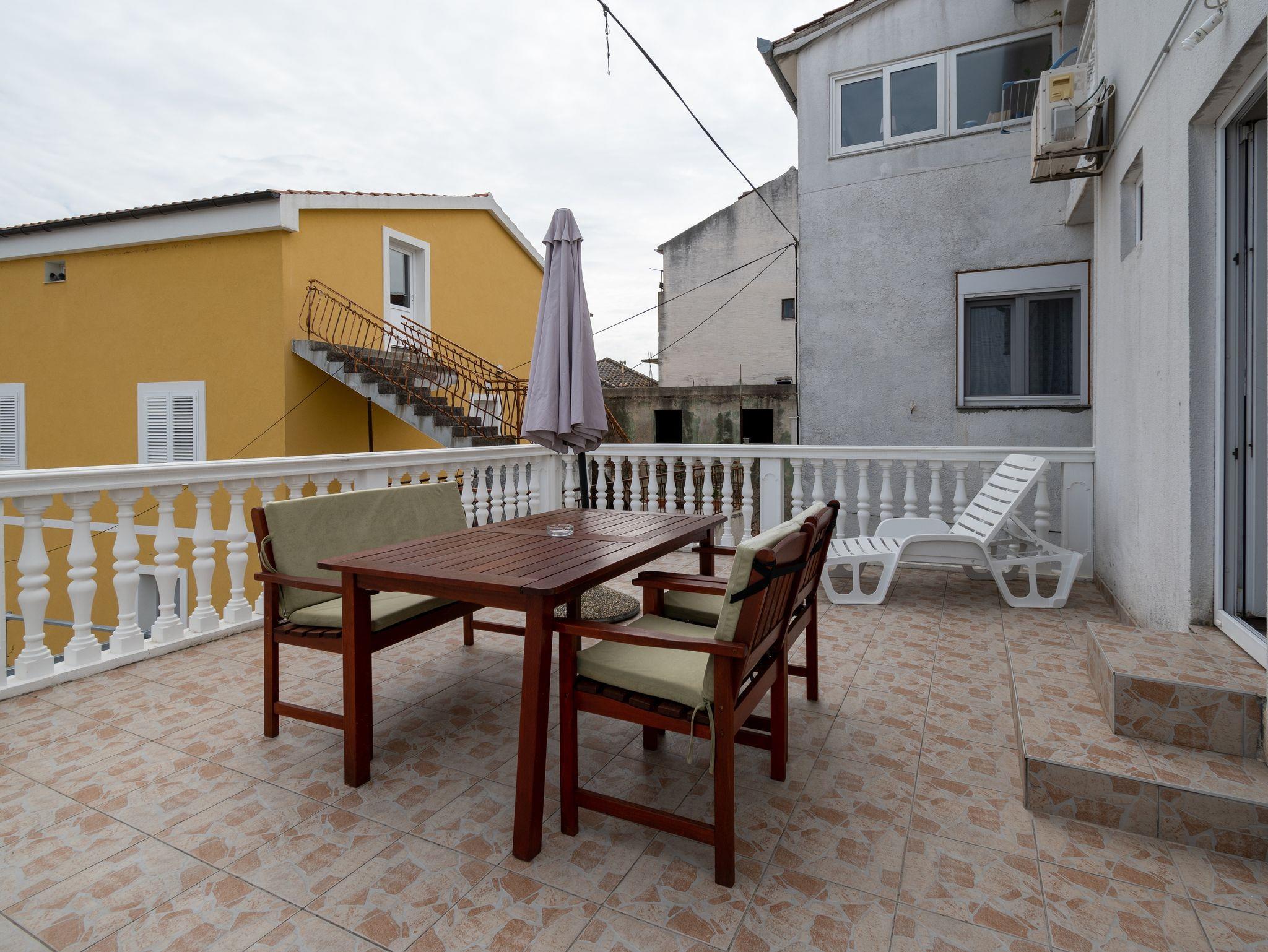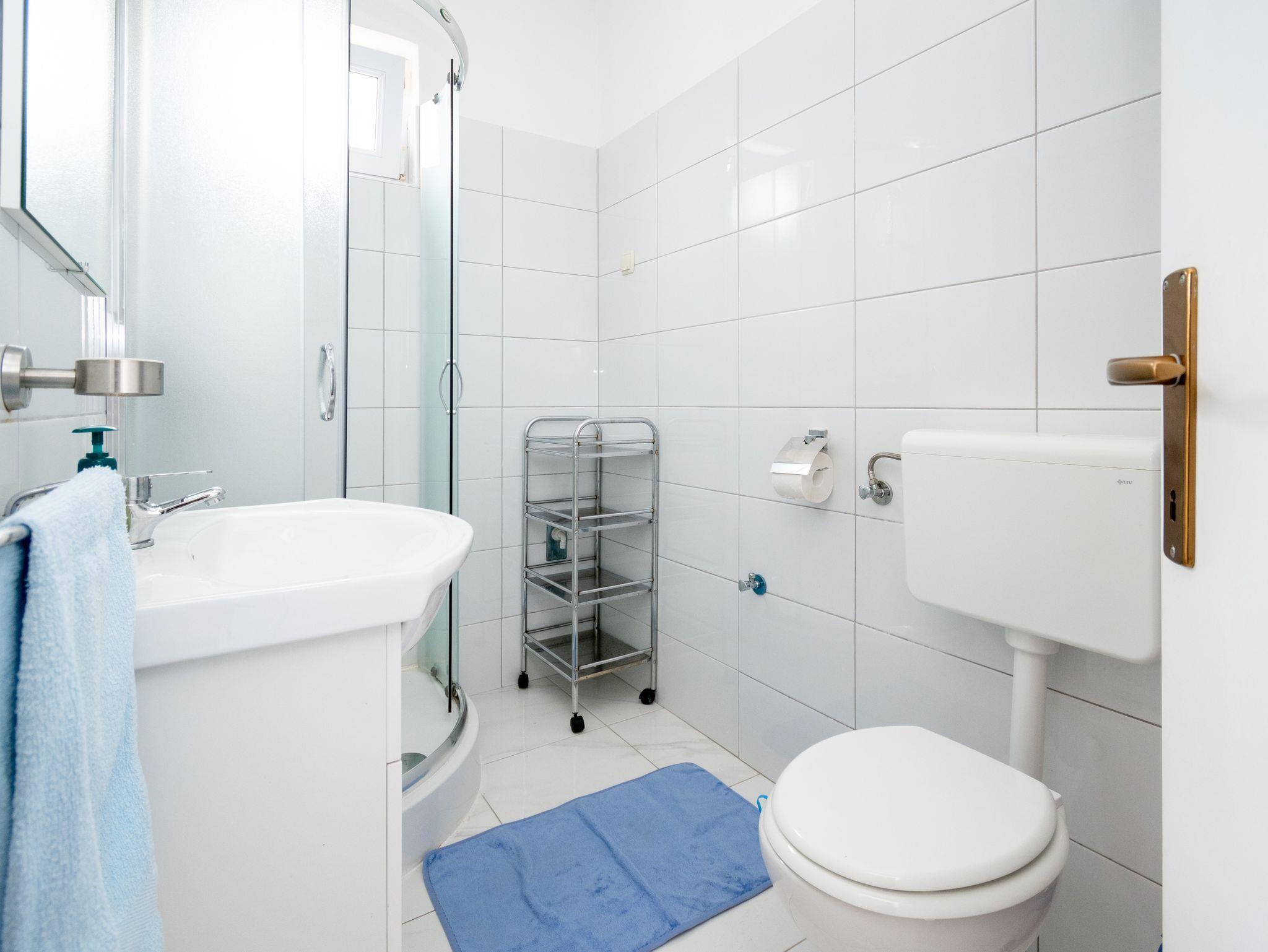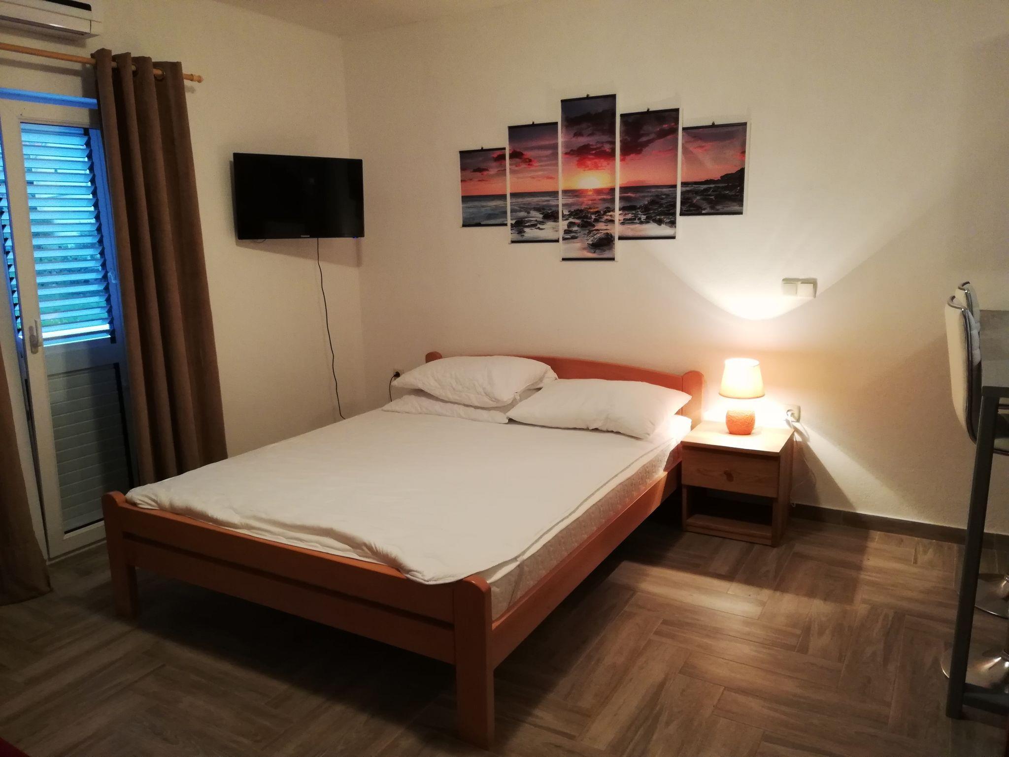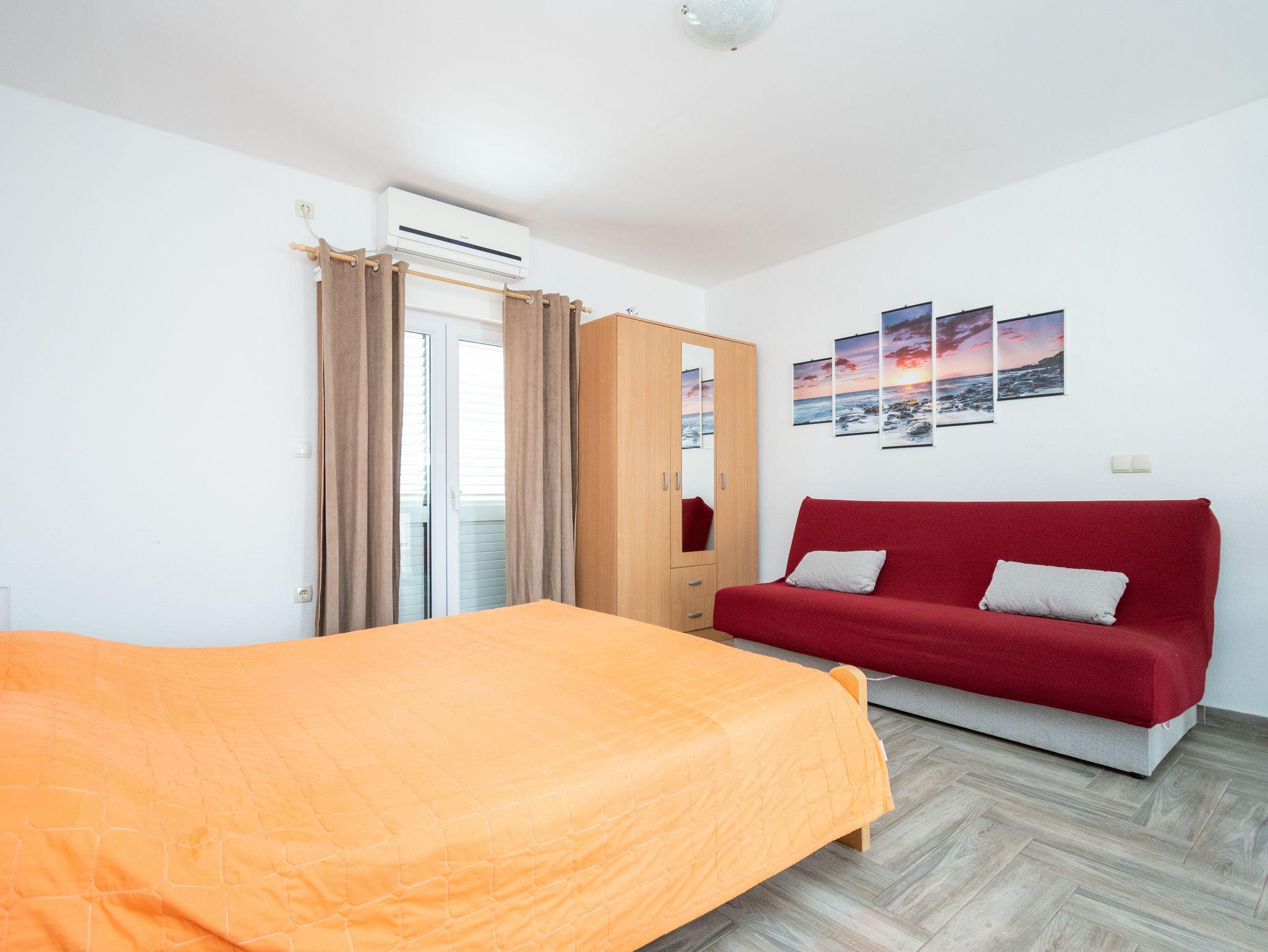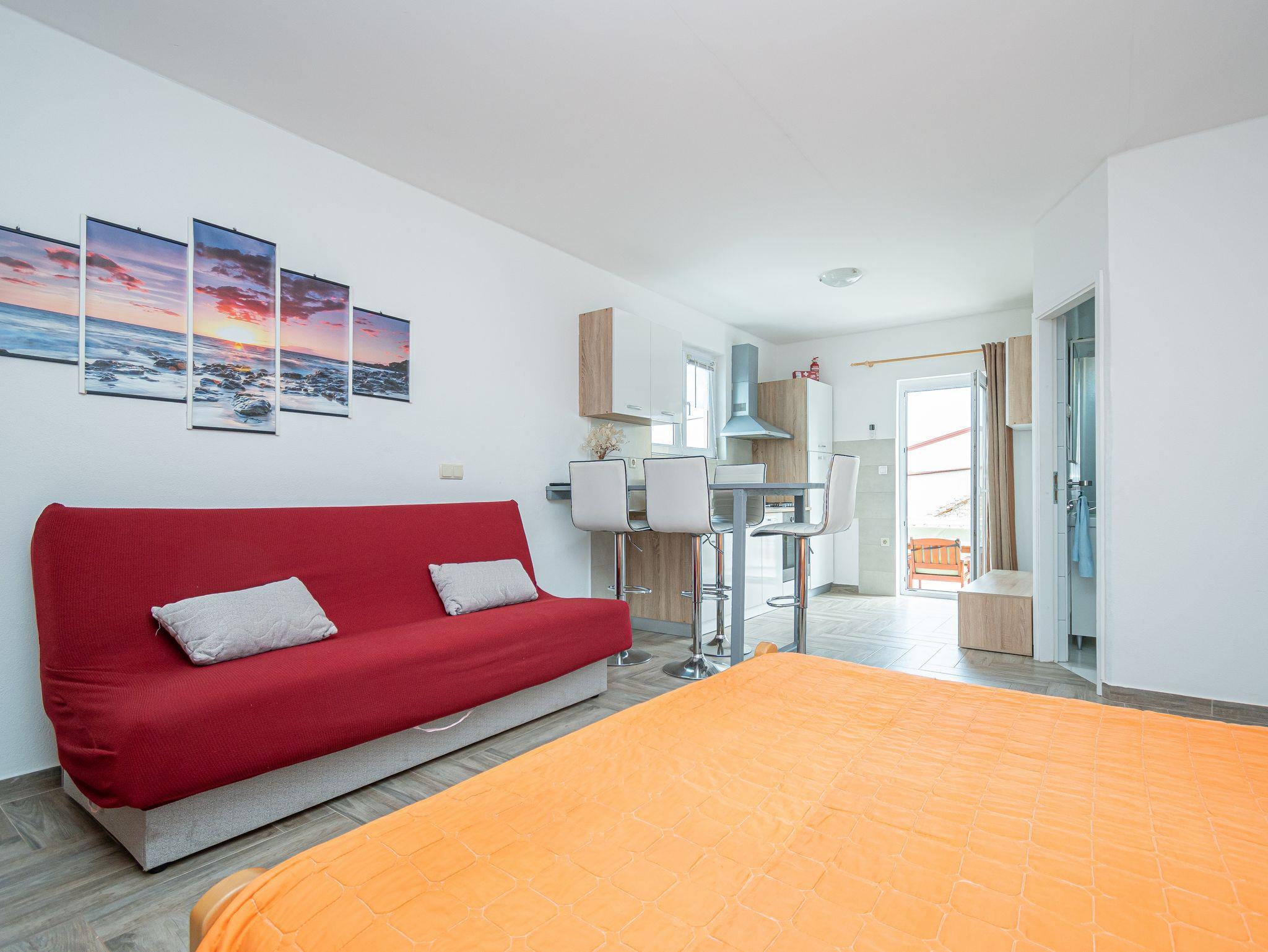 Studio bietet Platz für 3 Gäste. Die Betten sind in Schlafzimmern, die es 1 gibt, innerhalb einer Gesamtfläche von 26m2, angeordnet. Die Gäste haben eine eigene Terrasse zur Verfügung, auf der sie in warmen Sommernächten genießen können. Das Studio-Apartment bietet Meerblick. Es ist erlaubt, Speisen auf dem Gemeinschafts-Grill vorzubereiten. IM PREIS INBEGRIFFEN: Kurtaxe, Endreinigung, Klimatisierung, Parkplatz, Internet, tragbarer Grill. VERBINDLICHE ZUSÄTZLICHE KOSTEN: Aufzahlung für Kurzaufenthalte (prozentualer Zuschlag pro Nächtigungsanzahl: 30% - 1, 20% - 2, 10% - 3). Die Verfügbarkeit zusätzlicher Dienstleistungen in Ihrem reservierten Termin und die Preise derselben (falls nicht aufgeführt) müssen im Voraus überprüft werden. Zusätzliche Dienstleistungen die in der Zahlungsaufforderung nicht aufgeführt sind werden direkt beim Vermieter bezahlt, angenommen der Gast nutzt auch diese. Ermäßigung auf den Grundpreis: Gratistag 14=13 (bei einem Aufenthalt von 14 Tagen oder mehr erhalten Sie einen Gratistag für den Aufenthalt bis 31.12.26).