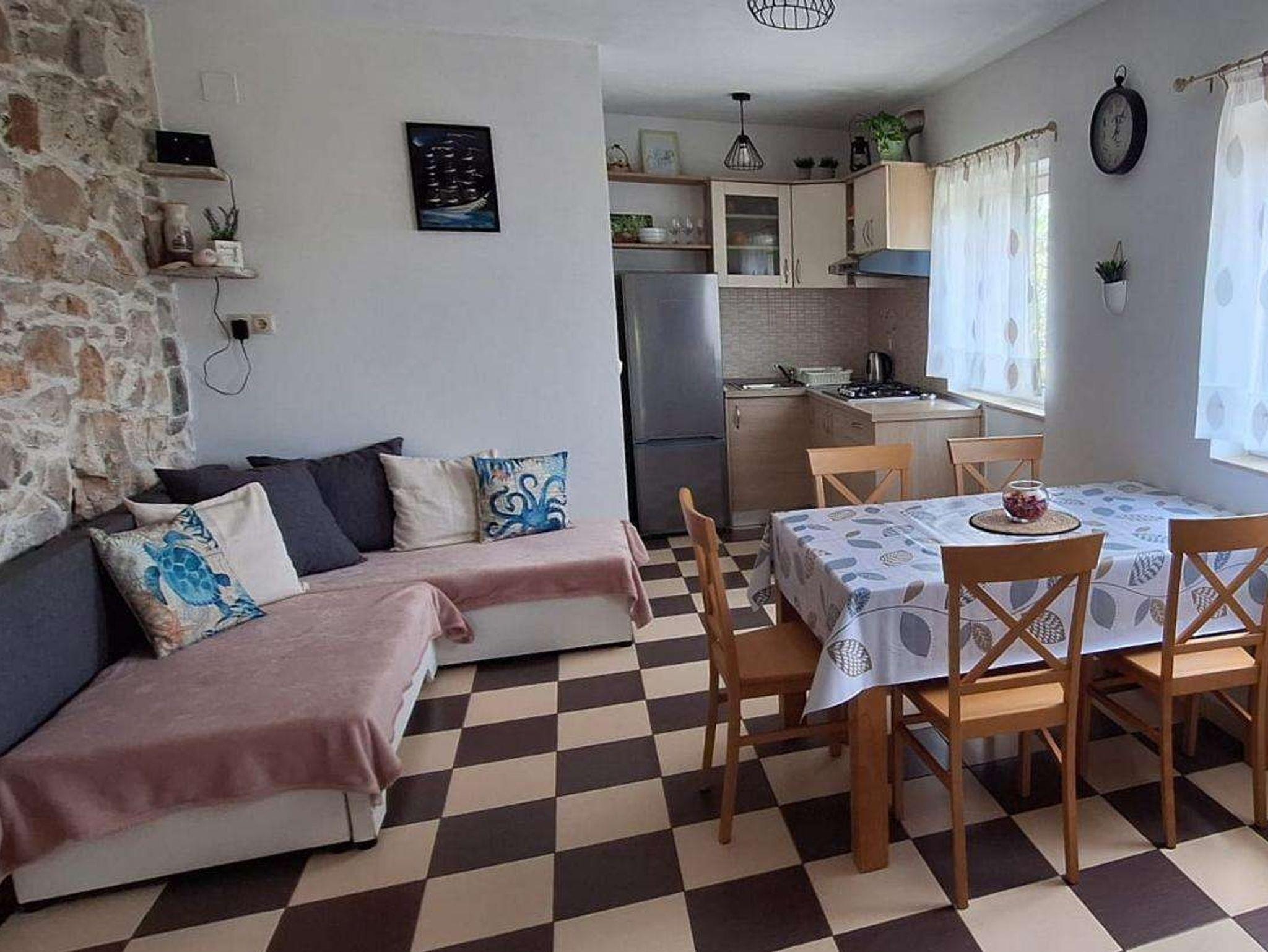 Haus bietet Platz für 5 Gäste. Die Betten sind in Schlafzimmern, die es 2 gibt, innerhalb einer Gesamtfläche von 45m2, angeordnet. Die Gäste haben eine eigene Terrasse zur Verfügung, auf der sie in warmen Sommernächten genießen können. Das Haus bietet Meerblick. Für vollen Genuss und Entspannung gibt es einen privaten Grill für Gäste dieser Unterkunft. In der Unterkunftseinheit besteht die Möglichkeit des Mitbringens von Haustieren gegen Aufpreis. IM PREIS INBEGRIFFEN: Kurtaxe, Endreinigung, Klimatisierung, Parkplatz, Internet, Bootsanlegeplatz, Föhn, Sonnenschirm, Liegestühle. UNVERBINDLICHE ZUSÄTZLICHE KOSTEN: Haustiere (10,00 € pro Nacht). Die Verfügbarkeit zusätzlicher Dienstleistungen in Ihrem reservierten Termin und die Preise derselben (falls nicht aufgeführt) müssen im Voraus überprüft werden. Zusätzliche Dienstleistungen die in der Zahlungsaufforderung nicht aufgeführt sind werden direkt beim Vermieter bezahlt, angenommen der Gast nutzt auch diese.