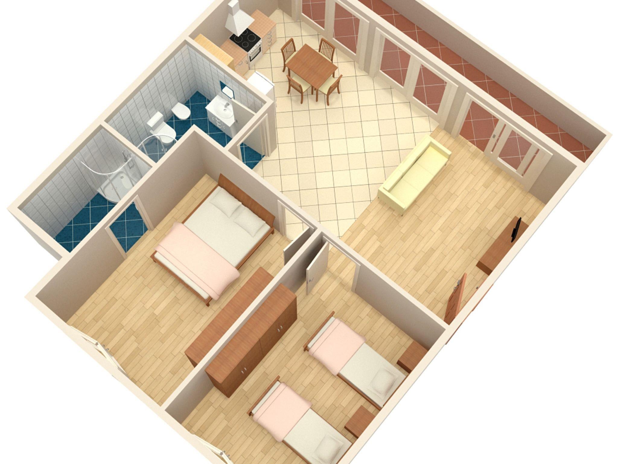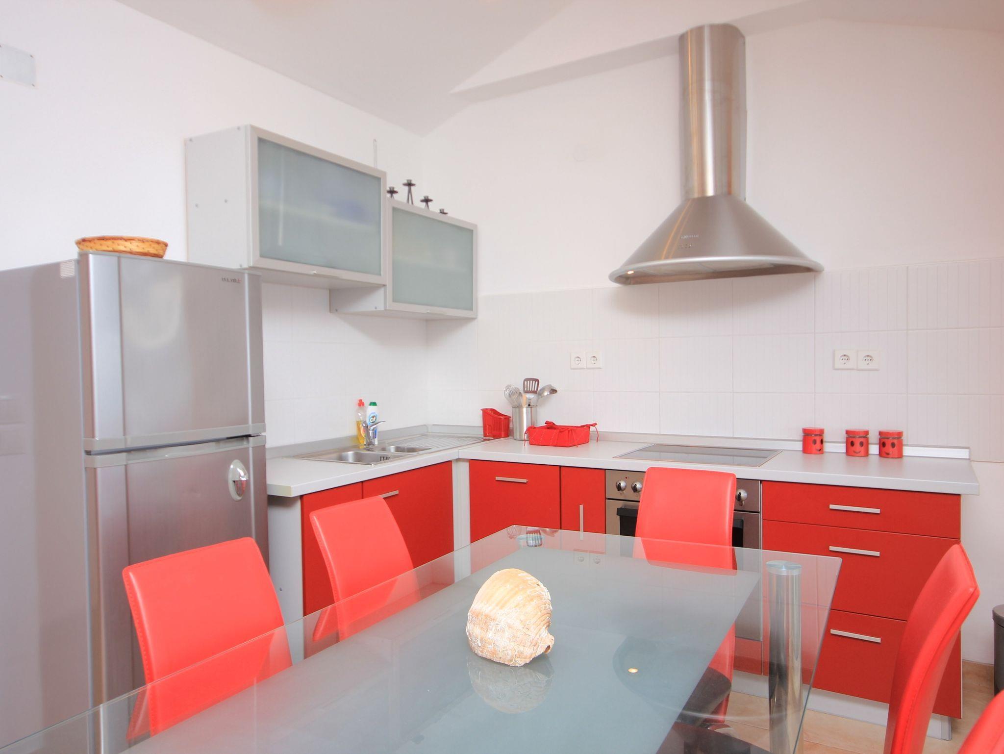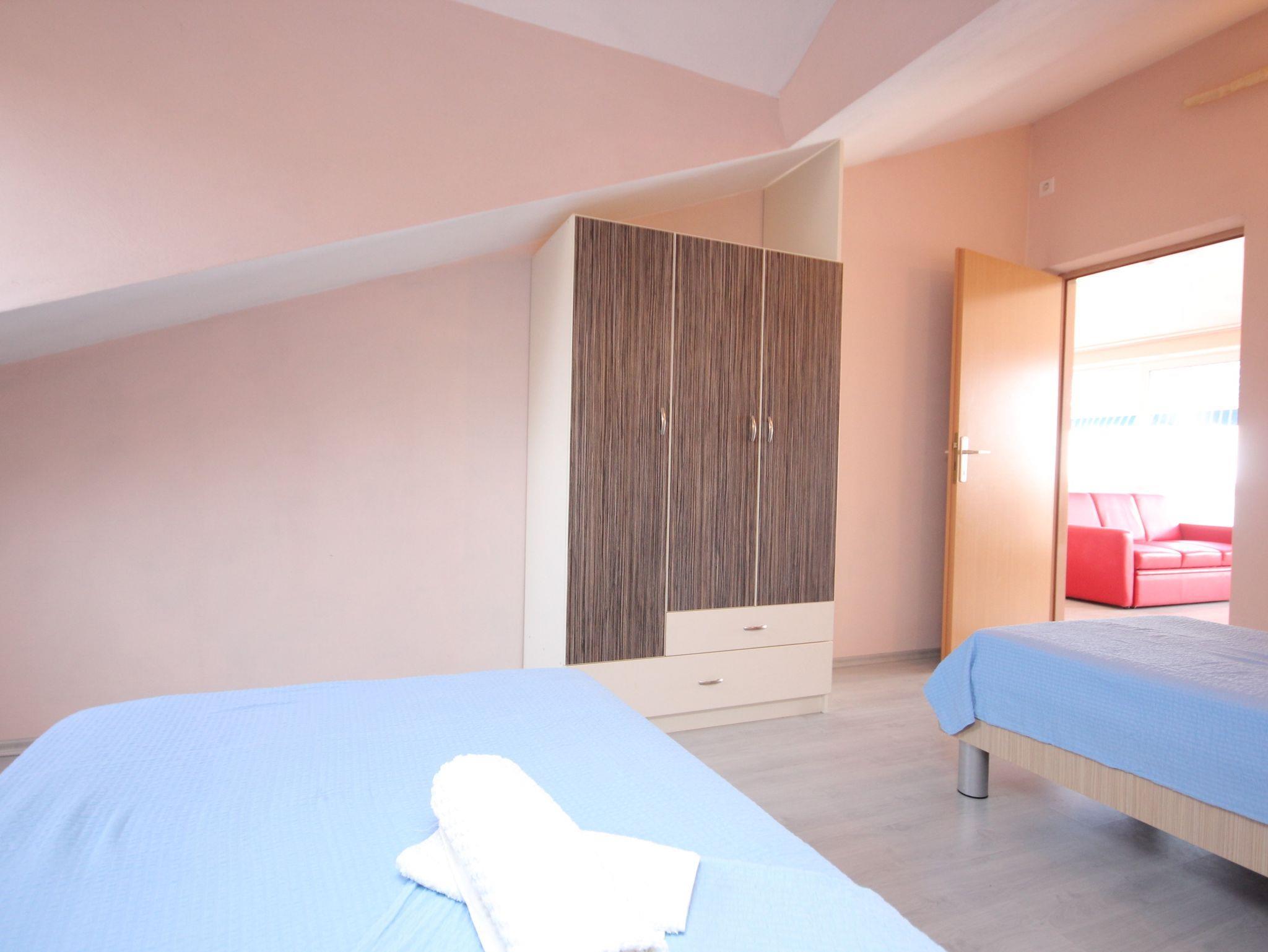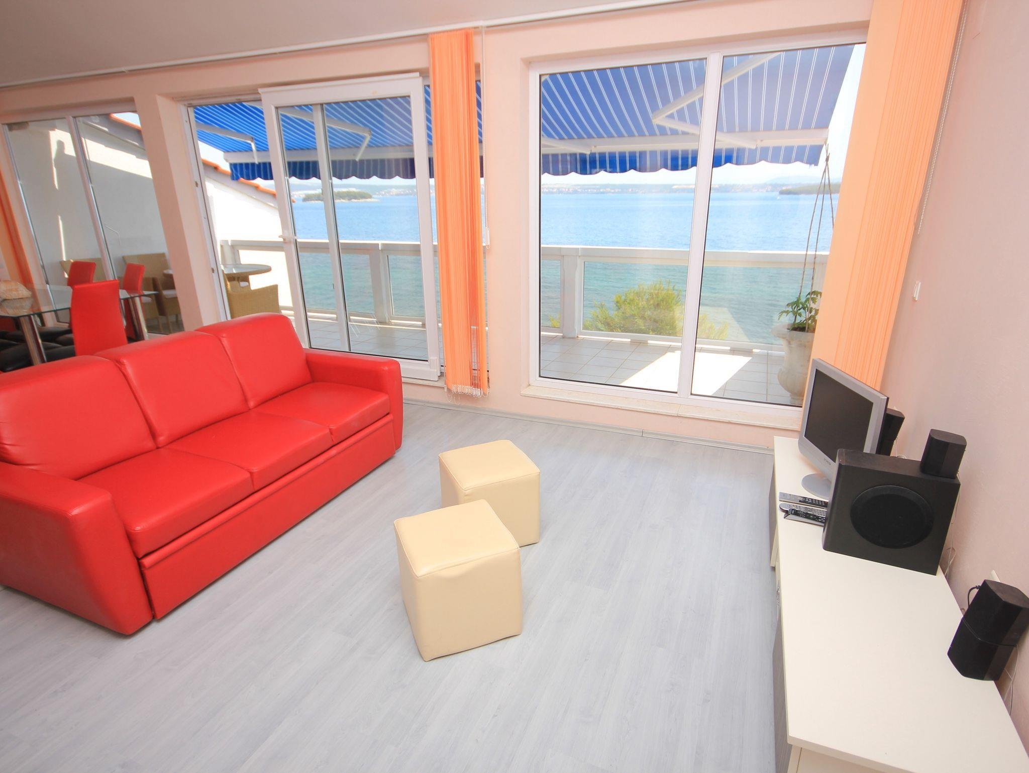 Ferienwohnung bietet Platz für 5 Gäste. Die Betten sind in Schlafzimmern, die es 2 gibt, und in Wohnzimmer, innerhalb einer Gesamtfläche von 64m2, angeordnet. Die Gäste haben eine eigene Terrasse zur Verfügung, auf der sie in warmen Sommernächten genießen können. Das Apartment bietet Meerblick. Es ist erlaubt, Speisen auf dem Gemeinschafts-Grill vorzubereiten. IM PREIS INBEGRIFFEN: Kurtaxe, Endreinigung, Klimatisierung, Parkplatz, Internet, Bootsanlegeplatz, Kinderbett, Bügeleisen, Bügelbrett, Föhn. VERBINDLICHE ZUSÄTZLICHE KOSTEN: Aufzahlung für Kurzaufenthalte (prozentualer Zuschlag pro Nächtigungsanzahl: 30% - 1, 20% - 2, 10% - 3). UNVERBINDLICHE ZUSÄTZLICHE KOSTEN: Wäschewaschen (5,00 € Waschen). Die Verfügbarkeit zusätzlicher Dienstleistungen in Ihrem reservierten Termin und die Preise derselben (falls nicht aufgeführt) müssen im Voraus überprüft werden. Zusätzliche Dienstleistungen die in der Zahlungsaufforderung nicht aufgeführt sind werden direkt beim Vermieter bezahlt, angenommen der Gast nutzt auch diese.