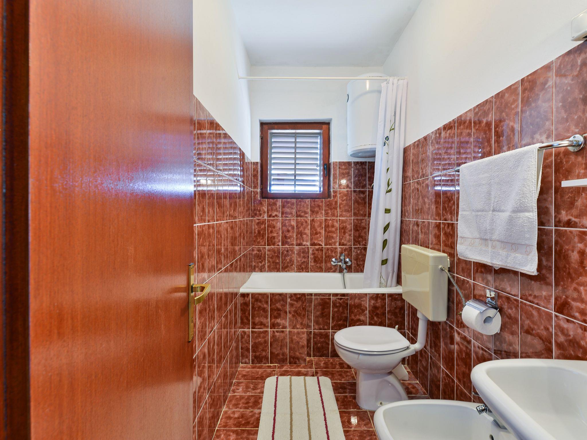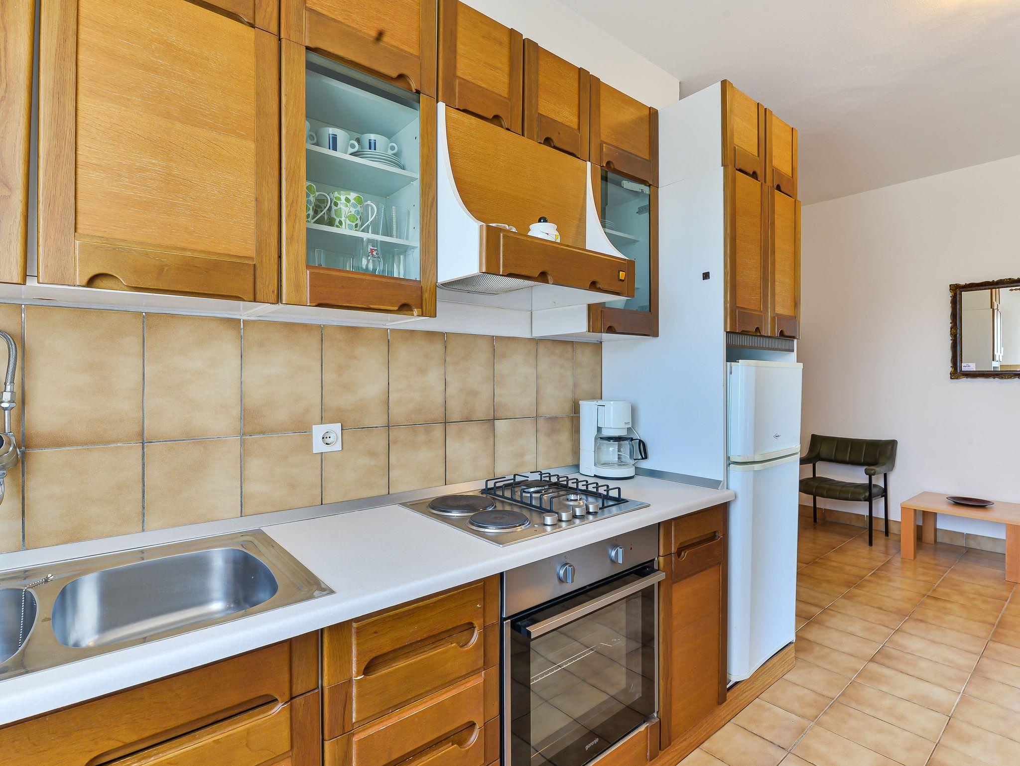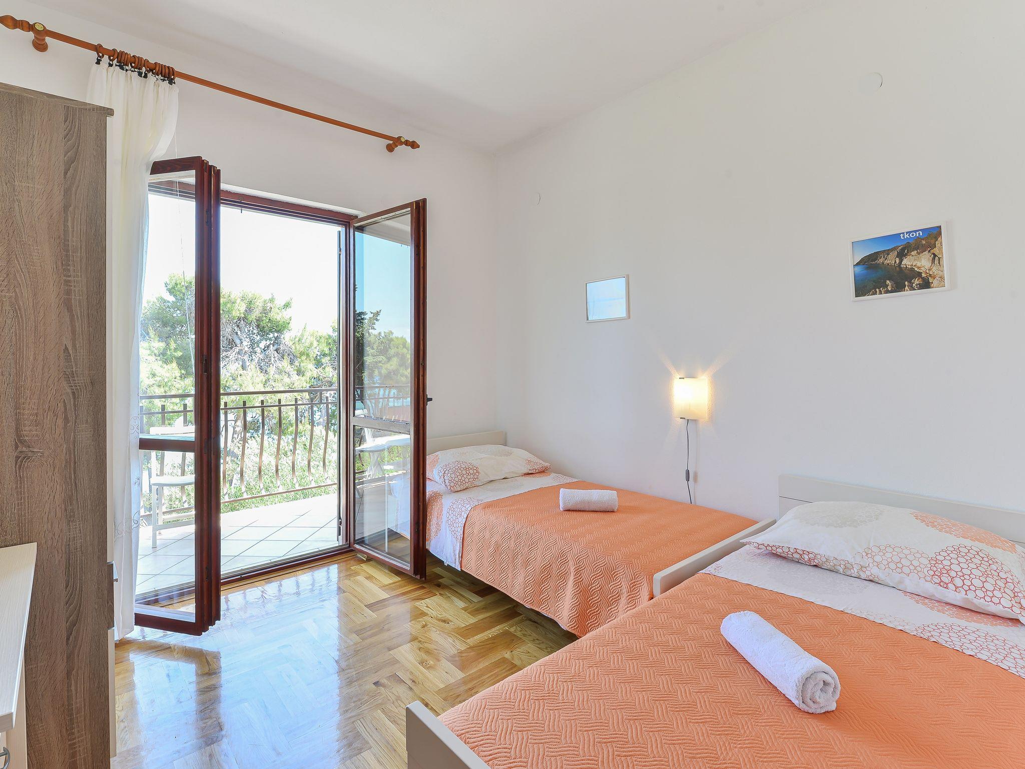 Ferienwohnung bietet Platz für 4 Gäste. Die Betten sind in Schlafzimmern, die es 2 gibt, innerhalb einer Gesamtfläche von 39m2, angeordnet. Die Gäste haben eine eigene Terrasse zur Verfügung, auf der sie in warmen Sommernächten genießen können. Das Apartment bietet Meerblick. Es ist erlaubt, Speisen auf dem Gemeinschafts-Grill vorzubereiten. Unterkunftseinheit hat Räume, die von dem Rest der Einheit abgetrennt werden. IM PREIS INBEGRIFFEN: Kurtaxe, Endreinigung, Klimatisierung, Parkplatz, Internet, Bootsanlegeplatz, Bügeleisen, Bügelbrett, Föhn. Die Verfügbarkeit zusätzlicher Dienstleistungen in Ihrem reservierten Termin und die Preise derselben (falls nicht aufgeführt) müssen im Voraus überprüft werden. Zusätzliche Dienstleistungen die in der Zahlungsaufforderung nicht aufgeführt sind werden direkt beim Vermieter bezahlt, angenommen der Gast nutzt auch diese. Ermäßigung auf den Grundpreis: Gratistag 14=13 (bei einem Aufenthalt von 14 Tagen oder mehr erhalten Sie einen Gratistag für den Aufenthalt bis 31.12.26).