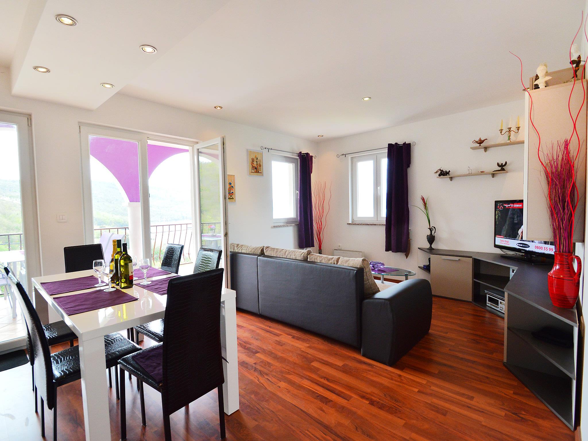 Beautiful 3-family house "Šverko". 10 km from the centre of Labin, in a quiet, sunny position, 200 m from the sea, 200 m from the beach. For shared use: property 700 m2. Table tennis, basketball, badminton, arbour, barbecue. In the house: internet access, table football. Parking. Shop, restaurant 100 m, bus stop 5.3 km, pebble beach, rocky beach 200 m. Please note: private mooring (extra) on request.
